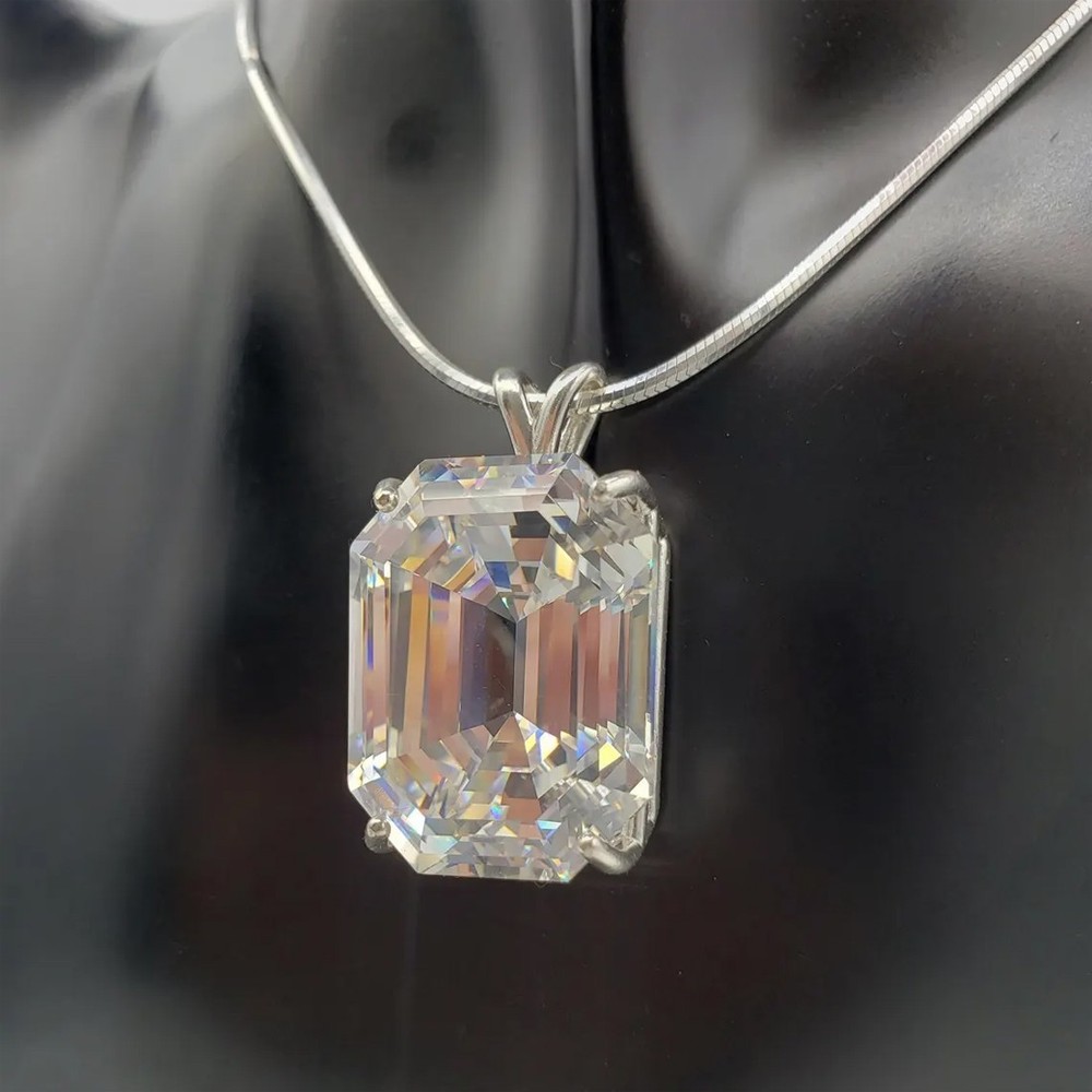 Welcome to Sunlight jewels Buy With Confidence from A Trusted Seller Every Diamond we sell is double tested and 100% guaranteed to be a Real Earth Mined Diamond! ********************************************************************************************************************************* ALL ITEMS WILL BE DELIVERED WITHOUT PAYING ANY TARIFFS, CUSTOM DUTIES ETC. BY YOU. GREAT BRILLIANCE & LATEST DESIGN! Diamond Color - White Shape of Diamond - Emerald Cut Approx. Weight of Diamond - 22.70 Carat Origin of Diamond - Brazil Approx. Size of Diamond - 18 mm 15 mm 10 mm Species - Earth Mined Treatment - HPHT Cut - Excellent Clarity - VVs1 Metal - 925 Sterling Silver Finish - White Gold CERTIFICATE OF AUTHENTICITY PROVIDED This diamond pendent is handcrafted with utmost care. Would make an ideal gift for someone special. The diamond has excellent cut and luster. Comes in attractive packaging. Shipping : Shipping is by USPS/SPEEDPOST/DHL or similar shipping agencies to reach you in 9-12 business days after processing the order. Tracking is provided. For USPS the tracking will show up in transit after 7-9 days once it reaches US from India. Please note: Jewelry items can take up to 10-12business days to process to take care of ring sizing if any, polishing, finishing , packing and handling, certification, documentation etc. Shipping Charges include eBay fees on Shipping, packaging, certification costs, manpower costs, overheads, taxes etc. IN addition to actual courier/postal expenses which have increased substantially as a result of pandemic. We do not artificially increase the price of the products to include shipping charges but only charge what shipping actually costs us. Combined Shipping: Combined shipping discount is available up to 5 (Five)items in an order to be purchased within 5 days. You can continue to buy- Any additional items above 5 in quantity will be considered a new order. This is to avoid pilferage en-route as well as to ensure that you are happy with the merchandise. Once you have received their items you may buy additional items again. This limit may be revised for repeat and regular customers. Payment: Buyers are requested to pay within 3 (Three) days of purchases. eBay will automatically open unpaid item cases in case payment is not received within this period. The item will also be available for purchase to other buyers till such time that the payment is received. Customs and Taxes: Any customs duties, charges and local taxes are subject to local laws and vary from country to country and hence the payment of any eventual custom duties, charges, levies and taxes etc will be at the buyer's expense. We do not have any control on the same. Returns & Refunds: You can return the item within 14 days of receiving the parcel. - Please return in original packing. Buyers are required to check and ensure that the item/s are in good condition and as per item listing on eBay as no claims for returns and refunds will be entertained thereafter. The returned item should be unused and in original and undamaged condition. Buyer will be required to ensure that the item is sent by trackable shipper. Shipping charges are non-refundable. Refunds are made by PayPal and may take up to 5-7days after receiving back the product/s. Disputes: We aim to settle all disputes amicably. Please do not open any dispute on eBay for dis-satisfaction or for non-receipt or to return an item. We are available through ebay messages system and most messages are replied in a few hours. Personalized satisfaction is of utmost importance to us. Feedback : We always provide excellent feedback to our buyers and expect the same in return with 5-star ratings. In case of any dissatisfaction or any other reason please do contact us before leaving any neutral or negative feedback - we will strive our best to resolve all issues to your satisfaction. Metal : Silver is 925 Sterling Silver with Nickel Free Rhodium Plating. Please refrain from buying if you have allergic reaction to metals. We will not be responsible for any health problems in this regard. Legal Disclaimer : Refund or any claim liability for the buyer is only limited to the value of the item purchased. No additional claims will be entertained for any other reason whatsoever. Please note that since various labs may have different testing methods and the interpretation of all our Diamonds and Stones may differ from one lab to another as well as from one Gemologist, appraiser and Jeweler to another, we will be unable to accept another Lab Certificate or the judgement of any other third party including any Gemologist, appraiser, Lab, Jeweler etc. By consenting to buy our items it is understood that you have read, understood and agree to the terms and conditions as well as the FAQ for the Diamonds and Jewelry being sold buys. FAQ What are Color Diamonds? These are genuine Colored Diamonds found naturally mines mainly from Brazil. They are more porous than White Diamonds and are found in the upper layers of the ground relative to the White Diamonds that are mined deep. Some scientists are of the opinion that their origin maybe a Meteor that impacted earth Billions of years ago. What is their nature? Colored Diamonds are not found in the state as they are sold. They are made from earth mined rough rock found in mines of Brazil. The Rock color varies from Light Blue, Dark Blue, Champagne, Pink, Green etc. What is the treatment process? To bring out its true color it needs to be treated. The process is a natural one employing gentle heating a high-pressure environment (HPHT) which gradually brings out the true color of the Diamond. Are any artificial colors or chemicals added? There are no artificial colors or chemicals included in the process. They are not irradiated. Does it alter the composition? The process may or may not alter the composition. It remains a true Diamond nevertheless. Once our diamonds are heat-treated, it may move the molecules. This causes them to n