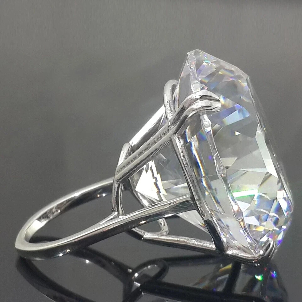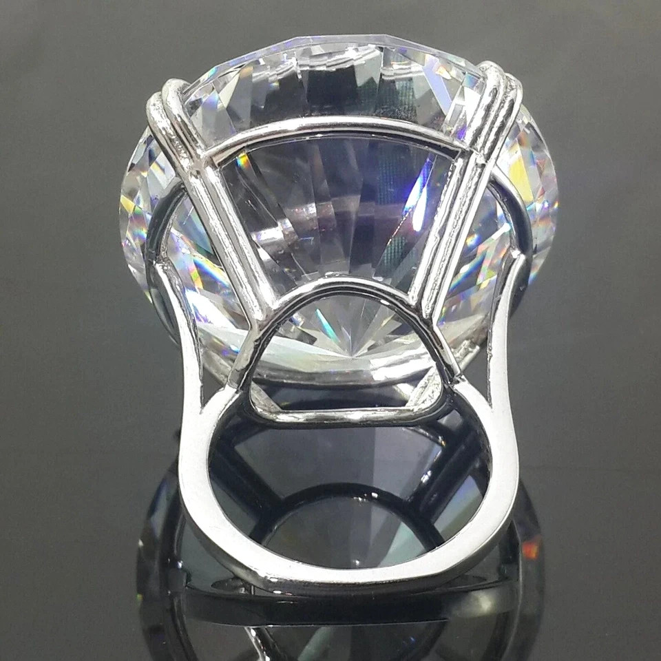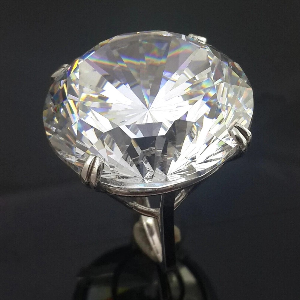 Welcome to Sunlight jewels Buy With Confidence from A Trusted Seller Every Diamond we sell is double tested and 100% guaranteed to be a Real Earth Mined Diamond! RARE 27.40 Ct Treated White Diamond Solitaire Ring In 925 Silver. Certified *********************************************************************************************************** Diamond Color - White Shape of Diamond - Round Cut Approx. Weight of Diamond - 27.40 Carat Approx. Size of Diamond - 21 mm Origin of Diamond - Brazil Species - Earth Mined Cut - Excellent Quality - AAA Metal - 925 Sterling Silver Finish - White Gold Ring Size - US 7 is Default, Size Can be resized please massage us This diamond Ring is handcrafted with utmost care. Would make an ideal gift for someone special. The diamond has excellent cut and luster. Comes in attractive packaging. CERTIFICATE OF AUTHENTICITY PROVIDED Shipping : Shipping is by UPS/SPEEDPOST/FEDEX or similar shipping agencies to reach you in 9-12 business days after processing the order. Tracking is provided. Please note: Jewelry items can take up to 10-12 business days to process to take care of ring sizing if any, polishing, finishing, packing and handling, certification, documentation etc. Shipping Charges include eBay fees on Shipping, packaging, certification costs, manpower costs, overheads, taxes etc. in addition to actual courier/postal expenses which have increased substantially as a result of pandemic & global economic conditions. We do not artificially increase the price of the products to include shipping charges but only charge what shipping actually costs us. Combined Shipping: Combined shipping discount is available up to 5 (Five)items in an order to be purchased within 5 days. You can continue to buy- Any additional items above 5 in quantity will be considered a new order. This is to avoid pilferage en-route as well as to ensure that you are happy with the merchandise. Once you have received their items you may buy additional items again. This limit may be revised for repeat and regular customers. Payment: Buyers are requested to pay within 3 (Three) days of purchases. eBay will automatically open unpaid item cases in case payment is not received within this period. The item will also be available for purchase to other buyers till such time that the payment is received. Customs and Taxes: Any customs duties, charges and local taxes are subject to local laws and vary from country to country and hence the payment of any eventual custom duties, charges, levies and taxes etc will be at the buyer's expense. We do not have any control on the same. Returns & Refunds: You can return the item within 14 days of receiving the parcel. - Please return in original packing. Buyers are required to check and ensure that the item/s are in good condition and as per item listing on eBay as no claims for returns and refunds will be entertained thereafter. The returned item should be unused and in original and undamaged condition. Buyer will be required to ensure that the item is sent by trackable shipper. Shipping charges are non-refundable. Refunds are made by PayPal and may take up to 5-7days after receiving back the product/s. Disputes: We aim to settle all disputes amicably. Please do not open any dispute on eBay for dis-satisfaction or for non-receipt or to return an item. We are available through ebay messages system and most messages are replied in a few hours. Personalized satisfaction is of utmost importance to us. Feedback : We always provide excellent feedback to our buyers and expect the same in return with 5-star ratings. In case of any dissatisfaction or any other reason please do contact us before leaving any neutral or negative feedback - we will strive our best to resolve all issues to your satisfaction. Metal : Silver is 925 Sterling Silver with Nickel Free Rhodium Plating. Please refrain from buying if you have allergic reaction to metals. We will not be responsible for any health problems in this regard. Legal Disclaimer : Refund or any claim liability for the buyer is only limited to the value of the item purchased. No additional claims will be entertained for any other reason whatsoever. Please note that since various labs may have different testing methods and the interpretation of all our Diamonds and Stones may differ from one lab to another as well as from one Gemologist, appraiser and Jeweler to another, we will be unable to accept another Lab Certificate or the judgement of any other third party including any Gemologist, appraiser, Lab, Jeweler etc. By consenting to buy our items it is understood that you have read, understood and agree to the terms and conditions as well as the FAQ for the Diamonds and Jewelry being sold buys. FAQ What are Color Diamonds? These are genuine Colored Diamonds found naturally mines mainly from Brazil. They are more porous than White Diamonds and are found in the upper layers of the ground relative to the White Diamonds that are mined deep. Some scientists are of the opinion that their origin maybe a Meteor that impacted earth Billions of years ago. What is their nature? Colored Diamonds are not found in the state as they are sold. They are made from earth mined rough rock found in mines of Brazil. The Rock color varies from Light Blue, Dark Blue, Champagne, Pink, Green etc. What is the treatment process? To bring out its true color it needs to be treated. The process is a natural one employing gentle heating a high-pressure environment (HPHT) which gradually brings out the true color of the Diamond. Are any artificial colors or chemicals added? There are no artificial colors or chemicals included in the process. They are not irradiated. Does it alter the composition? The process may or may not alter the composition. It remains a true Diamond nevertheless. Once our diamonds are heat-treated, it may move the molecules. This causes them to not always test properly with a hand tester. If a hand tester is used, sometimes they test as 