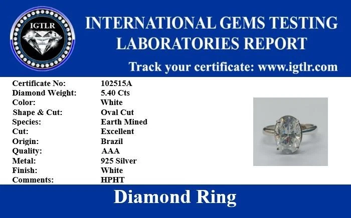 Welcome to Sunlight jewels Buy With Confidence from A Trusted Seller Every Diamond we sell is double tested and 100% guaranteed to be a Real Earth Mined Diamond! ********************************************************************************************************************************* ALL ITEMS WILL BE DELIVERED WITHOUT PAYING ANY TARIFFS, CUSTOM DUTIES ETC. BY YOU. ELEGANT LOOK! GREAT SHINE! Diamond Color - White Shape of Diamond - Oval Cut Approx. Weight of Diamond - 5.40 Carat Approx. Size of Diamond - 13 mm 10 mm 8 mm Origin of Diamond - Brazil Species - Earth Mined Treated - HPHT Clarity - VVS1 Cut - Excellent Size of Ring – US 7 is default size - (Can be resized for additional $ 20.00 or default will be shipped) https://www.ebay.com/itm/404196768619 You can pay for resizing from the following link: Please copy and paste the above link in your browser Metal - Stamped Solid 925 Sterling Silver Finish - White Gold Shipping : Shipping is by UPS/SPEEDPOST/FEDEX or similar shipping agencies to reach you in 9-12 business days after processing the order. Tracking is provided. Please note: Jewelry items can take up to 10-12 business days to process to take care of ring sizing if any, polishing, finishing, packing and handling, certification, documentation etc. Shipping Charges include eBay fees on Shipping, packaging, certification costs, manpower costs, overheads, taxes etc. in addition to actual courier/postal expenses which have increased substantially as a result of pandemic & global economic conditions. We do not artificially increase the price of the products to include shipping charges but only charge what shipping actually costs us. Combined Shipping: Combined shipping discount is available up to 5 (Five)items in an order to be purchased within 5 days. You can continue to buy- Any additional items above 5 in quantity will be considered a new order. This is to avoid pilferage en-route as well as to ensure that you are happy with the merchandise. Once you have received their items you may buy additional items again. This limit may be revised for repeat and regular customers. Payment: Buyers are requested to pay within 3 (Three) days of purchases. eBay will automatically open unpaid item cases in case payment is not received within this period. The item will also be available for purchase to other buyers till such time that the payment is received. Customs and Taxes: Any customs duties, charges and local taxes are subject to local laws and vary from country to country and hence the payment of any eventual custom duties, charges, levies and taxes etc will be at the buyer's expense. We do not have any control on the same. Returns & Refunds: You can return the item within 14 days of receiving the parcel. - Please return in original packing. Buyers are required to check and ensure that the item/s are in good condition and as per item listing on eBay as no claims for returns and refunds will be entertained thereafter. The returned item should be unused and in original and undamaged condition. Buyer will be required to ensure that the item is sent by trackable shipper. Shipping charges are non-refundable. Refunds are made by PayPal and may take up to 5-7days after receiving back the product/s. Disputes: We aim to settle all disputes amicably. Please do not open any dispute on eBay for dis-satisfaction or for non-receipt or to return an item. We are available through ebay messages system and most messages are replied in a few hours. Personalized satisfaction is of utmost importance to us. Feedback: We always provide excellent feedback to our buyers and expect the same in return with 5-star ratings. In case of any dissatisfaction or any other reason please do contact us before leaving any neutral or negative feedback - we will strive our best to resolve all issues to your satisfaction. Metal: Silver is 925 Sterling Silver with Nickel Free Rhodium Plating. Please refrain from buying if you have allergic reaction to metals. We will not be responsible for any health problems in this regard. Legal Disclaimer: Refund or any claim liability for the buyer is only limited to the value of the item purchased. No additional claims will be entertained for any other reason whatsoever. Please note that since various labs may have different testing methods and the interpretation of all our Diamonds and Stones may differ from one lab to another as well as from one Gemologist, appraiser and Jeweler to another, we will be unable to accept another Lab Certificate or the judgement of any other third party including any Gemologist, appraiser, Lab, Jeweler etc. By consenting to buy our items it is understood that you have read, understood and agree to the terms and conditions as well as the FAQ for the Diamonds and Jewelry being sold buys. FAQ What are Color Diamonds? These are genuine Colored Diamonds found naturally mines mainly from Brazil. They are more porous than White Diamonds and are found in the upper layers of the ground relative to the White Diamonds that are mined deep. Some scientists are of the opinion that their origin maybe a Meteor that impacted earth Billions of years ago. What is their nature? Colored Diamonds are not found in the state as they are sold. They are made from earth mined rough rock found in mines of Brazil. The Rock color varies from Light Blue, Dark Blue, Champagne, Pink, Green etc. What is the treatment process? To bring out its true color it needs to be treated. The process is a natural one employing gentle heating a high-pressure environment (HPHT) which gradually brings out the true color of the Diamond. Are any artificial colors or chemicals added? There are no artificial colors or chemicals included in the process. They are not irradiated. Does it alter the composition? The process may or may not alter the composition. It remains a true Diamond nevertheless. Once our diamonds are heat-treated, it may move the molecules. This causes them to not always test properly wit
