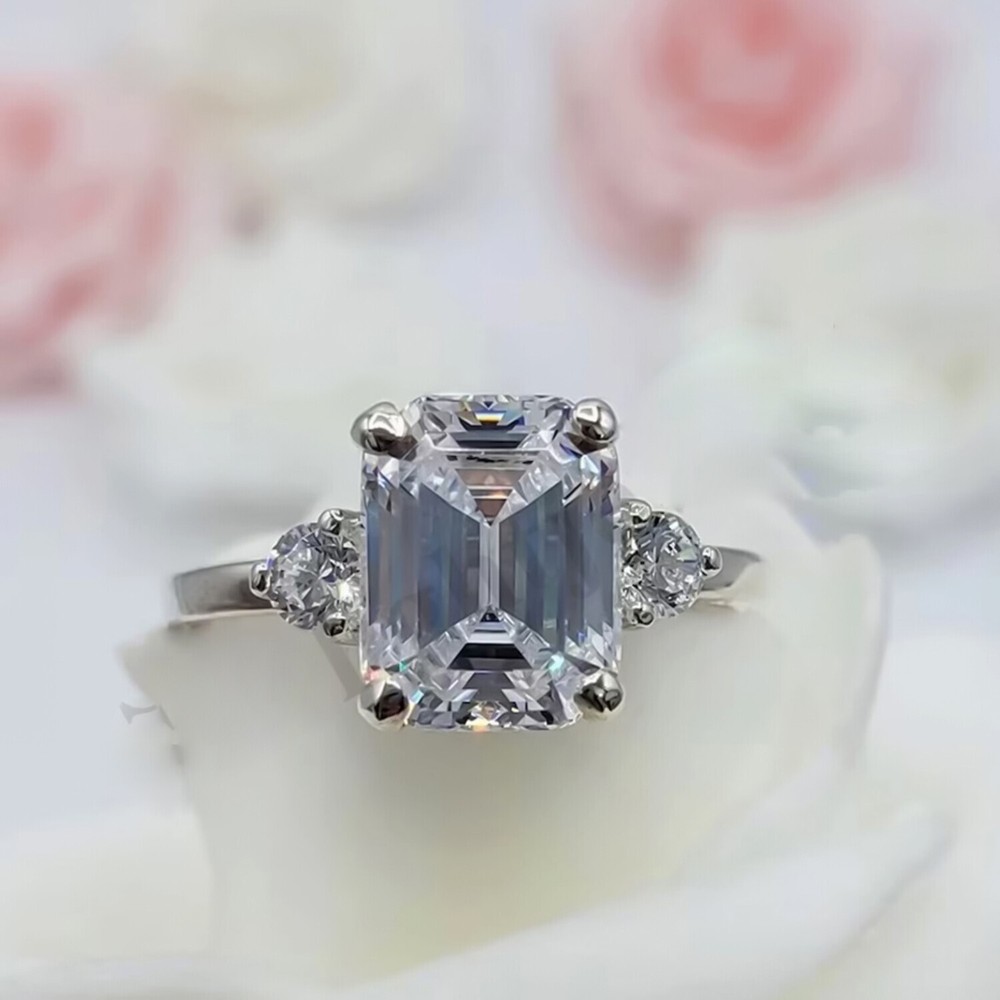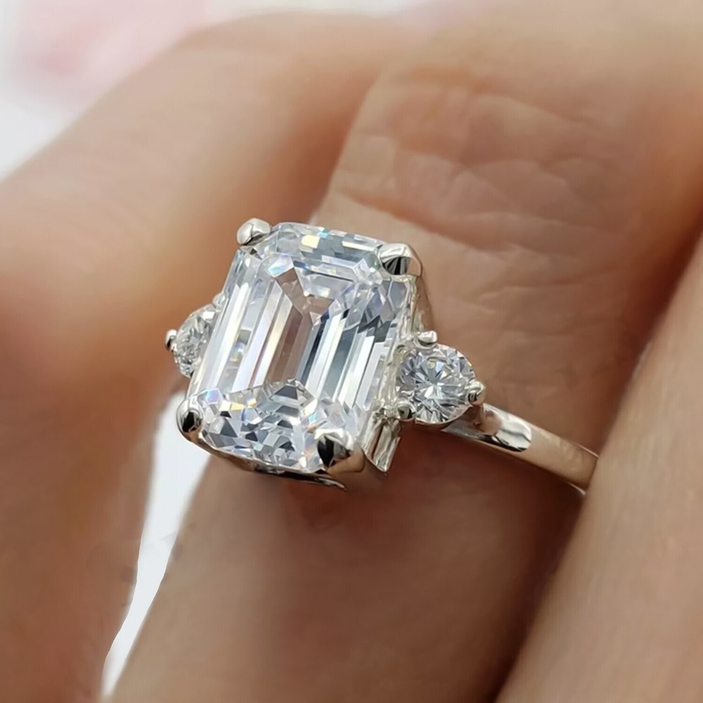 RARE 5.50 Ct Emerald Cut Off White Treated Diamond Ring in 925 Silver Cert