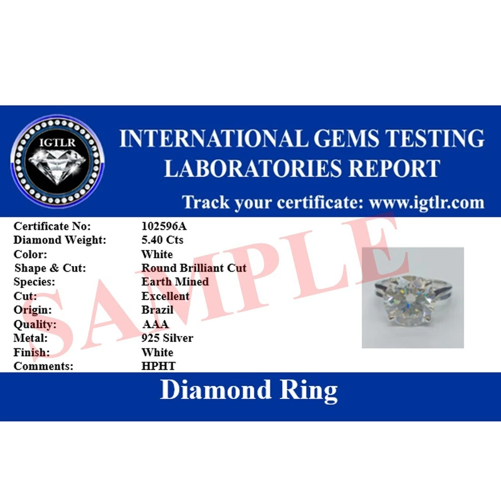 Welcome to Sunlight jewels Buy With Confidence from A Trusted Seller Every Diamond we sell is double tested and 100% guaranteed to be a Real Earth Mined Diamond! ********************************************************************************************************************************* ALL ITEMS WILL BE DELIVERED WITHOUT PAYING ANY TARIFFS, CUSTOM DUTIES ETC. BY YOU. ELEGANT LOOK! GREAT SHINE! Diamond Color - White Shape of Diamond - Round Brilliant Cut Approx. Weight of Diamond - 7.60 Carat Approx. Size of Diamond - 14 mm Origin of Diamond - Brazil Species - Earth Mined Treated - HPHT Clarity - VVS1 Cut - Excellent Size of Ring – US 7 is default size - (Can be resized for additional $ 20.00 or default will be shipped) https://www.ebay.com/itm/404196768619 You can pay for resizing from the following link: Please copy and paste the above link in your browser Metal - Stamped Solid 925 Sterling Silver Finish - White Gold This diamond ring is handcrafted with utmost care. Would make an ideal gift for someone special. The diamond has excellent cut and luster. Comes in attractive packaging. CERTIFICATE OF AUTHENTICITY PROVIDED Shipping : Shipping is by UPS/SPEEDPOST/FEDEX or similar shipping agencies to reach you in 9-12 business days after processing the order. Tracking is provided. Please note: Jewelry items can take up to 10-12 business days to process to take care of ring sizing if any, polishing, finishing, packing and handling, certification, documentation etc. Shipping Charges include eBay fees on Shipping, packaging, certification costs, manpower costs, overheads, taxes etc. in addition to actual courier/postal expenses which have increased substantially as a result of pandemic & global economic conditions. We do not artificially increase the price of the products to include shipping charges but only charge what shipping actually costs us. Combined Shipping: Combined shipping discount is available up to 5 (Five)items in an order to be purchased within 5 days. You can continue to buy- Any additional items above 5 in quantity will be considered a new order. This is to avoid pilferage en-route as well as to ensure that you are happy with the merchandise. Once you have received their items you may buy additional items again. This limit may be revised for repeat and regular customers. Payment: Buyers are requested to pay within 3 (Three) days of purchases. eBay will automatically open unpaid item cases in case payment is not received within this period. The item will also be available for purchase to other buyers till such time that the payment is received. Customs and Taxes: Any customs duties, charges and local taxes are subject to local laws and vary from country to country and hence the payment of any eventual custom duties, charges, levies and taxes etc will be at the buyer's expense. We do not have any control on the same. Returns & Refunds: You can return the item within 14 days of receiving the parcel. - Please return in original packing. Buyers are required to check and ensure that the item/s are in good condition and as per item listing on eBay as no claims for returns and refunds will be entertained thereafter. The returned item should be unused and in original and undamaged condition. Buyer will be required to ensure that the item is sent by trackable shipper. Shipping charges are non-refundable. Refunds are made by PayPal and may take up to 5-7days after receiving back the product/s. Disputes: We aim to settle all disputes amicably. Please do not open any dispute on eBay for dis-satisfaction or for non-receipt or to return an item. We are available through ebay messages system and most messages are replied in a few hours. Personalized satisfaction is of utmost importance to us. Feedback : We always provide excellent feedback to our buyers and expect the same in return with 5-star ratings. In case of any dissatisfaction or any other reason please do contact us before leaving any neutral or negative feedback - we will strive our best to resolve all issues to your satisfaction. Metal : Silver is 925 Sterling Silver with Nickel Free Rhodium Plating. Please refrain from buying if you have allergic reaction to metals. We will not be responsible for any health problems in this regard. Legal Disclaimer : Refund or any claim liability for the buyer is only limited to the value of the item purchased. No additional claims will be entertained for any other reason whatsoever. Please note that since various labs may have different testing methods and the interpretation of all our Diamonds and Stones may differ from one lab to another as well as from one Gemologist, appraiser and Jeweler to another, we will be unable to accept another Lab Certificate or the judgement of any other third party including any Gemologist, appraiser, Lab, Jeweler etc. By consenting to buy our items it is understood that you have read, understood and agree to the terms and conditions as well as the FAQ for the Diamonds and Jewelry being sold buys. FAQ What are Color Diamonds? These are genuine Colored Diamonds found naturally mines mainly from Brazil. They are more porous than White Diamonds and are found in the upper layers of the ground relative to the White Diamonds that are mined deep. Some scientists are of the opinion that their origin maybe a Meteor that impacted earth Billions of years ago. What is their nature? Colored Diamonds are not found in the state as they are sold. They are made from earth mined rough rock found in mines of Brazil. The Rock color varies from Light Blue, Dark Blue, Champagne, Pink, Green etc. What is the treatment process? To bring out its true color it needs to be treated. The process is a natural one employing gentle heating a high-pressure environment (HPHT) which gradually brings out the true color of the Diamond. Are any artificial colors or chemicals added? There are no artificial colors or chemicals included in the process. They are not irradiated. Does it alter the comp