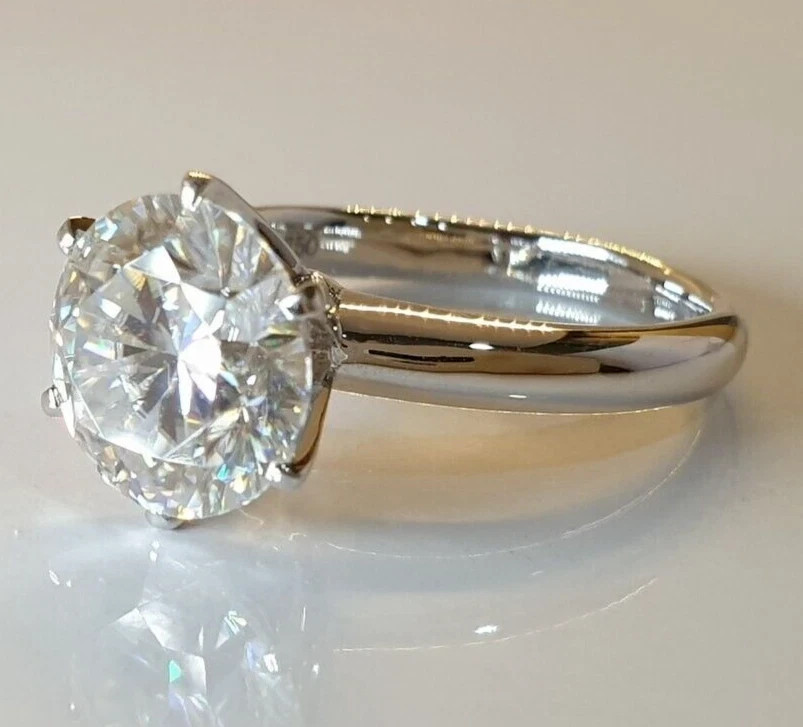 Welcome to Sunlight jewels Buy With Confidence from A Trusted Seller Every Diamond we sell is double tested and 100% guaranteed to be a Real Earth Mined Diamond! RARE 8.40 Ct Treated White Diamond Solitaire Ring In 925 Silver. Certified *********************************************************************************************************** Diamond Color - White Shape of Diamond - Round Cut Approx. Weight of Diamond - 8.10 Carat Approx. Size of Diamond - 14 mm Origin of Diamond - Brazil Species - Earth Mined Cut - Excellent Quality - AAA Metal - 925 Sterling Silver Finish - White Gold Ring Size - US 7 is Default, Size Can be resized please massage us This diamond Ring is handcrafted with utmost care. Would make an ideal gift for someone special. The diamond has excellent cut and luster. Comes in attractive packaging. CERTIFICATE OF AUTHENTICITY PROVIDED Shipping : Shipping is by UPS/SPEEDPOST/FEDEX or similar shipping agencies to reach you in 9-12 business days after processing the order. Tracking is provided. Please note: Jewelry items can take up to 10-12 business days to process to take care of ring sizing if any, polishing, finishing, packing and handling, certification, documentation etc. Shipping Charges include eBay fees on Shipping, packaging, certification costs, manpower costs, overheads, taxes etc. in addition to actual courier/postal expenses which have increased substantially as a result of pandemic & global economic conditions. We do not artificially increase the price of the products to include shipping charges but only charge what shipping actually costs us. Combined Shipping: Combined shipping discount is available up to 5 (Five)items in an order to be purchased within 5 days. You can continue to buy- Any additional items above 5 in quantity will be considered a new order. This is to avoid pilferage en-route as well as to ensure that you are happy with the merchandise. Once you have received their items you may buy additional items again. This limit may be revised for repeat and regular customers. Payment: Buyers are requested to pay within 3 (Three) days of purchases. eBay will automatically open unpaid item cases in case payment is not received within this period. The item will also be available for purchase to other buyers till such time that the payment is received. Customs and Taxes: Any customs duties, charges and local taxes are subject to local laws and vary from country to country and hence the payment of any eventual custom duties, charges, levies and taxes etc will be at the buyer's expense. We do not have any control on the same. Returns & Refunds: You can return the item within 14 days of receiving the parcel. - Please return in original packing. Buyers are required to check and ensure that the item/s are in good condition and as per item listing on eBay as no claims for returns and refunds will be entertained thereafter. The returned item should be unused and in original and undamaged condition. Buyer will be required to ensure that the item is sent by trackable shipper. Shipping charges are non-refundable. Refunds are made by PayPal and may take up to 5-7days after receiving back the product/s. Disputes: We aim to settle all disputes amicably. Please do not open any dispute on eBay for dis-satisfaction or for non-receipt or to return an item. We are available through ebay messages system and most messages are replied in a few hours. Personalized satisfaction is of utmost importance to us. Feedback : We always provide excellent feedback to our buyers and expect the same in return with 5-star ratings. In case of any dissatisfaction or any other reason please do contact us before leaving any neutral or negative feedback - we will strive our best to resolve all issues to your satisfaction. Metal : Silver is 925 Sterling Silver with Nickel Free Rhodium Plating. Please refrain from buying if you have allergic reaction to metals. We will not be responsible for any health problems in this regard. Legal Disclaimer : Refund or any claim liability for the buyer is only limited to the value of the item purchased. No additional claims will be entertained for any other reason whatsoever. Please note that since various labs may have different testing methods and the interpretation of all our Diamonds and Stones may differ from one lab to another as well as from one Gemologist, appraiser and Jeweler to another, we will be unable to accept another Lab Certificate or the judgement of any other third party including any Gemologist, appraiser, Lab, Jeweler etc. By consenting to buy our items it is understood that you have read, understood and agree to the terms and conditions as well as the FAQ for the Diamonds and Jewelry being sold buys. FAQ What are Color Diamonds? These are genuine Colored Diamonds found naturally mines mainly from Brazil. They are more porous than White Diamonds and are found in the upper layers of the ground relative to the White Diamonds that are mined deep. Some scientists are of the opinion that their origin maybe a Meteor that impacted earth Billions of years ago. What is their nature? Colored Diamonds are not found in the state as they are sold. They are made from earth mined rough rock found in mines of Brazil. The Rock color varies from Light Blue, Dark Blue, Champagne, Pink, Green etc. What is the treatment process? To bring out its true color it needs to be treated. The process is a natural one employing gentle heating a high-pressure environment (HPHT) which gradually brings out the true color of the Diamond. Are any artificial colors or chemicals added? There are no artificial colors or chemicals included in the process. They are not irradiated. Does it alter the composition? The process may or may not alter the composition. It remains a true Diamond nevertheless. Once our diamonds are heat-treated, it may move the molecules. This causes them to not always test properly with a hand tester. If a hand tester is used, sometimes they test as di
