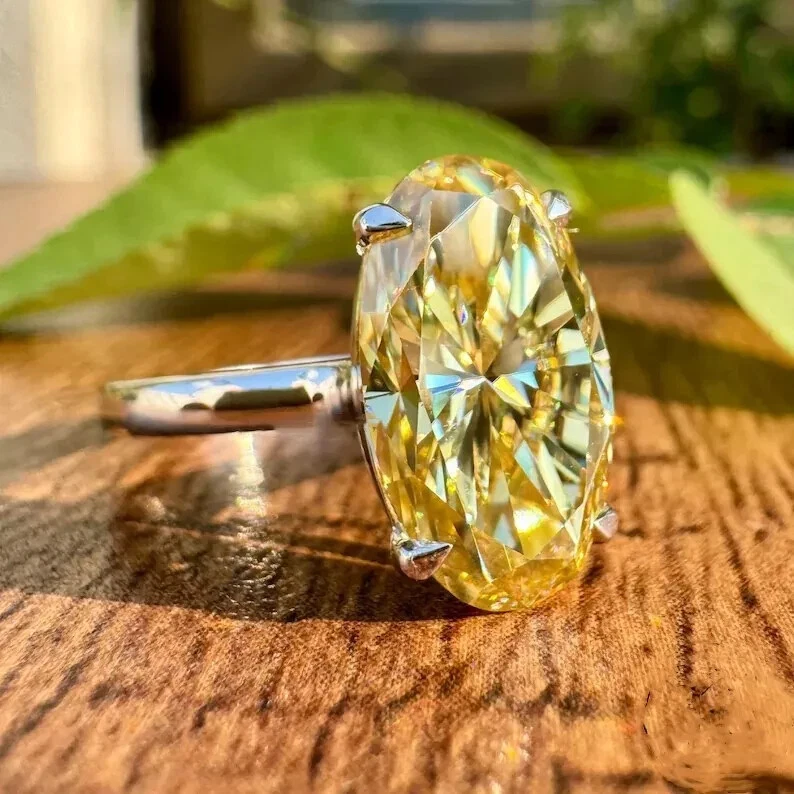 ELEGANT LOOK! GREAT SHINE! Diamond Color - Champagne Shape of Diamond - Oval Cut Approx. Weight of Diamond - 9.25 Carat Approx. Size of Diamond - 15 mm 11 mm 7 mm Origin of Diamond - Brazil Species - Earth Mined Treated - HPHT Clarity - VVS1 Cut - Excellent Size of Ring – US 7 is default size - (Can be resized for additional $ 20.00 or default will be shipped) https://www.ebay.com/itm/404196768619 You can pay for resizing from the following link: Please copy and paste the above link in your browser Metal - Stamped Solid 925 Sterling Silver Finish - White Gold This diamond ring is handcrafted with utmost care. Would make an ideal gift for someone special. The diamond has excellent cut and luster. Comes in attractive packaging. CERTIFICATE OF AUTHENTICITY PROVIDED Shipping : Shipping is by UPS/SPEEDPOST/FEDEX or similar shipping agencies to reach you in 9-12 business days after processing the order. Tracking is provided. Please note: Jewelry items can take up to 10-12 business days to process to take care of ring sizing if any, polishing, finishing, packing and handling, certification, documentation etc. Shipping Charges include eBay fees on Shipping, packaging, certification costs, manpower costs, overheads, taxes etc. in addition to actual courier/postal expenses which have increased substantially as a result of pandemic & global economic conditions. We do not artificially increase the price of the products to include shipping charges but only charge what shipping actually costs us. Combined Shipping: Combined shipping discount is available up to 5 (Five)items in an order to be purchased within 5 days. You can continue to buy- Any additional items above 5 in quantity will be considered a new order. This is to avoid pilferage en-route as well as to ensure that you are happy with the merchandise. Once you have received their items you may buy additional items again. This limit may be revised for repeat and regular customers. Payment: Buyers are requested to pay within 3 (Three) days of purchases. eBay will automatically open unpaid item cases in case payment is not received within this period. The item will also be available for purchase to other buyers till such time that the payment is received. Customs and Taxes: Any customs duties, charges and local taxes are subject to local laws and vary from country to country and hence the payment of any eventual custom duties, charges, levies and taxes etc will be at the buyer's expense. We do not have any control on the same. Returns & Refunds: You can return the item within 14 days of receiving the parcel. - Please return in original packing. Buyers are required to check and ensure that the item/s are in good condition and as per item listing on eBay as no claims for returns and refunds will be entertained thereafter. The returned item should be unused and in original and undamaged condition. Buyer will be required to ensure that the item is sent by trackable shipper. Shipping charges are non-refundable. Refunds are made by PayPal and may take up to 5-7days after receiving back the product/s. Disputes: We aim to settle all disputes amicably. Please do not open any dispute on eBay for dis-satisfaction or for non-receipt or to return an item. We are available through ebay messages system and most messages are replied in a few hours. Personalized satisfaction is of utmost importance to us. Feedback : We always provide excellent feedback to our buyers and expect the same in return with 5-star ratings. In case of any dissatisfaction or any other reason please do contact us before leaving any neutral or negative feedback - we will strive our best to resolve all issues to your satisfaction. Metal : Silver is 925 Sterling Silver with Nickel Free Rhodium Plating. Please refrain from buying if you have allergic reaction to metals. We will not be responsible for any health problems in this regard. Legal Disclaimer : Refund or any claim liability for the buyer is only limited to the value of the item purchased. No additional claims will be entertained for any other reason whatsoever. Please note that since various labs may have different testing methods and the interpretation of all our Diamonds and Stones may differ from one lab to another as well as from one Gemologist, appraiser and Jeweler to another, we will be unable to accept another Lab Certificate or the judgement of any other third party including any Gemologist, appraiser, Lab, Jeweler etc. By consenting to buy our items it is understood that you have read, understood and agree to the terms and conditions as well as the FAQ for the Diamonds and Jewelry being sold buys. FAQ What are Color Diamonds? These are genuine Colored Diamonds found naturally mines mainly from Brazil. They are more porous than White Diamonds and are found in the upper layers of the ground relative to the White Diamonds that are mined deep. Some scientists are of the opinion that their origin maybe a Meteor that impacted earth Billions of years ago. What is their nature? Colored Diamonds are not found in the state as they are sold. They are made from earth mined rough rock found in mines of Brazil. The Rock color varies from Light Blue, Dark Blue, Champagne, Pink, Green etc. What is the treatment process? To bring out its true color it needs to be treated. The process is a natural one employing gentle heating a high-pressure environment (HPHT) which gradually brings out the true color of the Diamond. Are any artificial colors or chemicals added? There are no artificial colors or chemicals included in the process. They are not irradiated. Does it alter the composition? The process may or may not alter the composition. It remains a true Diamond nevertheless. Once our diamonds are heat-treated, it may move the molecules. This causes them to not always test properly with a hand tester. If a hand tester is used, sometimes they test as diamonds and sometimes they test as moissanites. But they are genuine earth mined diamonds, not