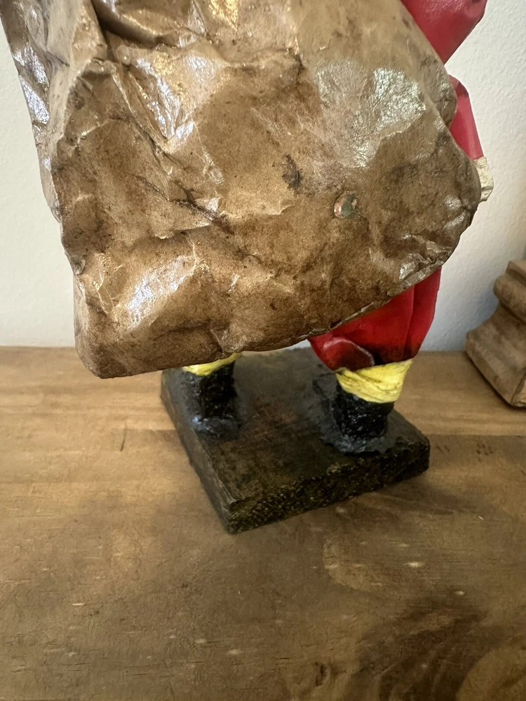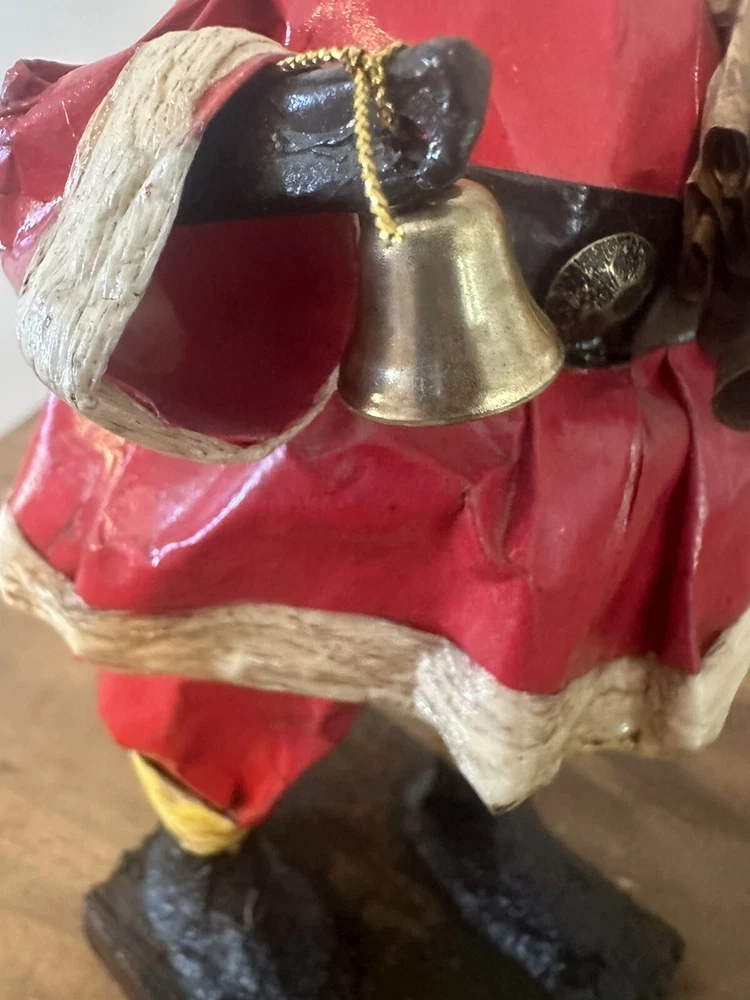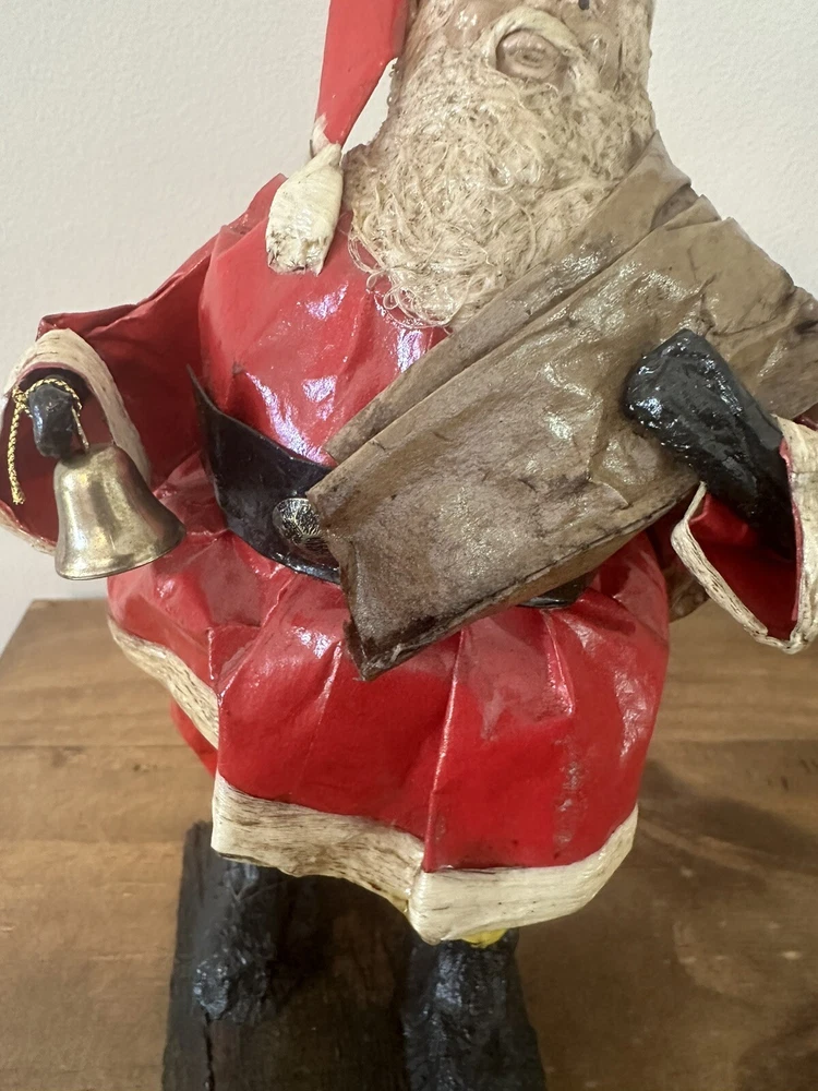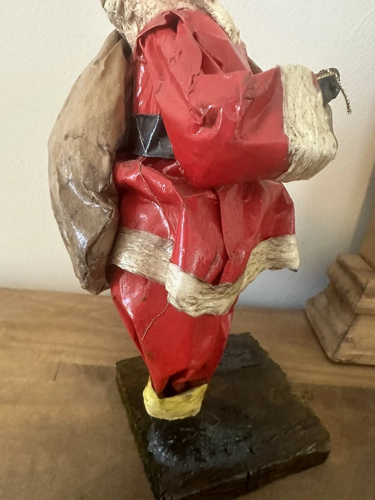 Bring home the joy of Christmas with this rare antique paper mache figurine of Santa Claus. The hand-painted red suit and charming details make it a perfect addition to any holiday decor. Measuring at 8.5 inches tall, this original piece is made with quality materials and is sure to be a cherished collector's item. Celebrate the magic of the season with this one-of-a-kind figurine. The intricate finish and unique design make it a must-have for any lover of holiday decor. Add it to your collection or give it as a gift to a fellow collector.