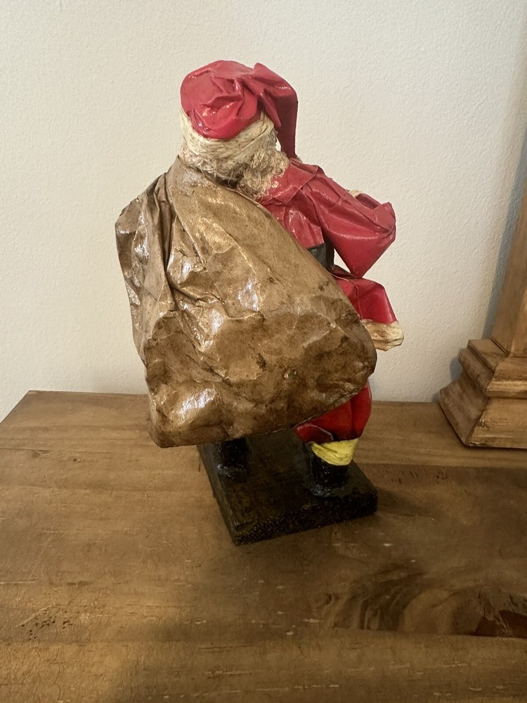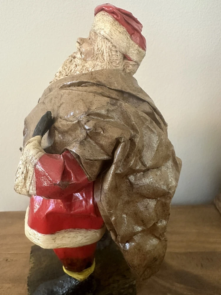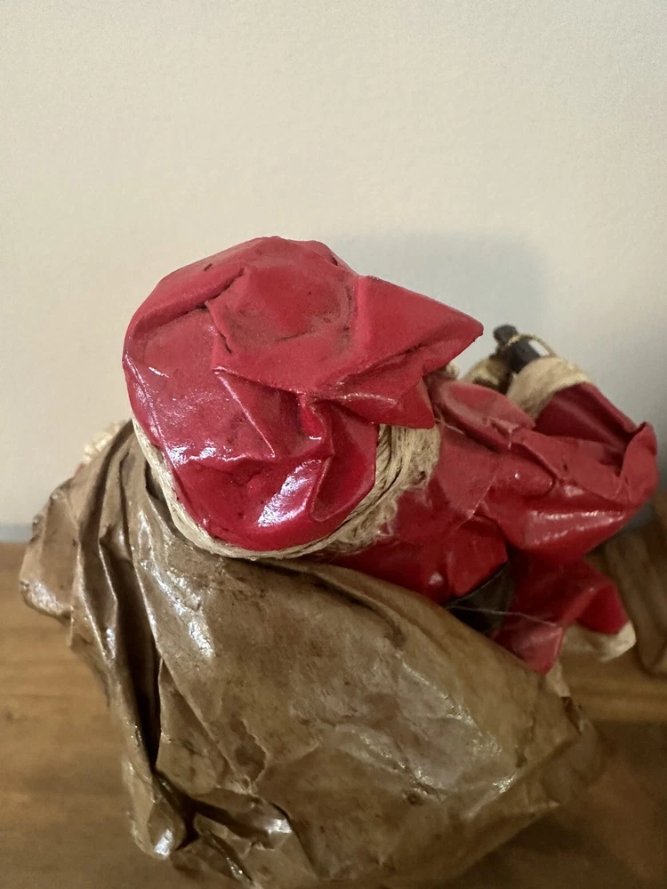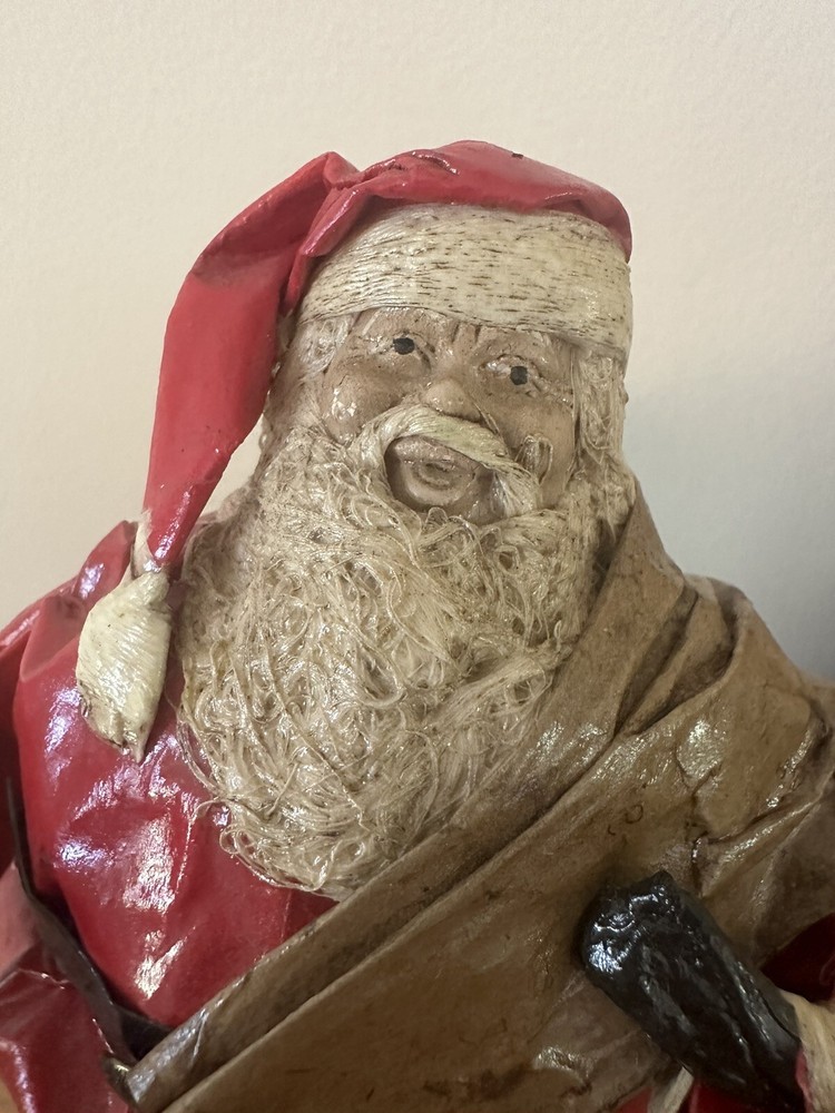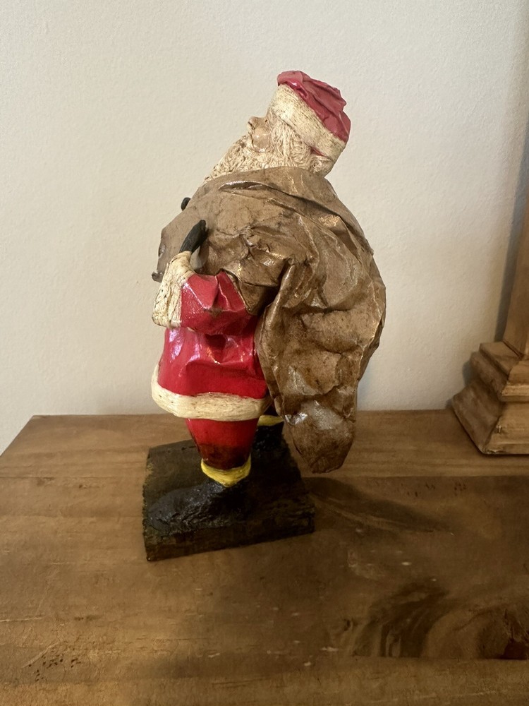 Bring home the joy of Christmas with this rare antique paper mache figurine of Santa Claus. The hand-painted red suit and charming details make it a perfect addition to any holiday decor. Measuring at 8.5 inches tall, this original piece is made with quality materials and is sure to be a cherished collector's item. Celebrate the magic of the season with this one-of-a-kind figurine. The intricate finish and unique design make it a must-have for any lover of holiday decor. Add it to your collection or give it as a gift to a fellow collector.