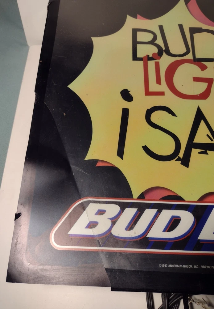 ** SUPER RARE SIGN LIGHTS UP / WORKS GREAT !! ACRYLIC ON FRONT DOES HAVE CRACK / SIGN SHOWS WEAR FROM AGE BUT EASILY COULD BE REPLACED / FIXED UP !! 18" x 18" **Please review all photos / what you see is exactly what you will receive**