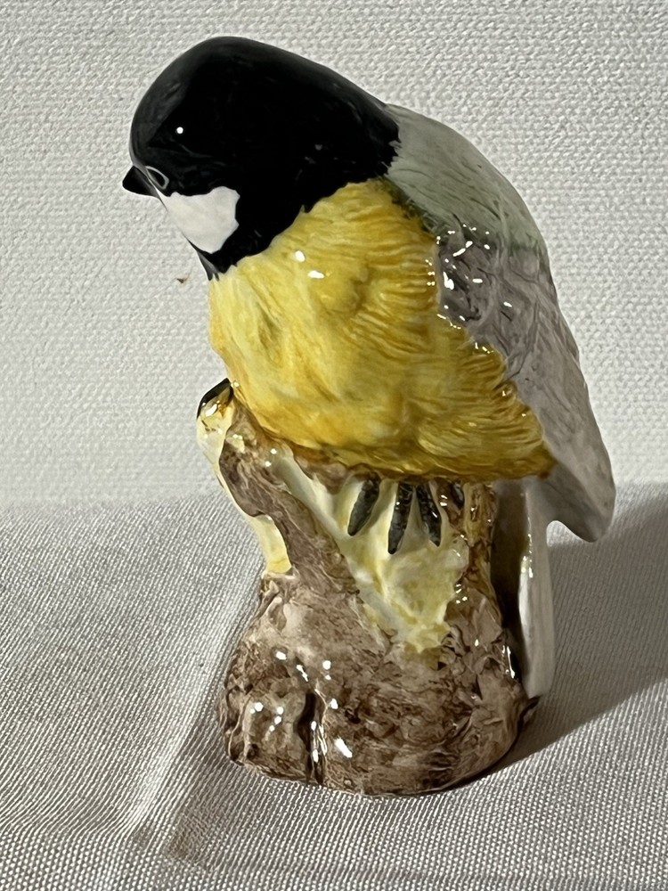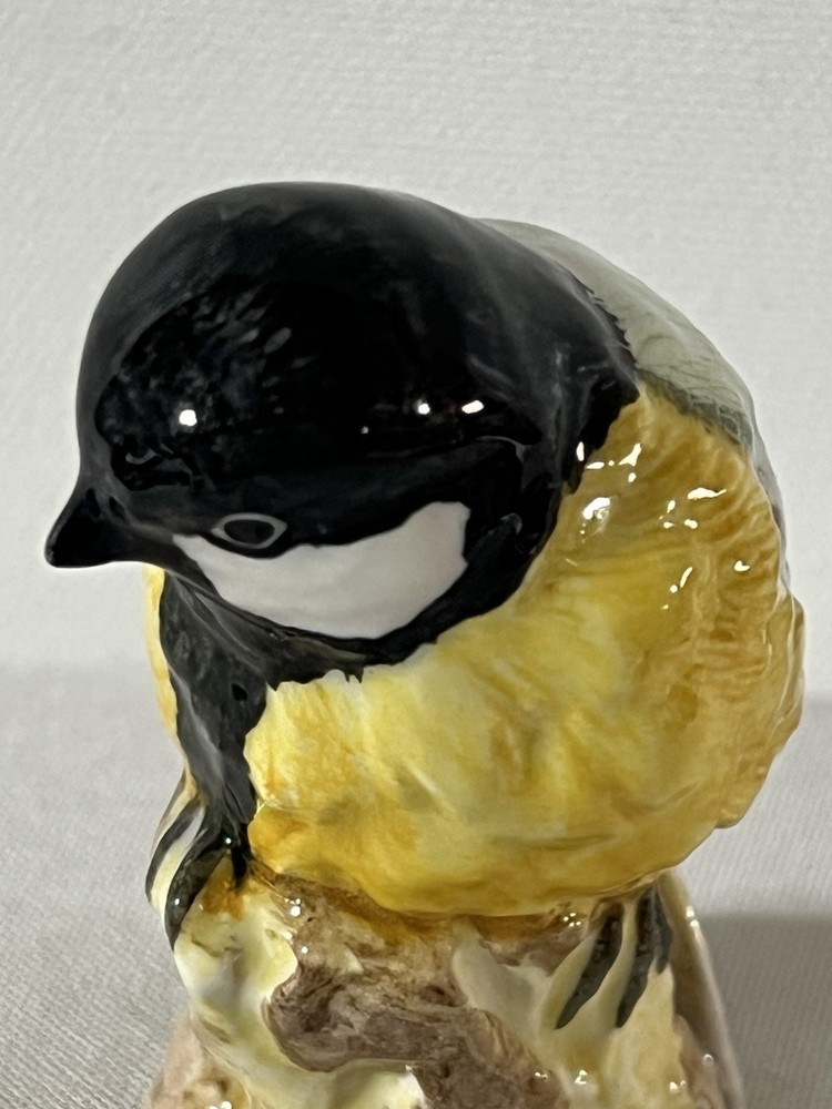 The Beswick, England Great Tit Bird Figurine 3274 is a vintage collectible piece made of porcelain and quite rare! Hand-painted with a glossy finish, this art pottery figurine features a multicolor design of an all-over bird pattern. Martyn Alcock is the designer. Colors include black, yellow, white and gray in a gloss finish. Produced in Great Britain in or around 1992, this Beswick figurine is a charming addition to any decor, especially for those who appreciate bird-themed pieces from the late 20th century. The Great Tit is in excellent condition with no cracks, chips or restoration. Few pieces for sale exist, mostly in England. Price is less than fair market value with free shipping!