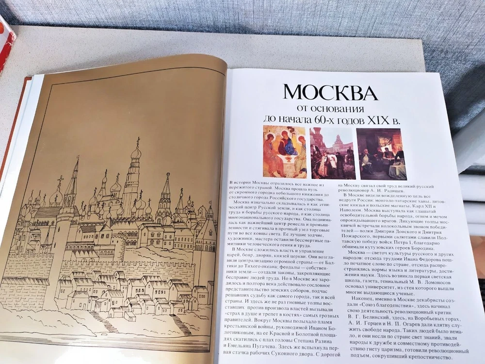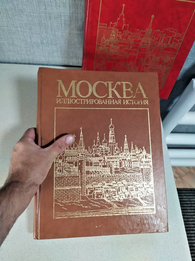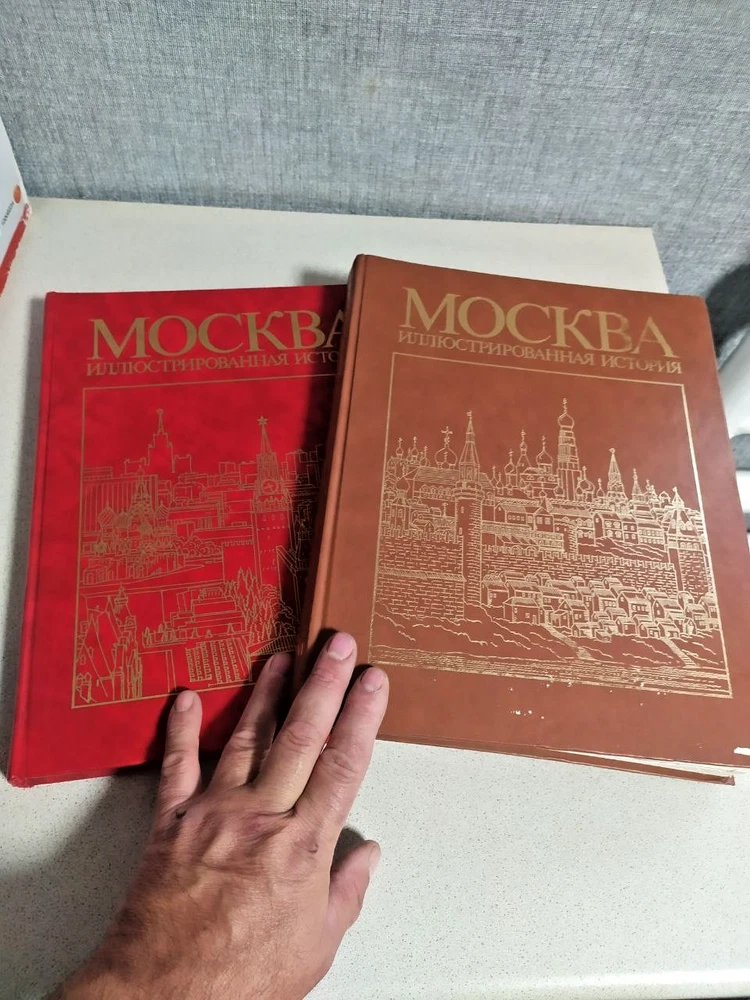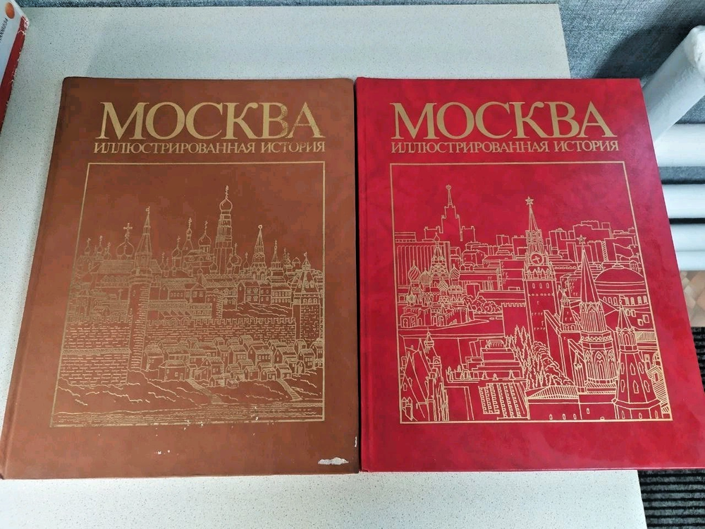 Books An illustrated history of Moscow in two volumesPublishing house Moscow "Thought"Two big heavy booksHistory of Moscow since ancient times.The books were used and in good condition.Size height 35 cm, width 27 cm.The brown book with pages at the bottom has a defect shown in the photo. Each book has 477 pages and illustrations. The red book is in good condition.The weight of the Red Book is 3 kg 147 grams. The weight of the Brown Book is 3 kg 29 grams.the books are big and heavy