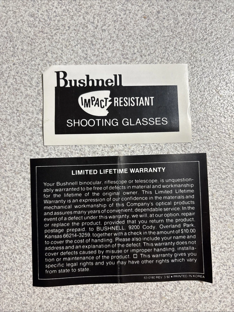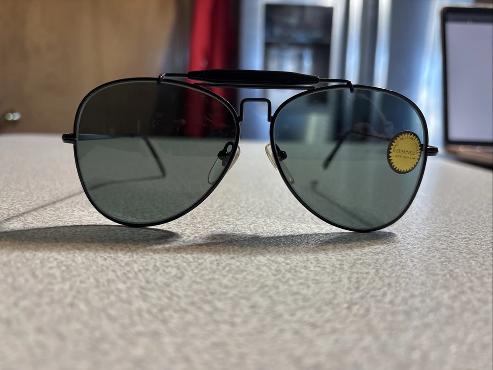RARE Bushnell Vintage Sunglasses Pilot/Aviator Black Korea Shooting Glasses Bought and never used. Includes case, limited lifetime warranty information, and glasses with original sticker still on it.