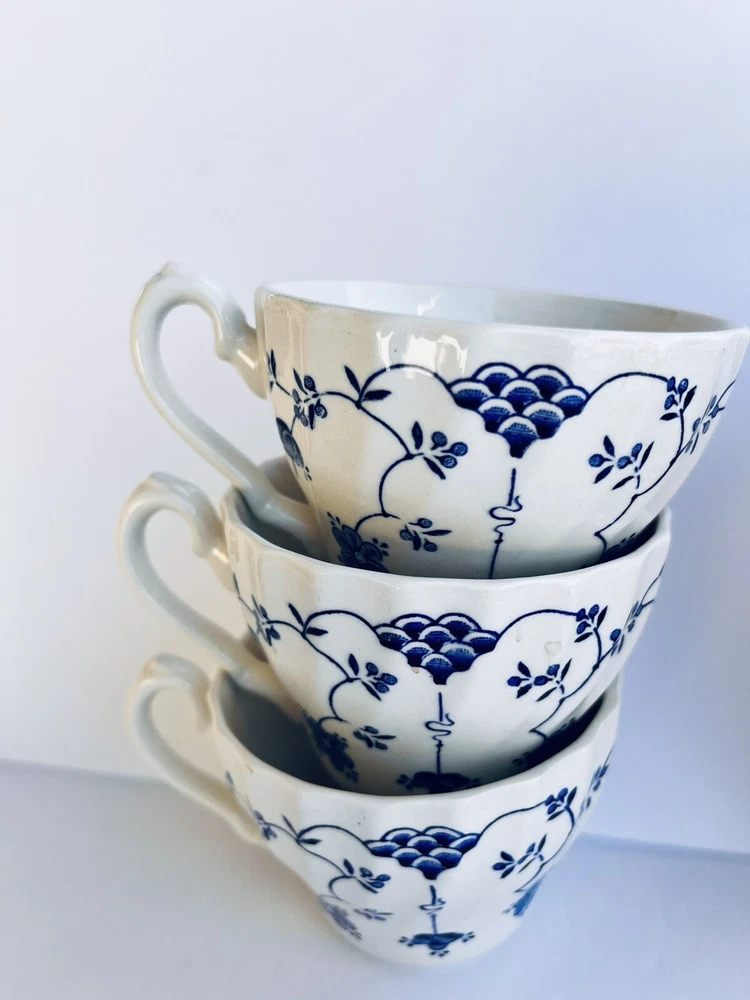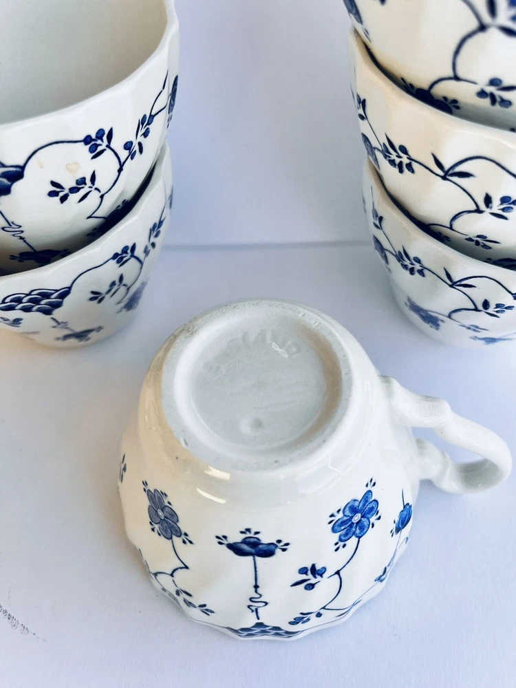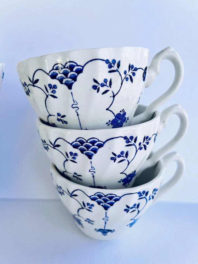 This is a rare set of 6 tea cups and 4 saucer plates, as well as 3 coffee cups, from Churchill England in the Finlandia design. The pieces were manufactured in 1795 and are perfect for collectors or anyone who appreciates fine pottery and glass. The brand is Churchill and the set includes only saucers, with no other accessories. These cups and saucers are perfect for serving tea or coffee to guests in style. The origin of the set is England and it falls under the categories of Pottery & Glass and Decorative Cookware, Dinnerware & Serveware.
