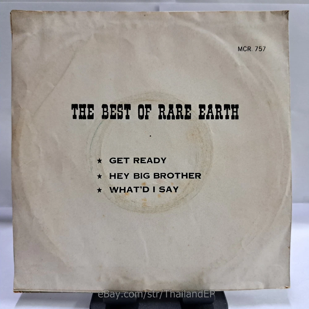 Welcome to The World of ""Thailand Vinyl Records"".Very rare and beutiful picture of cover. Check everyday . This item is for a true 7" single collector. It was printed and sold locally as limited EP back in the early 70's. Only few copies were spread outside Thailand. Most professional record collectors know that it is scarce nowadays and is absolutely a collector's item. If you know a UK magazine called RECORD COLLECTOR then you must have read many articles mentioning THAILAND EP and this is it !!! Here is your chance to own one-of-a-kind piece of Asian's 7" single history. Description Records !!! DETAIL SONG and ARTIST !!! Side A: A1 = Rare Earth - Get Ready / A2 = Rare Earth - Hey Big Brother Side B: B1 = Rare Earth - What'd I Say / B2 = Rare Earth - 0 Label&Catalogue number : : MCR757 Country of release : THAILAND Condition (Sleeve/Disc) : VG+ / VG+ and pls see picture too. Shipping I am seller in Thailand not USA.So I can not ship 4$ as policy pls understand this real rate from oversea . Price for shipping(Airmail )&Packaging to worldwide only US 14.99 USD .Except Asia and JAPAN only 14.99 USD. You can save cost for combine shipping only 3 USD$ per each. 2xEP=17.99 USD$ , 3xEP=20.99 USD$ . My package very safety by big cardboard don't worry about your's EP/PS/LP. Time delivered 21-45 days . ***All item : have tracking system no need add money*** **For normal shipping (Airmail).Time delivery to ITALY maybe use 1-2 Months, France use 1-2 Months.But Don't worry item will arrived to you sure!!.For fastest and High value you can use Express Mail Service cost for1 EP =39 USD.EP will arrived to you within 5-7 Days. ***All shipment have fully tracking system *** Payment PAYMENT : I accept the follow payment by eBay managed , . My ID eBay provide by eBay .Account will be provide at the end auction.Charges to be covered by winner. If you have question pls email to me anytime i can answer immediatly. I have many EP,PS 7" Thailand Pls Click => View seller's other items Check my feedback , I care and honest all customer.I welcome 0 feedback but contact me first if you will bidding. Good Luck !!!! and Enjoy . 45 RPM / EP/ LP Grading Scale: Mint /NM/ Excellent(VG++) /VG+/ VG /G+ /Good(G) / Fair / Poor / Bad (According Record Collector Magazine (UK)) LOT152-33MCR757