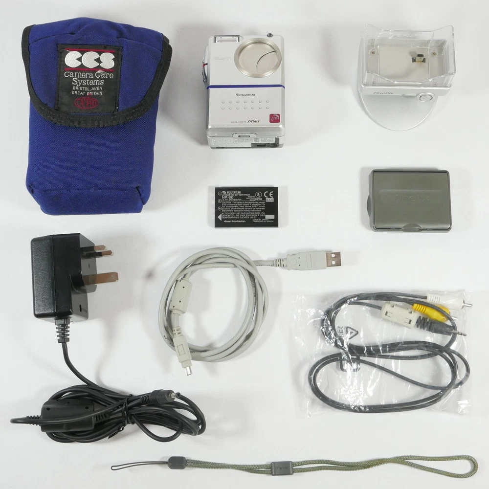 Included Fujifilm Finepix M603 Camera Lithium Battery Video Cable Screen Hood Wrist Strap USB Cable Docking Station Camera Bag Upon purchase I will send the camera boxed and packaged well with bubble wrap. It will be tested again to ensure you receive a fully working item. Condition Sensor has been cleaned. Fully tested for playback and recording. Excellent cosmetic condition. Lens immaculate. A few marks on the camera body - see pictures. Screen has some marks - see photos. Battery life is long lasting. If you are purchasing from a European country I will include an EU compatible plug if I have any available. If you experience any issues with your purchase you are entitled to return your item in accordance with ebays "Money Back Guarantee"