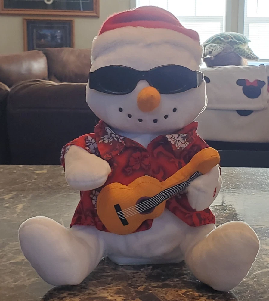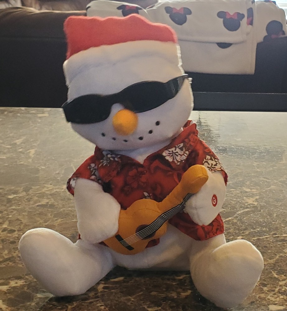 This works perfect with no issues whatsoever..it dances and plays the guitar to the Christmas Vacation song Mele Kalikmaka!! Very clean with no stains on it..any other questions be sure to message me before buying..be sure to check out my other Gemmy collectibles as I bought out a huge collection..all orders are shipped within 24 hours after payment is received This Gemmy Hawaiian Snowman guitar sings the popular Christmas Vacation song, Mele Kalikmaka. It is a rare and unique collectible that is perfect for the holiday season. The snowman design is perfect for those who love winter and Hawaiian themes. The item is made by Gemmy, a well-known brand that specializes in holiday decorations. This Hawaiian Snowman guitar is a great addition to any collection of holiday and seasonal items. It is sure to bring joy and happiness to anyone who hears the song.