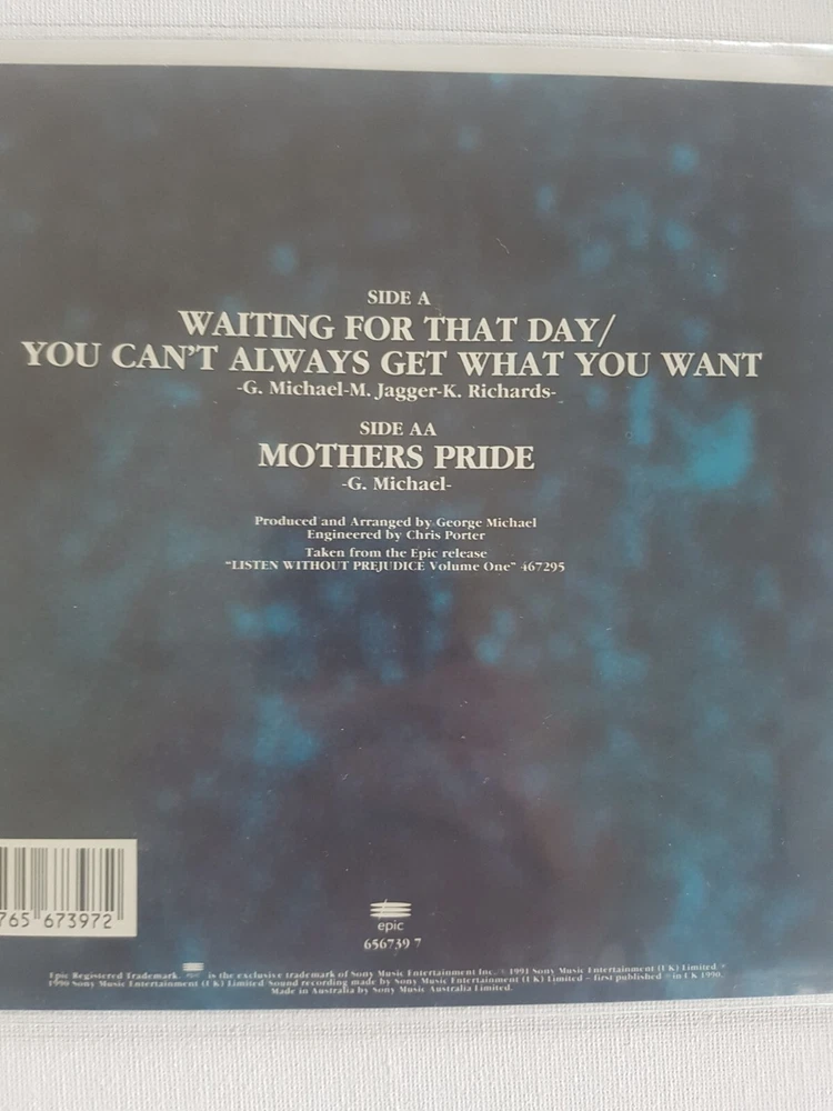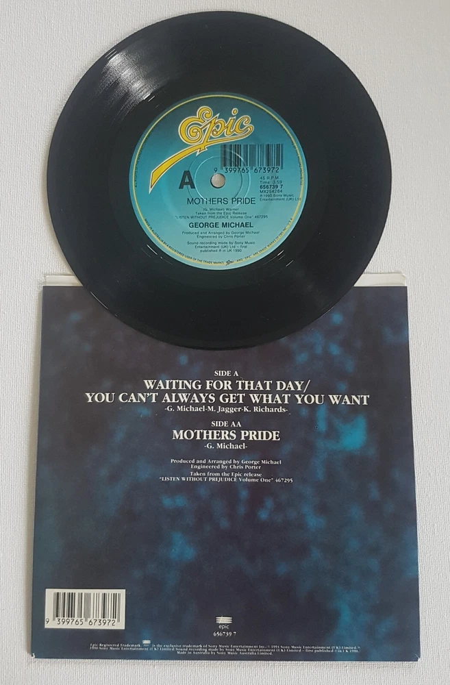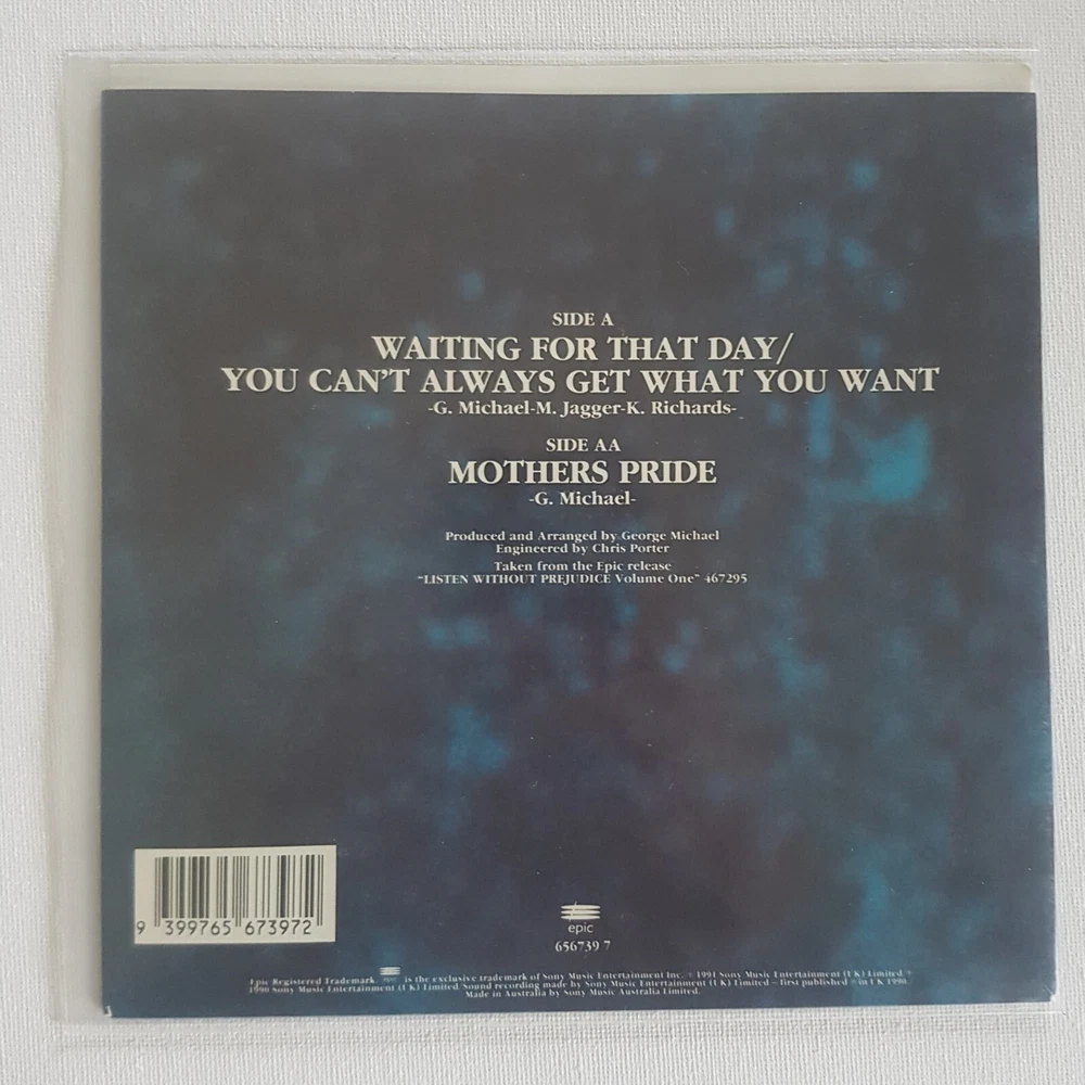 George Michael Waiting For That Day/Mothers Pride Epic-656739 7 7" 45 RPM Single Australia 1990 Vinyl Record Tracklist A Waiting For That Day/You Can't Get What You Want AA Mothers Pride Double "A" Sided Single Media M Mint Sleeve M Mint Please Note Check The Photos Carefully Played only Once Keeping Since 1990 RARE