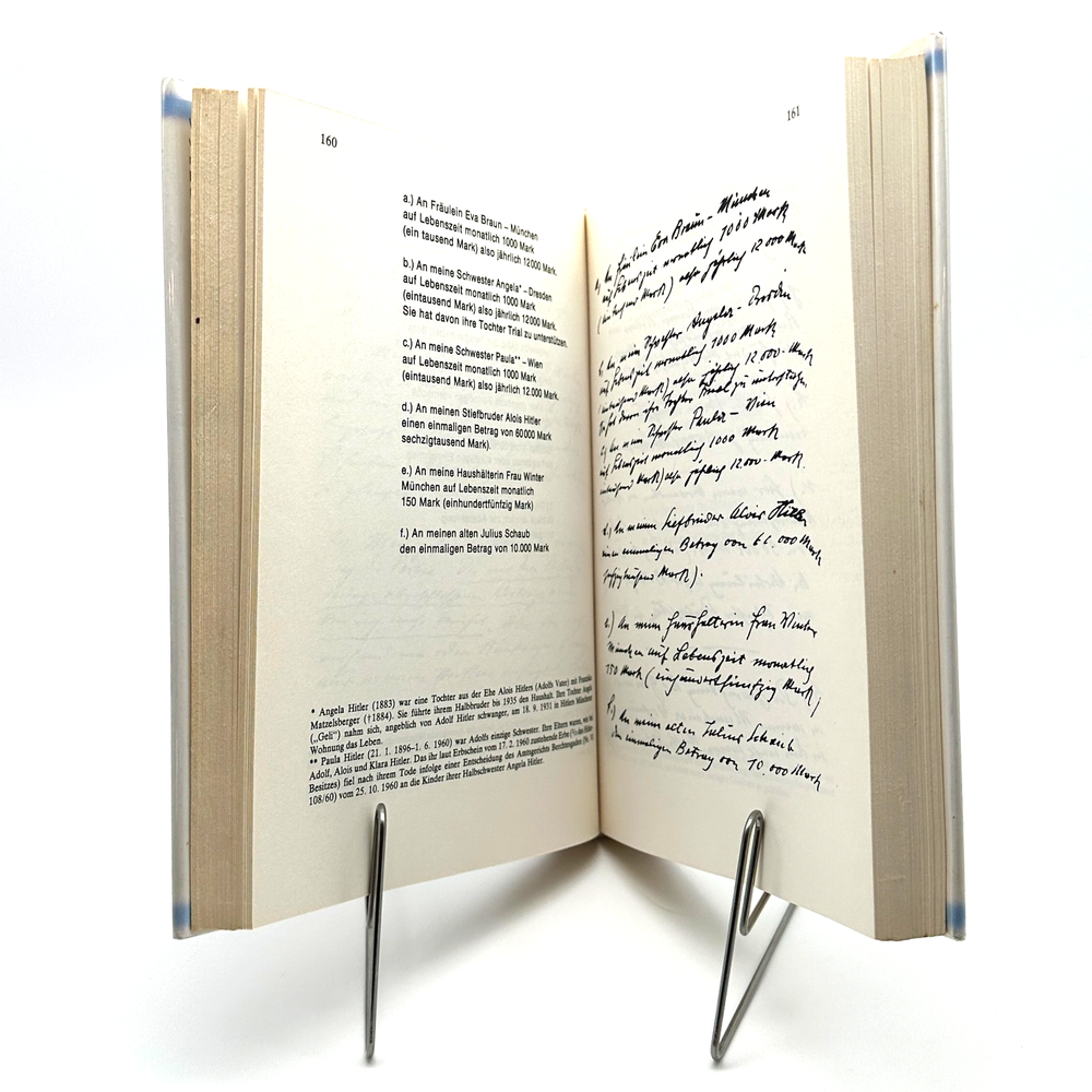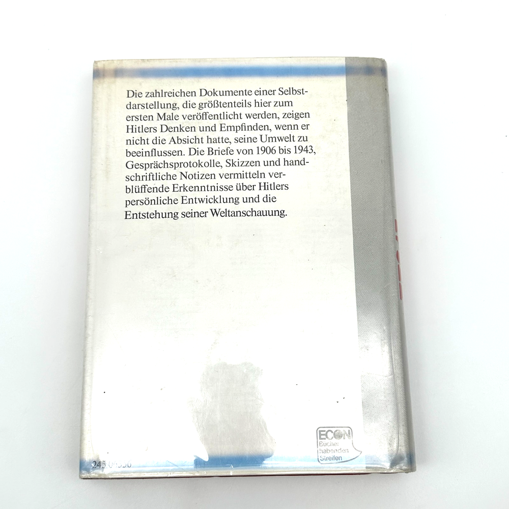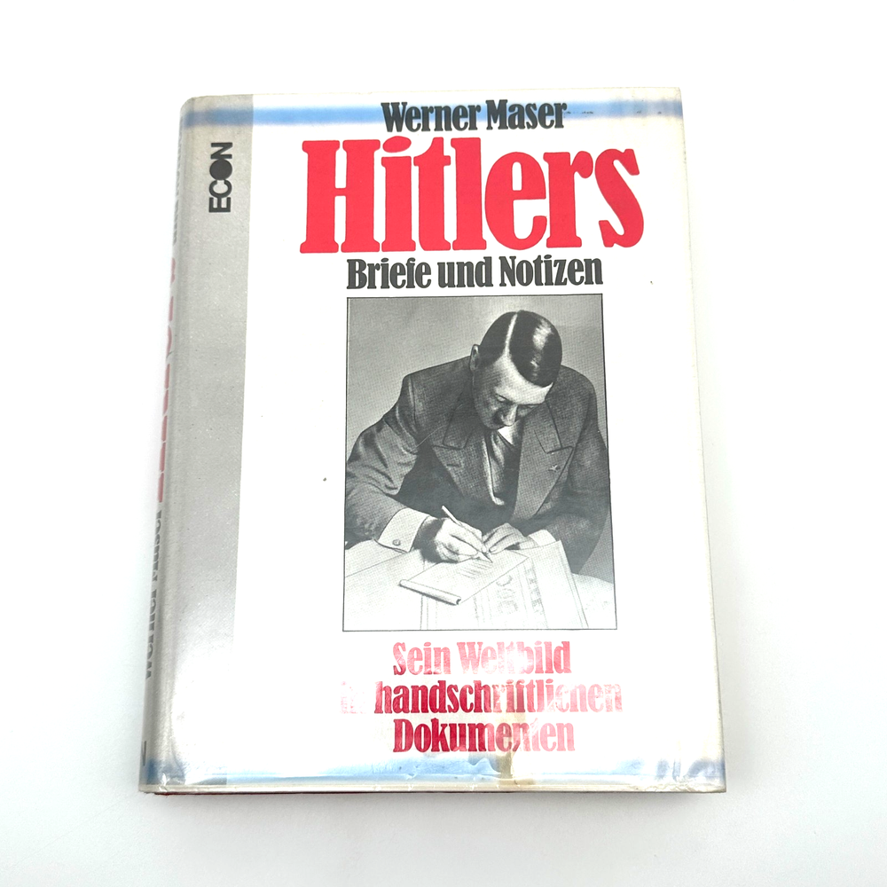 This is the first edition (1973) of Hitlers Briefe und Notizen by Werner Maser, published by Econ Verlag. Written in German, this important volume presents Adolf Hitler’s personal letters, notes, and documents from 1906 to 1943, providing a unique look into his private thoughts and the formation of his worldview. The book includes facsimile reproductions of Hitler’s handwritten notes alongside transcriptions and commentary, making it a highly valuable resource for historians and collectors of World War II materials.