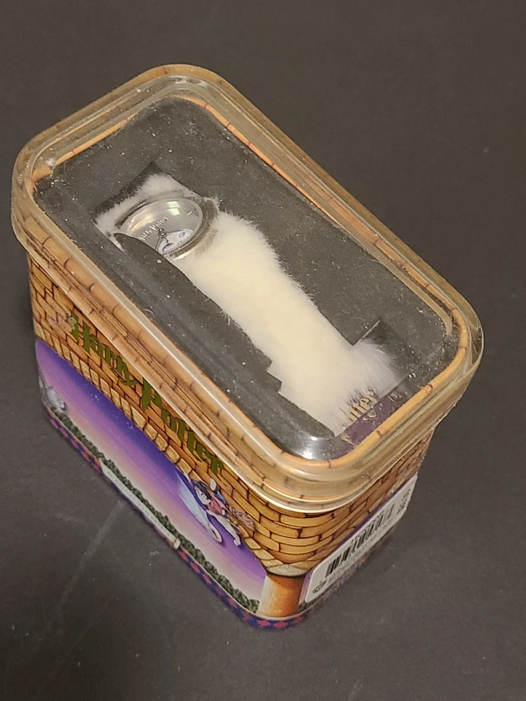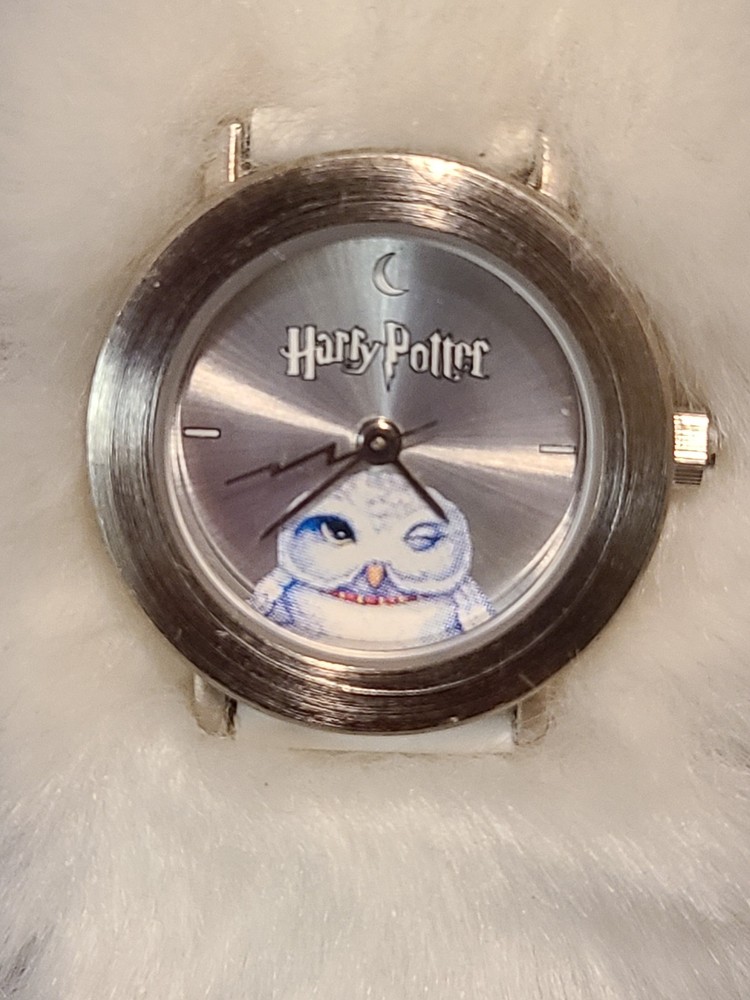 This is a beautiful and rare Harry Potter Hedwig watch model that is very hard to find anymore, model HC0007. These were manufactured in 2001, and finding one in NEW condition is nearly impossible! Don't miss out on this incredible opportunity. This is a licensed Warner Brothers watch model, not a counterfeit or cheap copy, and one of the most unique and sought-after Harry Potter timepieces ever produced by SII! The face is a reflective dial with Warner Brothers artist Fred Bode's picture of Hedwig winking cheekily out at you. The second hand is shaped like a lightning bolt. The band has a stunning white faux fur outside and a comfortable sueded interior that makes wearing it a pleasure. It's soft and silky to the touch, and has an adjustable snap closure. This model comes with its original Harry Potter reusable collectible tin "brick" case that most of the original models were packaged in. These watches were produced as a joint venture between Fossil and SII/Lorus. The watch is mint with a new battery professionally placed and running strong. Our items are thoroughly photographed and have a new battery professionally placed. Many of the original SII watches have been languishing in someone's closet for 25 years. Bands deteriorate, batteries die and can leak acid, there is band and case discoloration on many of them and you wouldn't know about it until you opened it after buying. We never ship items in that condition. And while many do not allow returns, shop with us and returns are a breeze! Protect yourself and your money! You work hard for your dollars, don't give them away to just anybody. We have been trusted eBay sellers for almost 25 YEARS and our feedback reflects the high level of customer satisfaction you can expect from us! Read your auctions carefully before bidding. We NEVER ship out watches that aren't running or need batteries (unless stated otherwise in ad, such as with a vintage watch or one sealed in original packaging). And all of our items are official merchandise from the licensed manufacturer, not cheap knock-offs. Please note that all pictures and ad content are COPYRIGHT and may not be used without permission. We have a generous return policy! When you buy from someone listing a watch that "just needs a battery" or sold "as is", check their return policy! If you receive an item that is not working you will be stuck with a non-working watch. Our watches have a new battery professionally placed before shipping, unless the item is still in original packaging and needs a battery. SMOKE-FREE ENVIRONMENT 9