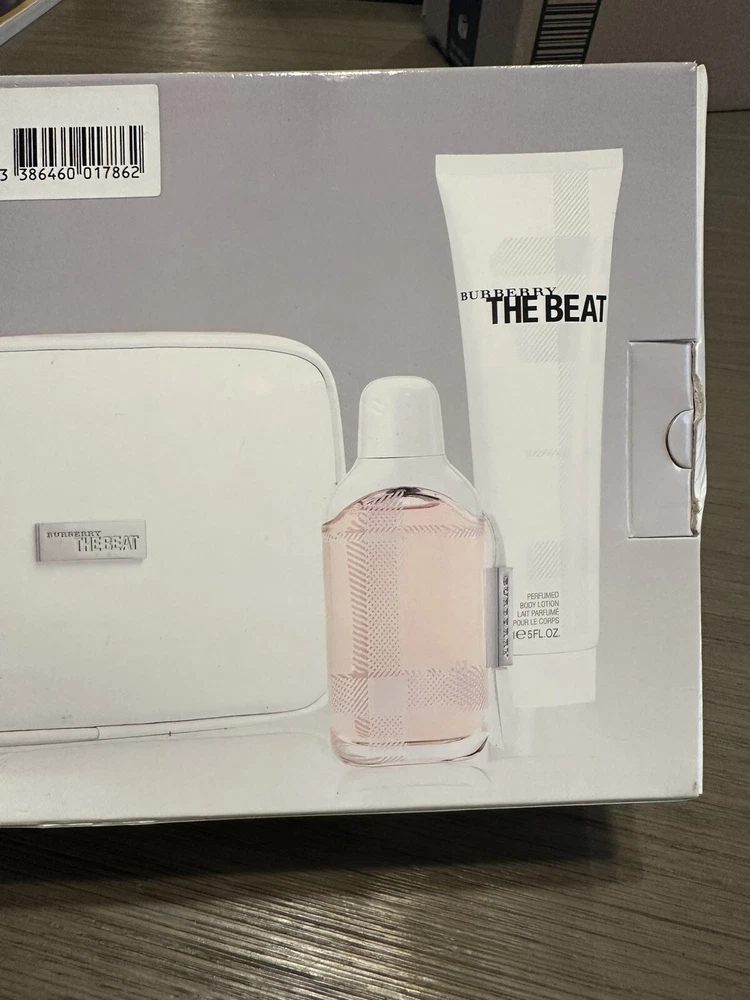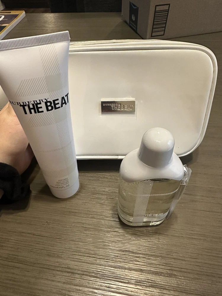Rare HTF Burberry “The Beat” Gift Set 2.5 Fl Oz Spray, Body Lotion & Bag!. Extremely rare / hard to find Please read below before bidding Items shown in photos are exact items buyer will be receiving Includes: 2.5 Fl oz “The Beat” Natural Spray 5 Fl Oz “The Beat” body lotion Makeup/cosmetic bag Outer box has cosmetic flaws (as seen) Products are all new Products do not have expiration dates on them. I do know know if/when they expire. But they all smell good & not spoiled to me! No returns will be accepted for this item. Bid with confidence