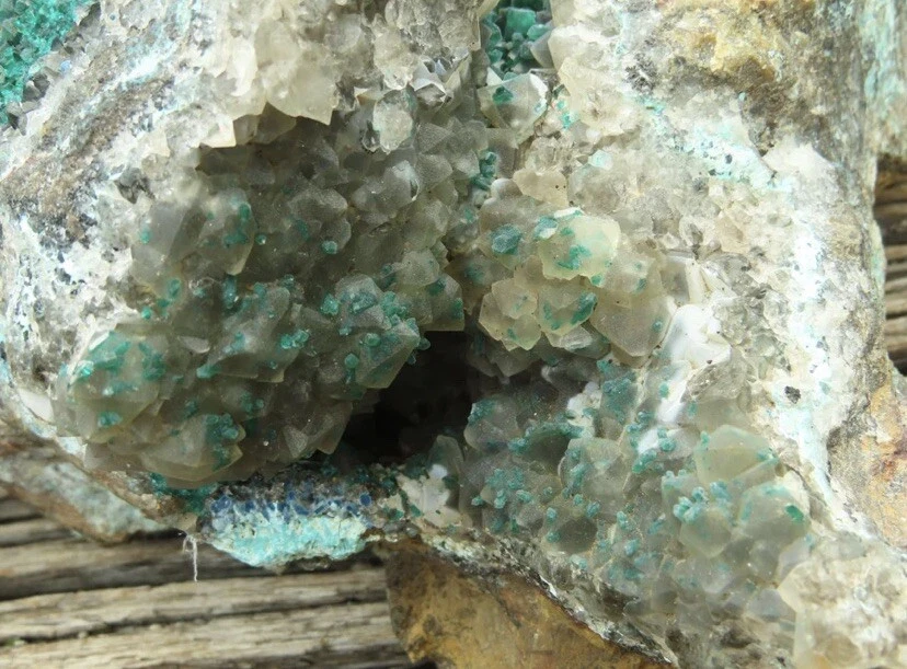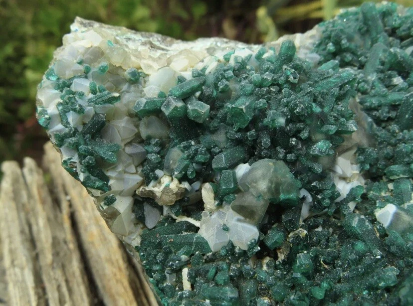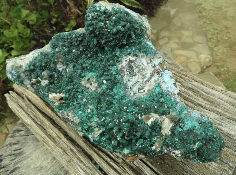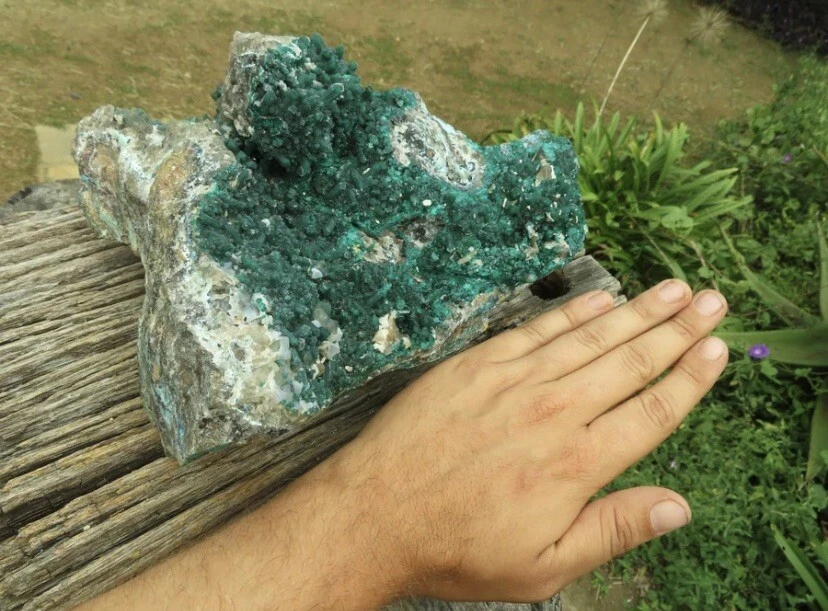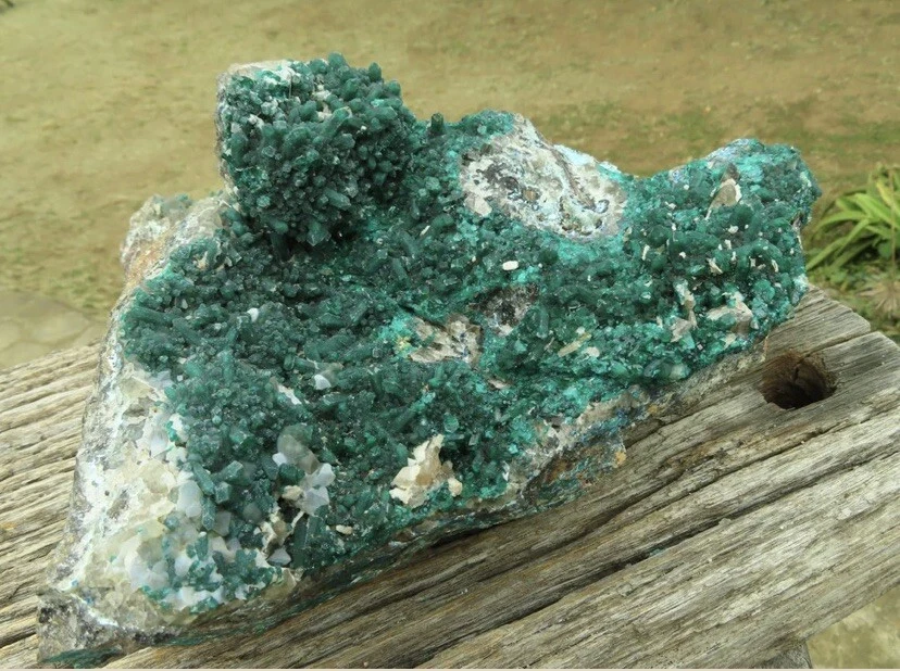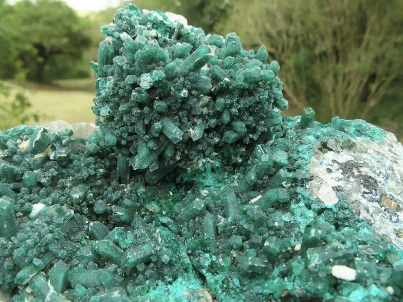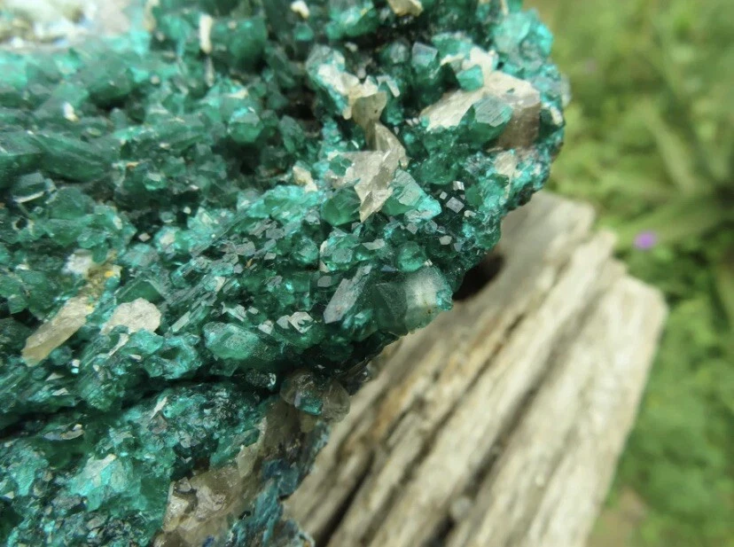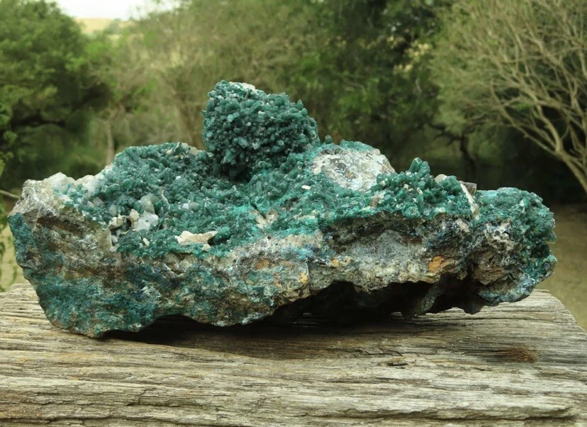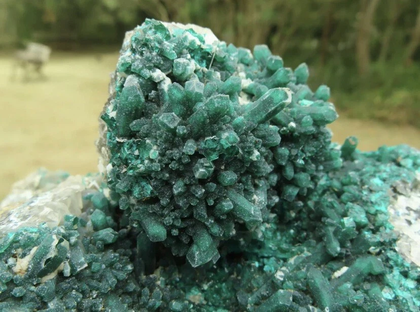 RARE High Quality Dioptase Mineral. Locality = Congo Grade = Very Good to A Grade Size = 148 x 214 x 292 mm | 5.8 x 8.4 x 11.5 inch Net Weight = 5.9 Kg | 13.1 Lbs ****PLEASE NOTE: Shipping will be longer due to our minerals being shipped directly from our mining team in Africa. Please allow extra time for your rate high quality specimen to arrive! Drusy coated emerald green crystals up to 12mm on Shattuckite & Dolomite matrix! Dioptase is an exceptionally rare mineral species. Dioptase is world renowned for its bright emerald green crystals. The crystals often form in glistening drusy/sugary, classic cubic, or the rare prismatic forms. DIOPTASE FROM CONGO Brazzaville in 2019 yielded some of the best Museum quality gemmy crystalline Dioptase specimens seen in many decades. A handful of the specimens were associated with bright gemmy yellow Mimetite crystals and / or botryoidal hollow domes of Dioptase. This was a small pocket which only yielded a handful of specimens. Subsequently, material from Tantara started to appear around 2020. However, the two deposits are fundamentally different. The crystals from Tantara tend to be less gemmy but still breath-taking bright emerald green! They range from microcrystalline drusy style, to much larger more distinctive cubic crystals in complex and dense clusters. One thing both of these deposits (Brazzaville & Tantara) had in common was the sheer size of the specimens mined. Rule of thumb with dioptase from anywhere in the world, in that, you're lucky to own a small one. Tantara has certainly produced some of the largest crystalline dioptase specimens known from Africa in the last 35 years. Specimens from this mine are even bigger than anything which came out of Tsumeb, Namibia. More collector and museum grade specimens of Dioptase have been found in Africa in the last five years than in the previous two decades, and potentially kg for kg......in the history of dioptase mining in Southern Africa. ****PLEASE NOTE: Shipping will be longer due to our minerals being shipped directly from our mining team in Africa. Please allow extra time for your rate high quality specimen to arrive!