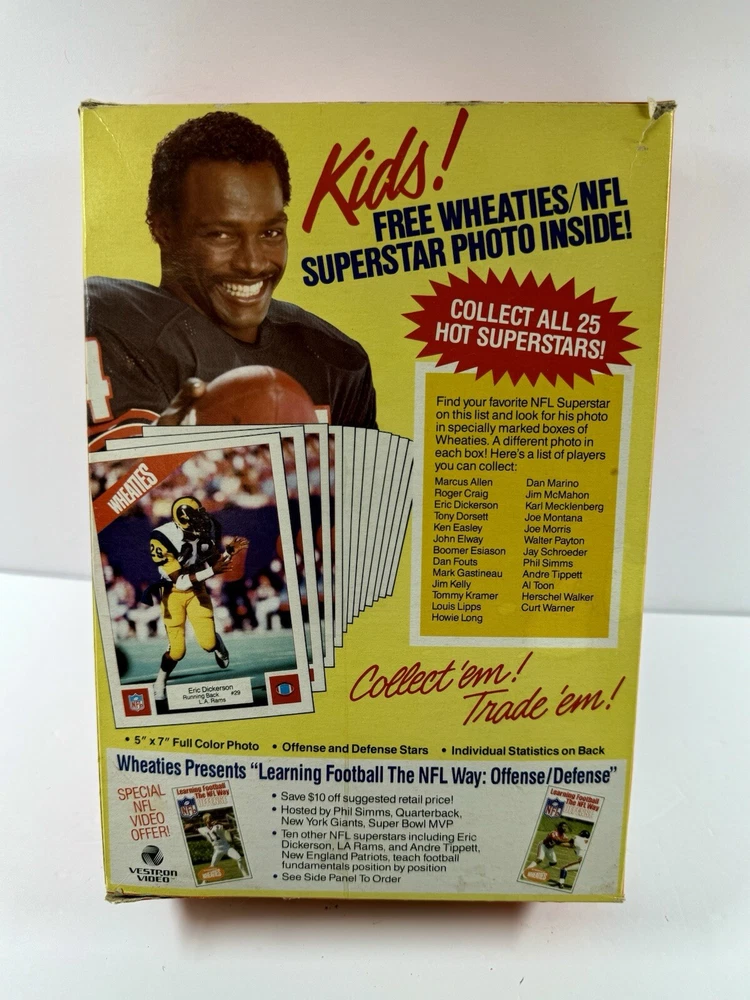 This is a rare and valuable vintage sports memorabilia item for all Chicago Bears and Walter Payton fans out there. This 1988 Wheaties box features the legendary running back in his prime and is a must-have addition to any collection. The box is in its original and sealed condition, making it a great find for collectors who appreciate the value of rare and unique items. Not only is this box an original and vintage piece, but it also represents a great team and player. The Chicago Bears were a dominant force in the NFL during the 1980s, and Walter Payton was a key player who made significant contributions to the team's success. This Wheaties box is a great way to commemorate their legacy and add some nostalgia to any collection.