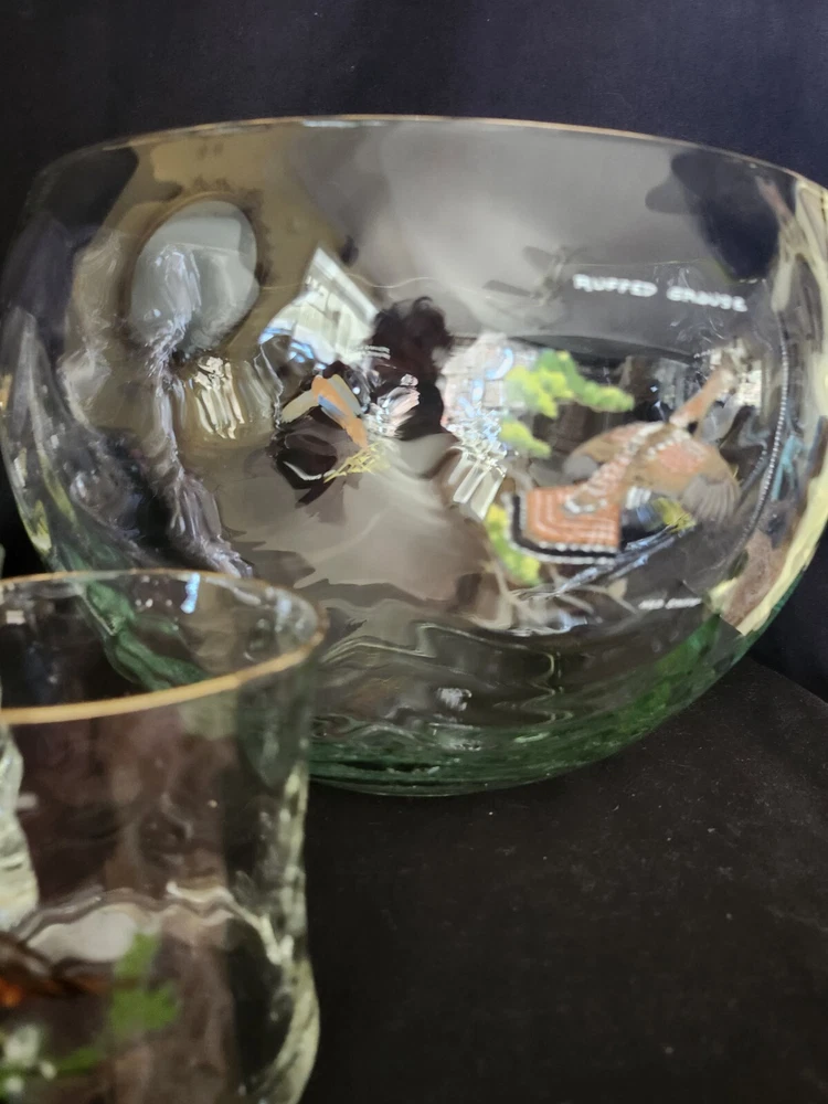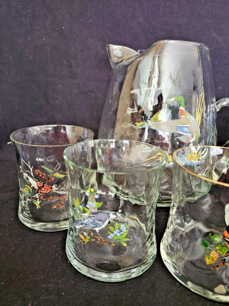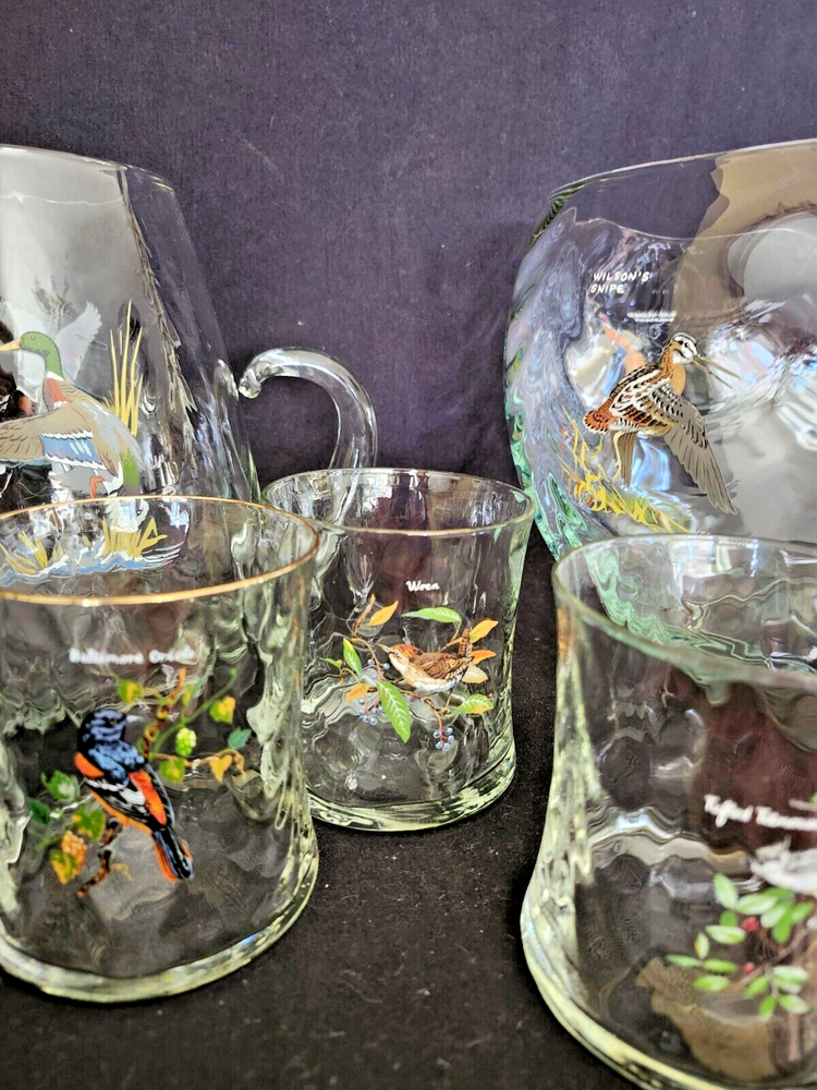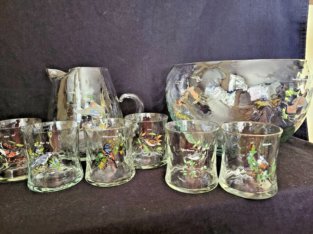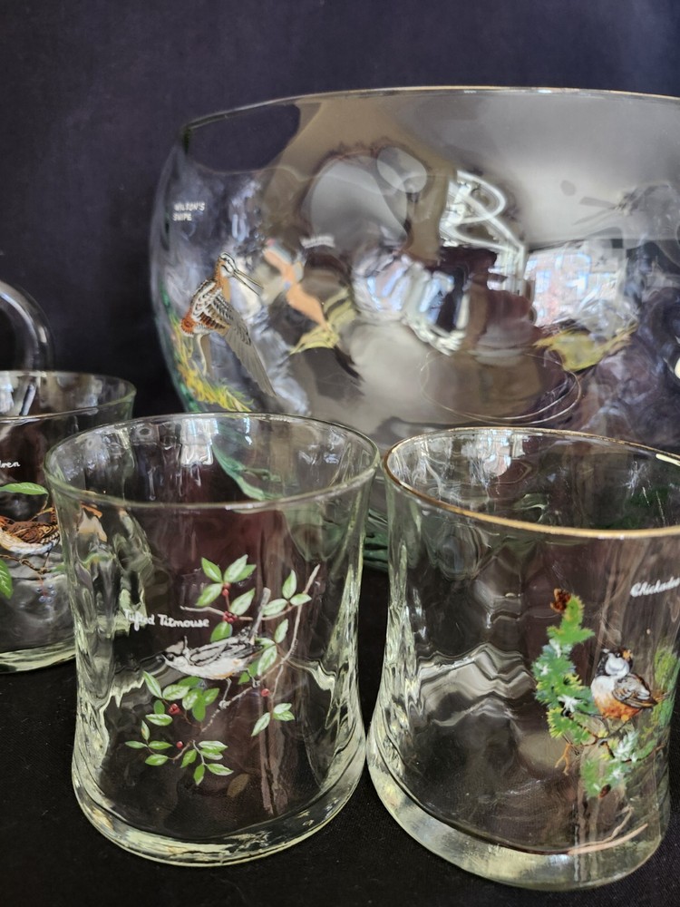 Vintage, Ned Smith Water Fowl PUNCH BOWL, Chip bowl, etc...and SIX 22K Gold Trimmed Glasses, plus a great looking matching Pitcher. All items are in great condition. Not sure they were ever used. No reserve.