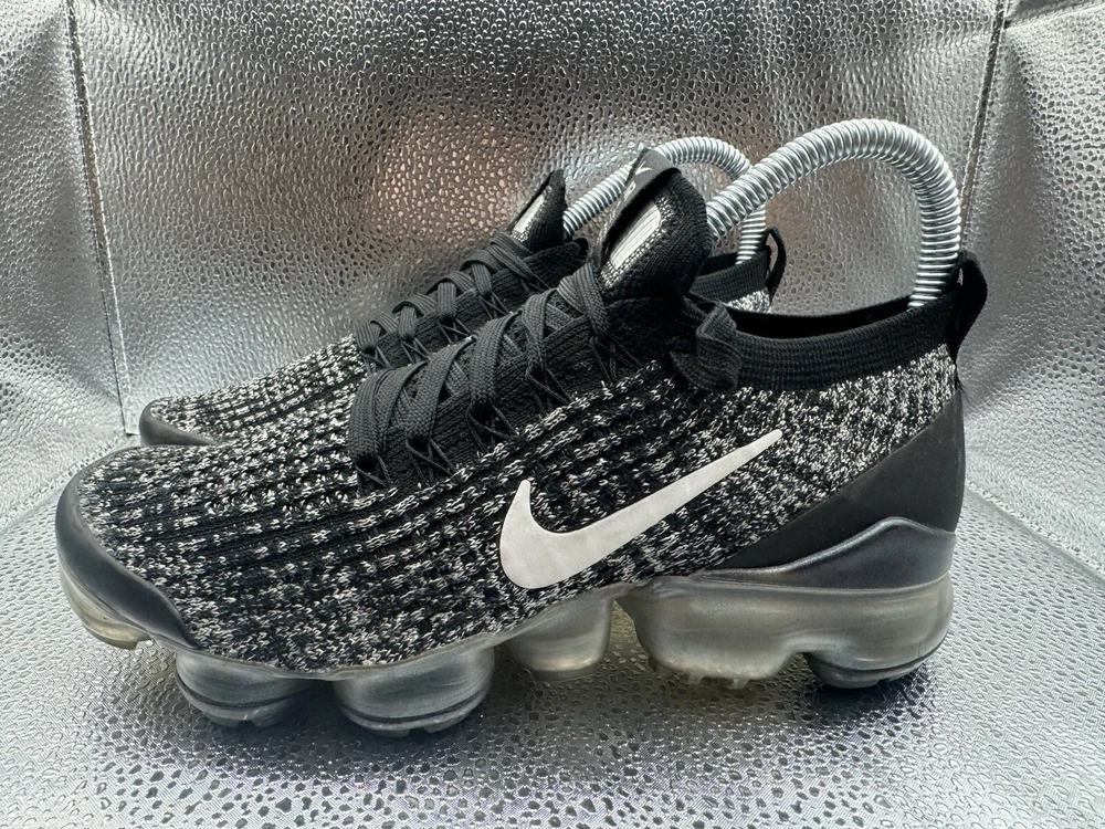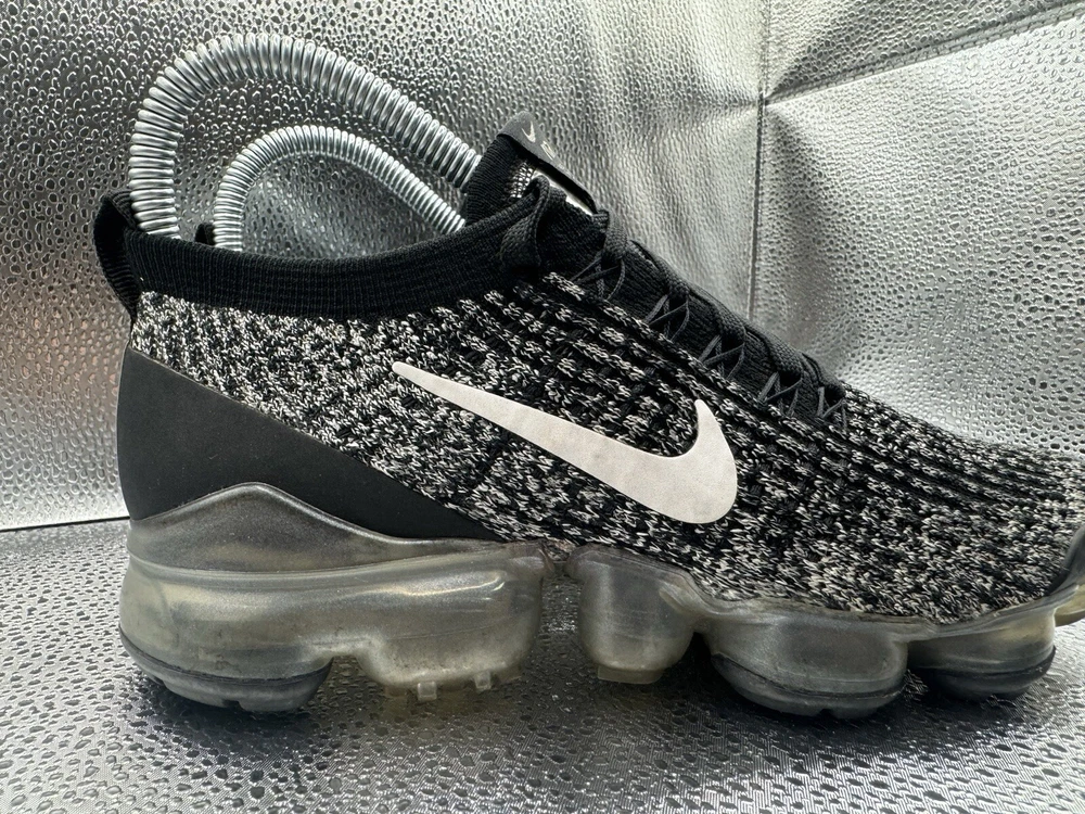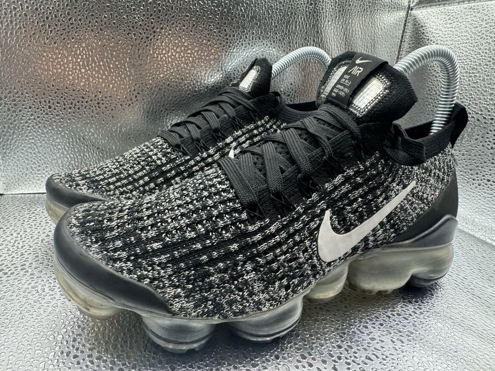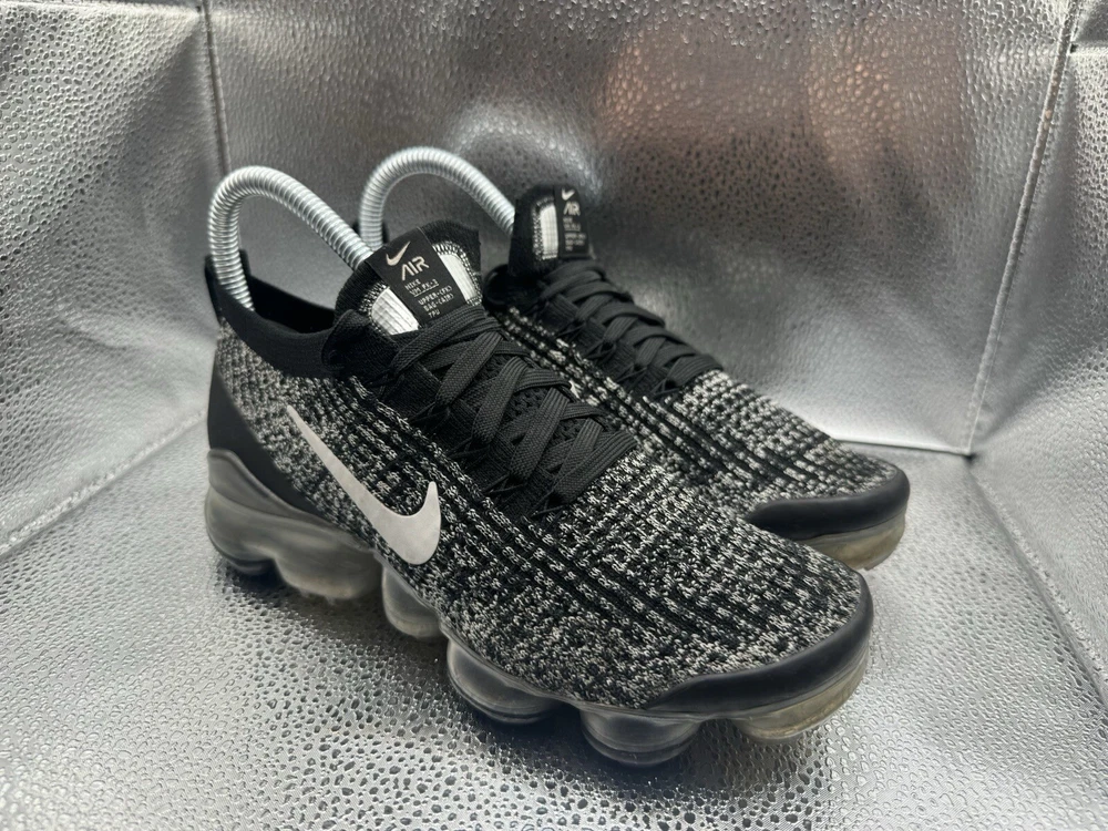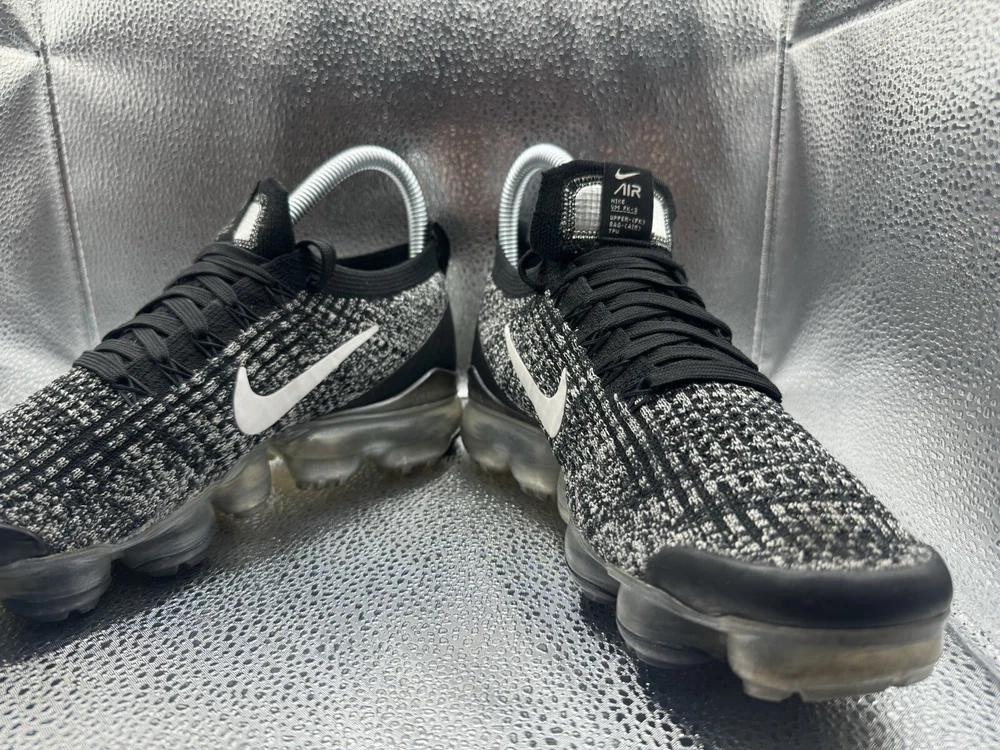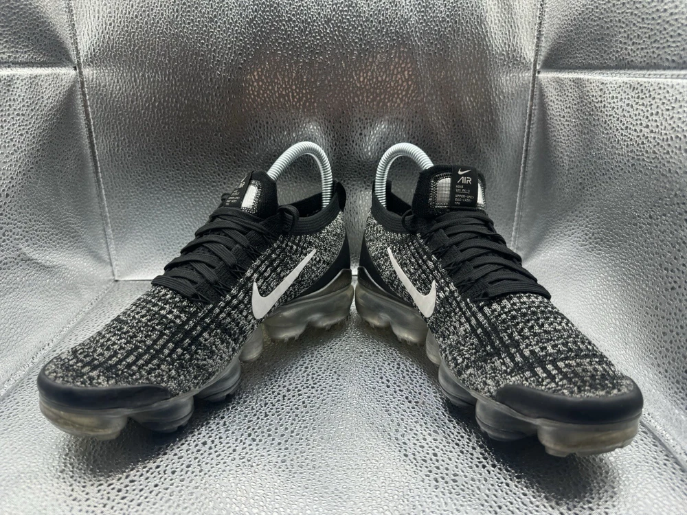 Step up your sneaker game with these Nike Air VaporMax Flyknit 3 Oreo 2019 sneakers. With a low top shoe shaft style and lace-up closure, these sneakers are perfect for any occasion, whether it's activewear, casual wear, or workwear. The black Flyknit upper material is both breathable and comfortable, making these sneakers ideal for any season. These athletic sneakers feature cushioning and are part of the Nike Air VaporMax product line, ensuring that they are both stylish and functional. The AJ6910-001 style code and 2019 release year add to the uniqueness of these sneakers. Don't miss out on the opportunity to add these rare Nike Air VaporMax Flyknit 3 Oreo sneakers to your collection.