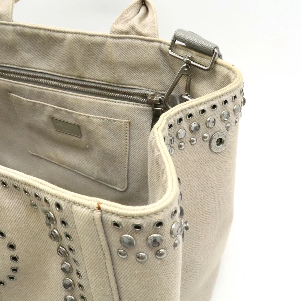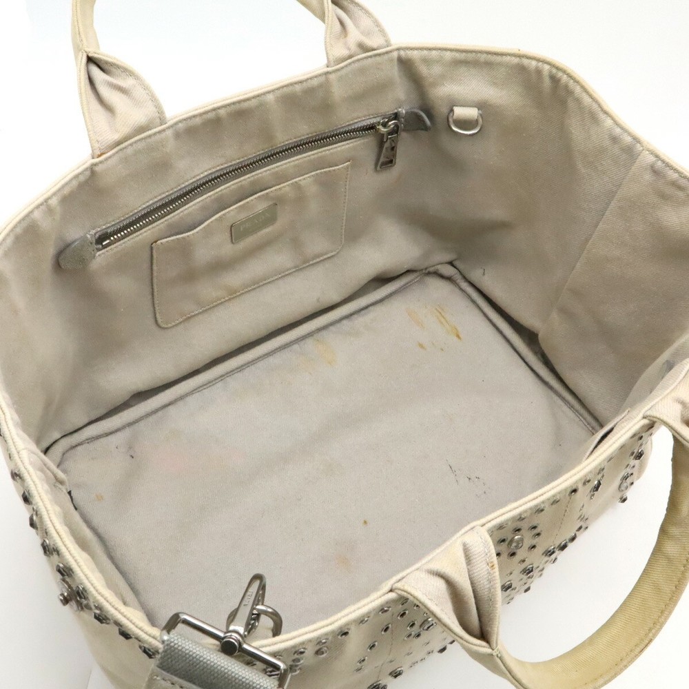 Love this Prada tote! The light gray canvas with bijou studs is stylish yet versatile—perfect for everyday wear or a night out. The quality is amazing, and it’s definitely authentic. Super rare find, so glad I grabbed it before it sold out! Shipping was fast, and the seller was super responsive. Highly recommend!