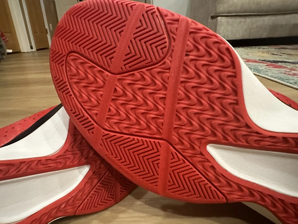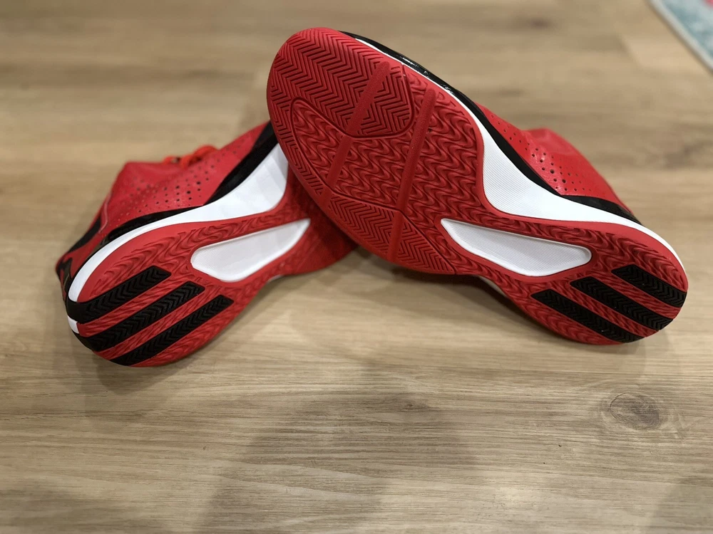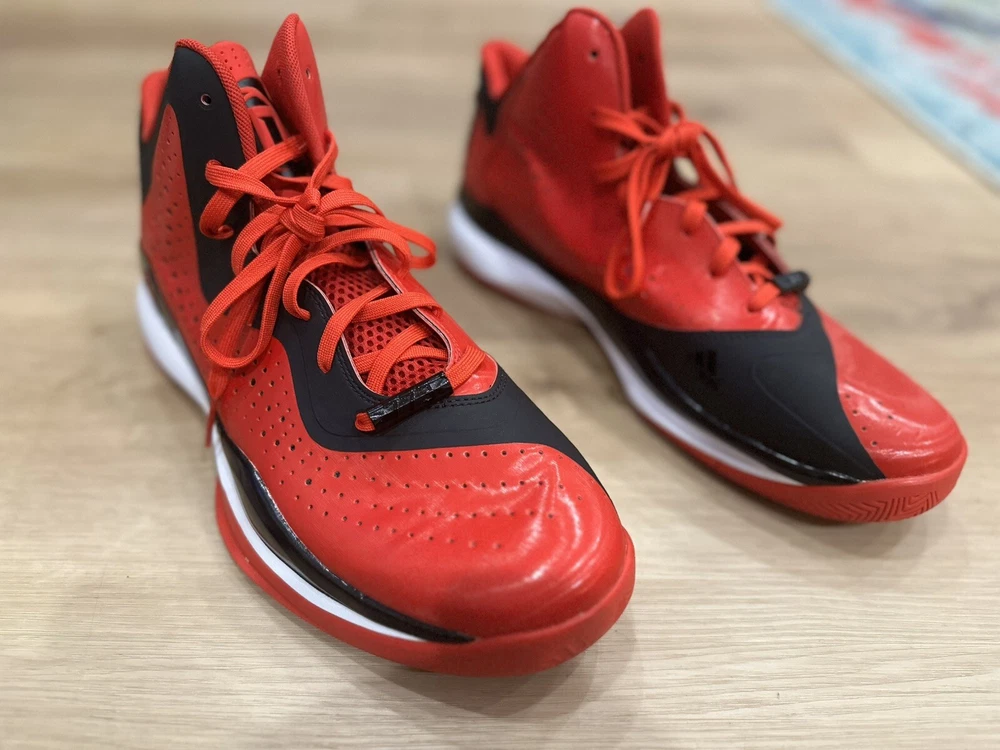 Elevate your game with the rare adidas D Rose 773 III basketball shoes, a blend of performance and style. Featuring a striking red and black colorway, these mid-top sneakers are designed for athletes who demand both function and fashion. The size 13 shoes cater to a comfortable fit with maximum cushioning, ensuring that every step on the court is as confident as the last. Crafted with a durable leather upper and fabric lining, the shoes promise breathability and adjustable comfort for all-day wear, whether you're training or just out and about. The robust rubber outsole provides excellent traction across seasons, making these shoes a versatile choice for basketball, running, or any high-intensity activity. The iconic adidas logo accents and solid pattern reflect the signature look of the Chicago Bulls' star Derrick Rose.
