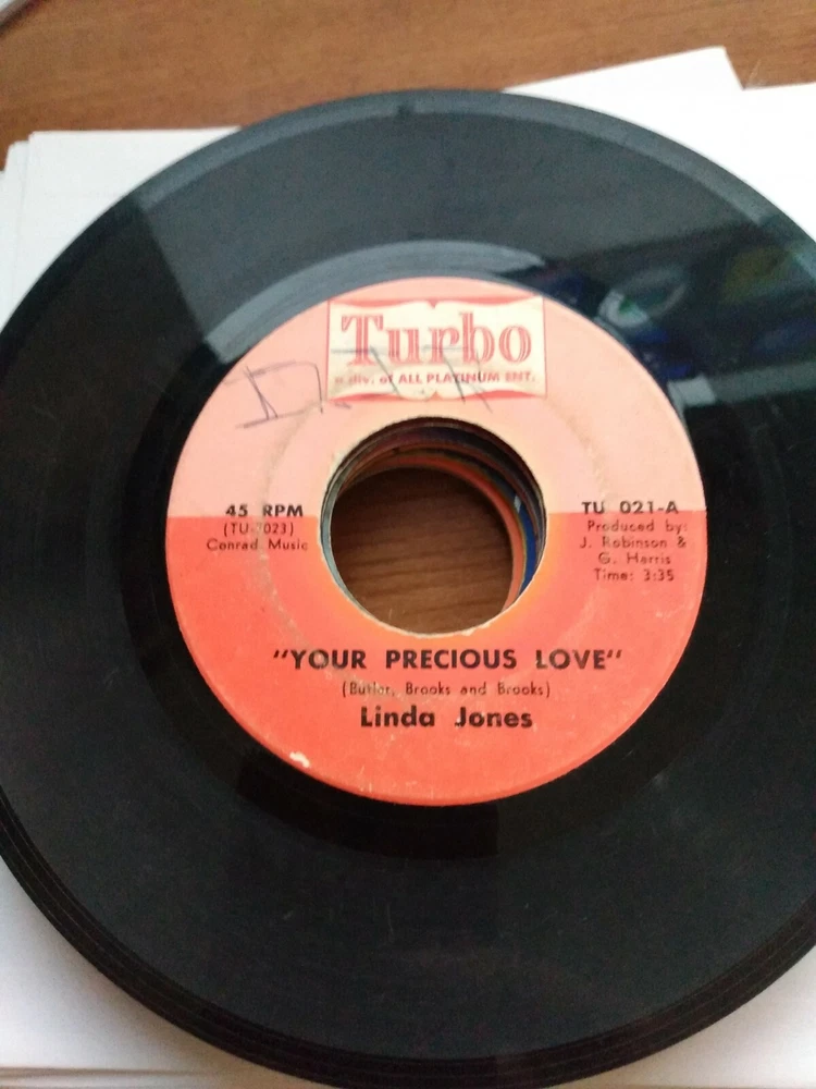 This rare 7" vinyl record features the soulful music of Linda Jones, with the hit songs "your precious love" and "Don't Go". Produced by Turbo Records, this single is a must-have for collectors of vinyl and soul music. The record grading is VG and the speed is 45 RPM, making it a great addition to any music lover's collection. The format is a traditional record and the release title is "your precious love / blank". This item is perfect for those who appreciate the classic sounds of soul music and want to add a unique piece to their collection.