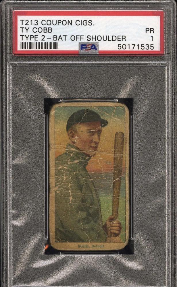 RARE T-213 TY COBB Coupon Cigs Type 2 Bat Off Shoulder PSA PR 1. Condition is Graded. Shipped with USPS Ground Advantage.
