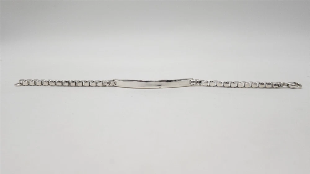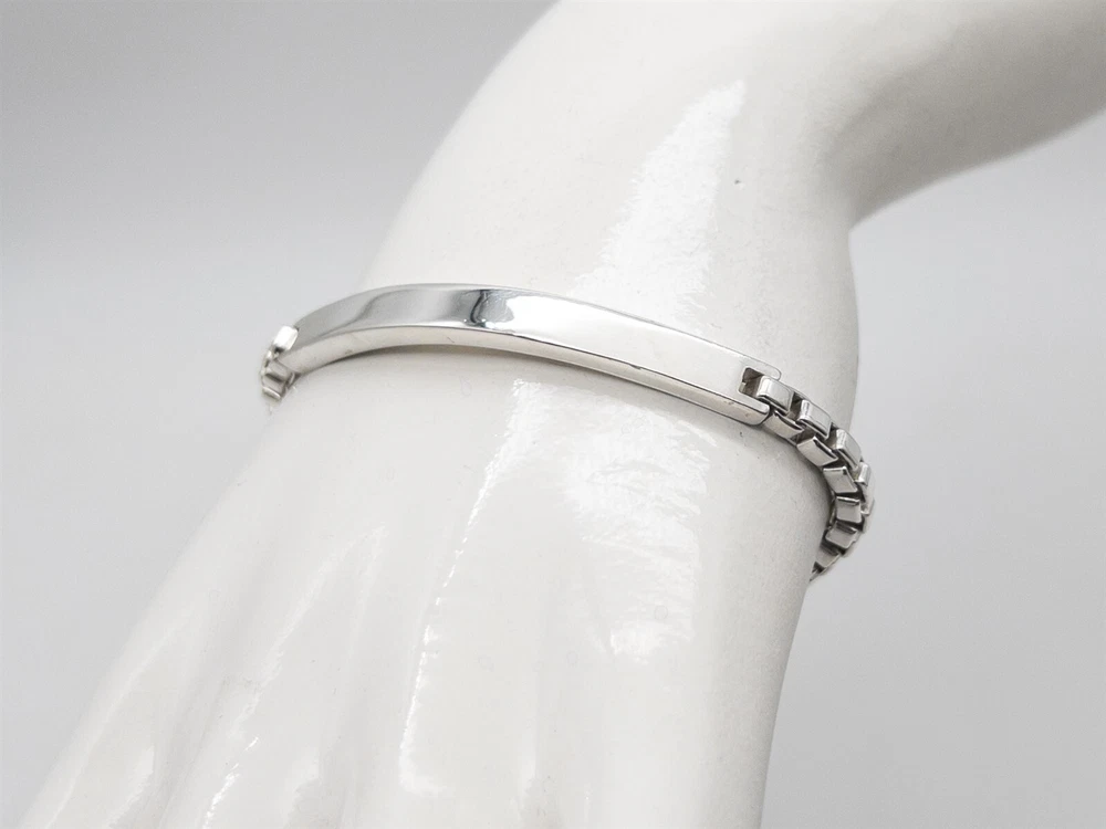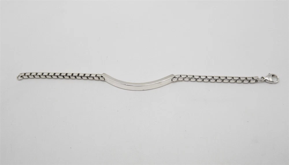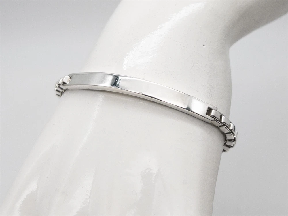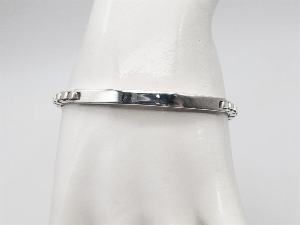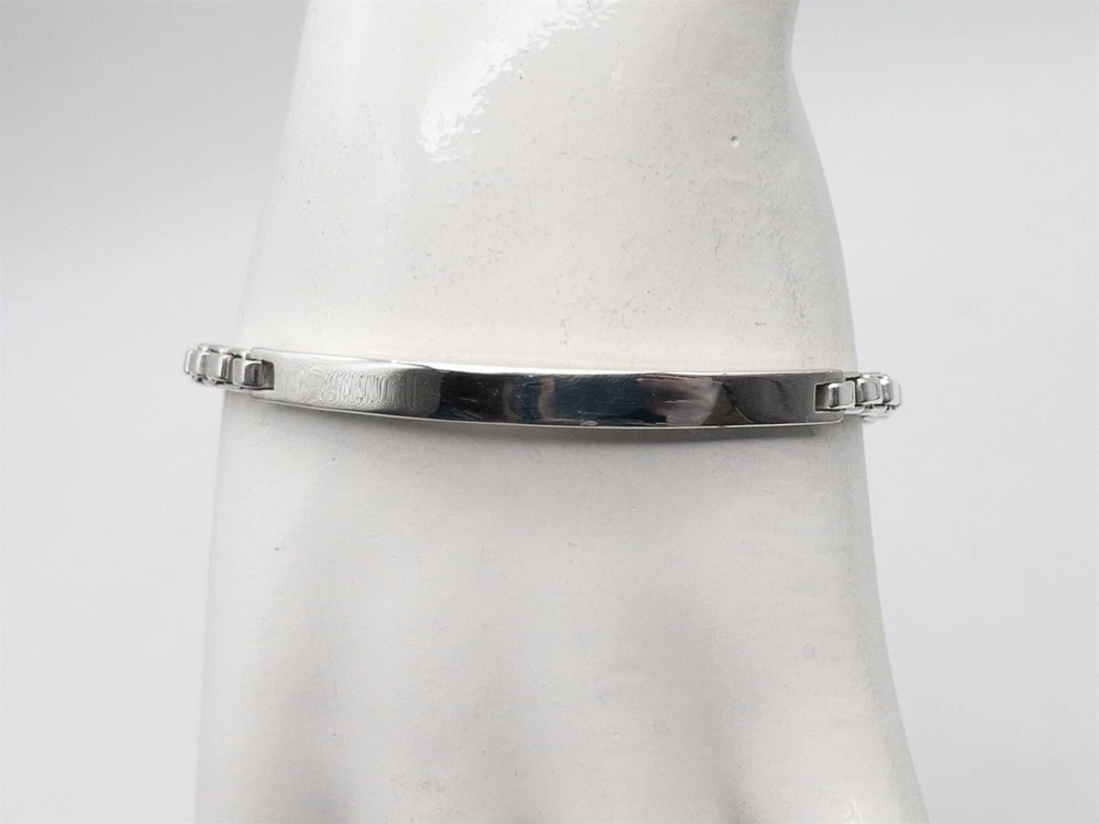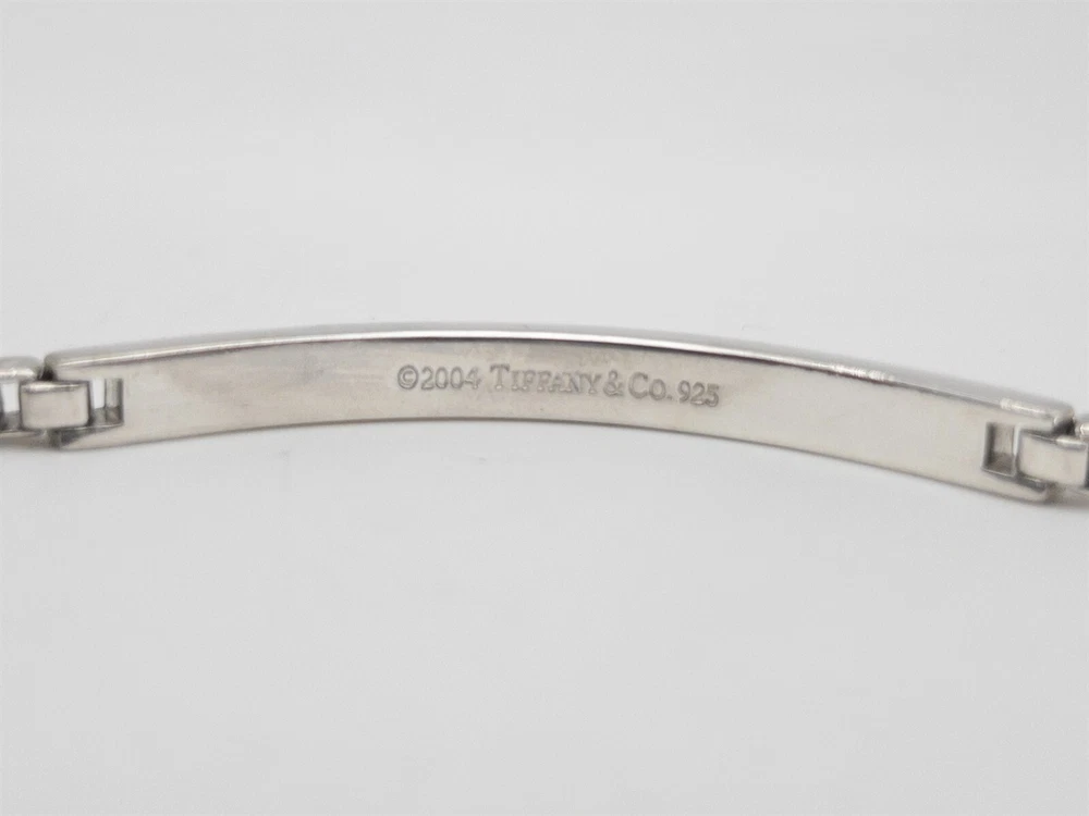 Description: Tiffany & Co ID BRACELET or BAR BRACELET...you could write your name on this or keep it as is. Cool piece and rare find. NICE looking bracelet and 7.5 inches long. WOW!!! Stone: NONE Metal: Sterling Silver Length: 7.5 in Gram Weight: 19.5 Powered by SixBit's eCommerce Solution