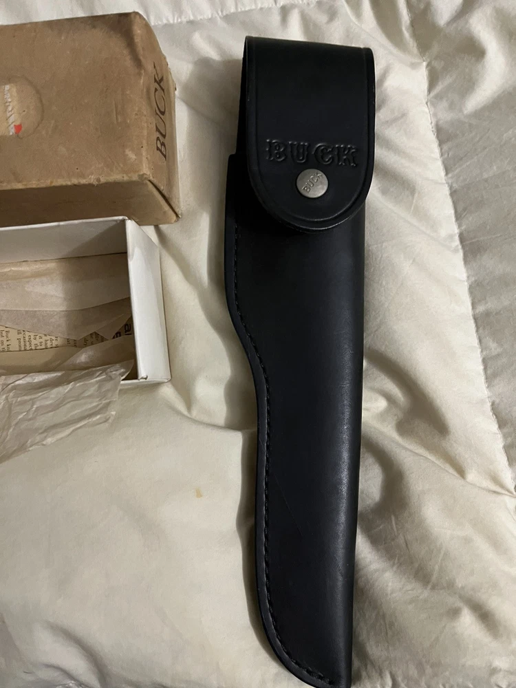 This is a rare vintage Buck USA Model #120 Special fixed blade knife with a stainless steel clip point blade over 5 inches long. It features a half tang, ambidextrous dexterity, and comes with a sheath. The handle is made of phenolic, and it is an original USA-made piece. The knife is brand new in box. Dust included.