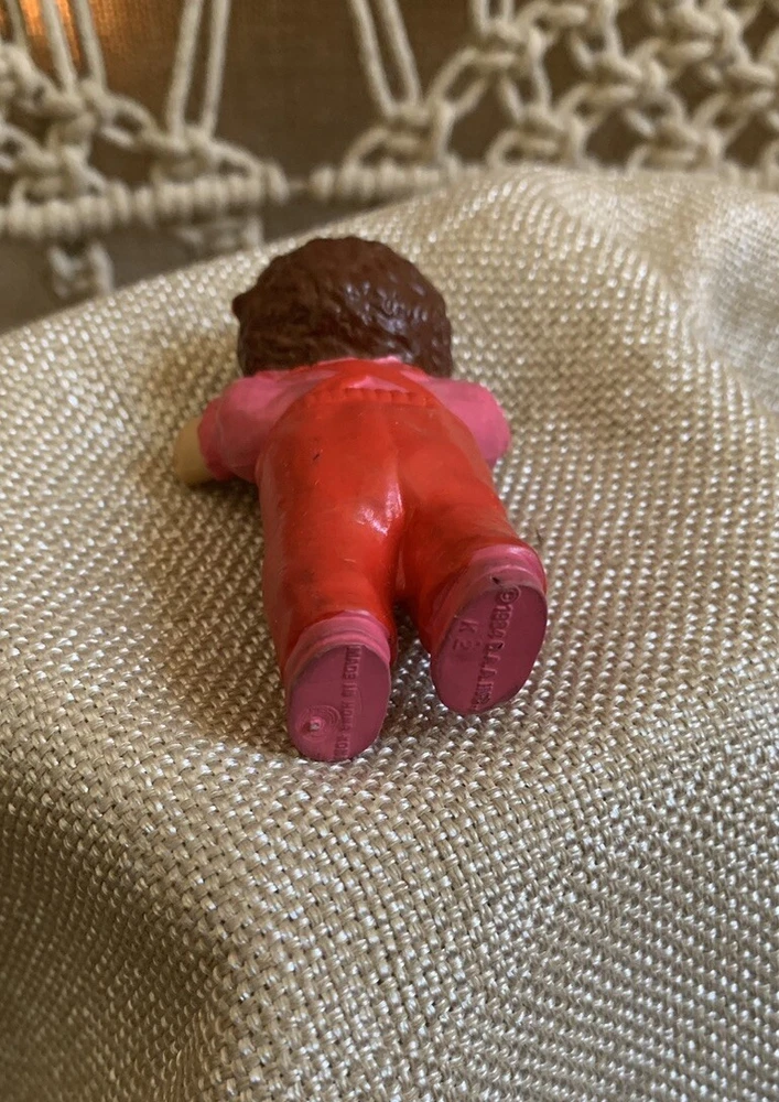 Doll Age Group: Unisex Baby & Toddler, Youth Unit of Sale: Single Unit Franchise: Cabbage Patch Dolls Handmade: No gtin13: Does not apply Number of Pieces: 1 Product Line: Cabbage Patch Dolls Type: Figure Set Includes: Figures MPN: Unknown Doll Complexion: Light Original/Licensed Reproduction: Original Occasion: All Occasions Doll Gender: Girl Doll Time Period Manufactured: 1980-1989 Country/Region of Manufacture: Hong Kong Character: Unknown Doll Hair Type: Curly Year Manufactured: 1984 Ethnicity: Multiracial Packaging: Without Packaging Age Level: 3-4 Years Doll Eye Color: Brown Vintage: Yes Brand: Cabbage Patch Kids Doll Size: 3 in Doll Hair Color: Brown UPC: Does not apply Material: Plastic, PVC Antique: No