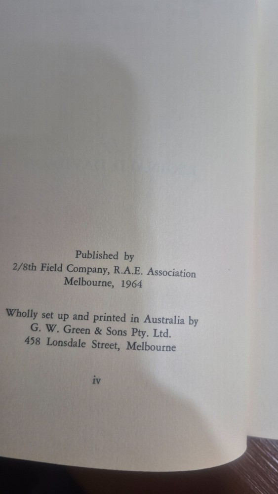 The book describes the history of the 8th Field Company of the Royal Australian Engineers during World War II. The publication includes rolls of honor and embarkation lists of personnel. This extremely rare book was published in a limited edition by the unit's veterans association in 1964. This edition is extremely rare on public marketplaces. The book is in pristine condition. It sat in its packaging for 62 years and has never been opened. The original packaging is also preserved in perfect condition.