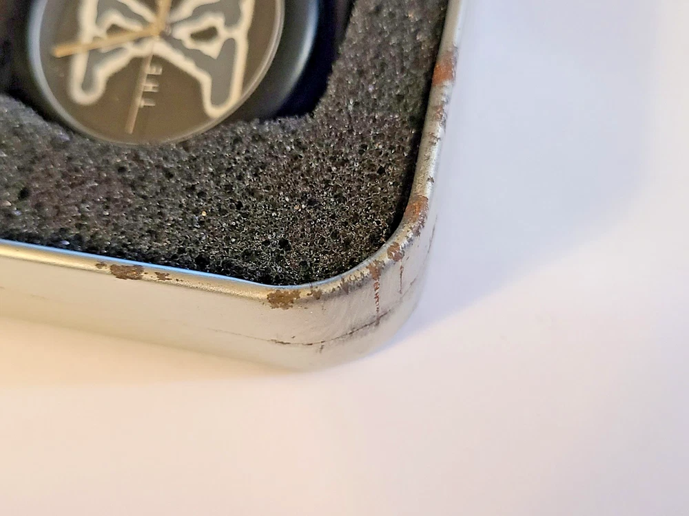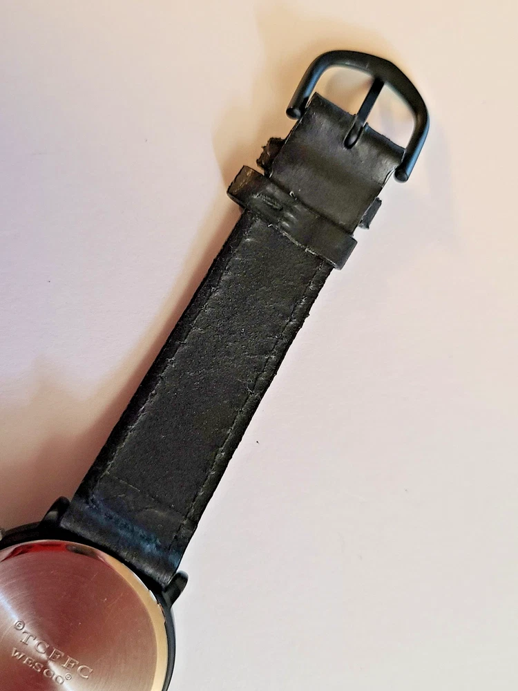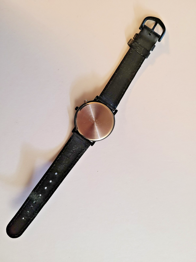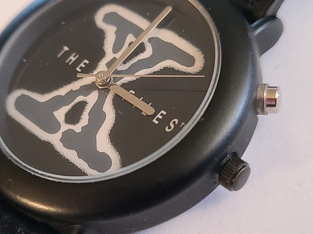 Here's another fabulous collector's timepiece for character watch fans ~ an original X-Files glow-in-the-dark watch from Wesco, manufactured in the United Kingdom in 1995 and official licensed merchandise for 20th Century Fox. This is a highly sought after collector's item that is almost impossible to find in this excellent condition. This is the original E.L. (Electro-Luminescence) watch that lights up the X-Files logo on the watch face with a cool blue glow! Running strong with a new battery professionally placed. This beauty ships in its original X-Files Wesco tin with papers. FREE SHIPPING! Watch measures 9" from end to end. 1-3/8" wide watch case. Stainless steel caseback. Black dial with The X-Files logo in dial center; logo glows when E.L. is activated. Black crown and steel light activation button. Black leather strap. Ships in original case with papers. Excellent condition, running strong. I can see some white dots when I take closeups of the watch face but couldn't see them with the naked eye. They might be dots of color loss on the black dial as they show up in all the pictures. Protect yourself and your money! You work hard for your dollars, don't give them away to just anybody. We have been trusted eBay sellers for almost 25 YEARS and our feedback reflects the high level of customer satisfaction you can expect from us! We do not use AI for anything in our ads, including text or pictures. Read your auctions carefully before bidding. We NEVER ship out watches that aren't running or need batteries (unless stated otherwise in ad, such as with a vintage watch or one sealed in original packaging). And all of our items are official merchandise from the licensed manufacturer, not cheap knock-offs. Please note that all pictures and ad content are COPYRIGHT and may not be used without permission. We have a generous return policy! When you buy from someone listing a watch that "just needs a battery" or sold "as is", check their return policy! If you receive an item that is not working you will be stuck with a non-working watch. Our watches have a new battery professionally placed before shipping, unless the item is still in original packaging and needs a battery. SMOKE-FREE ENVIRONMENT