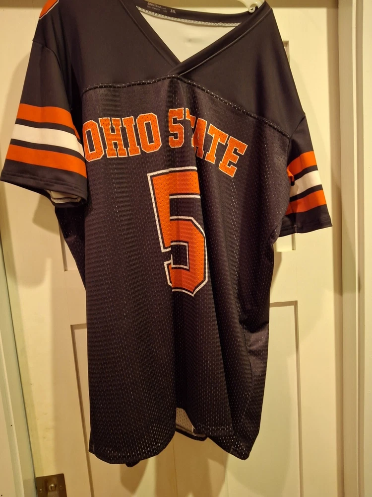 Show your Buckeyes pride with this rare Dallan Hayden Ohio State Buckeyes jersey. The red mesh jersey is perfect for any football fan, whether you're watching the game at home or cheering on your team at the stadium. The unisex adult jersey is made with high-quality materials and features the Ohio State Buckeyes team logo. This jersey is a must-have for any fan of the Buckeyes, and it's perfect for game day or everyday wear. The 3XL size fits most fans comfortably, and the red color is sure to make a statement. Don't miss out on the chance to own this rare and unique piece of Buckeyes memorabilia.