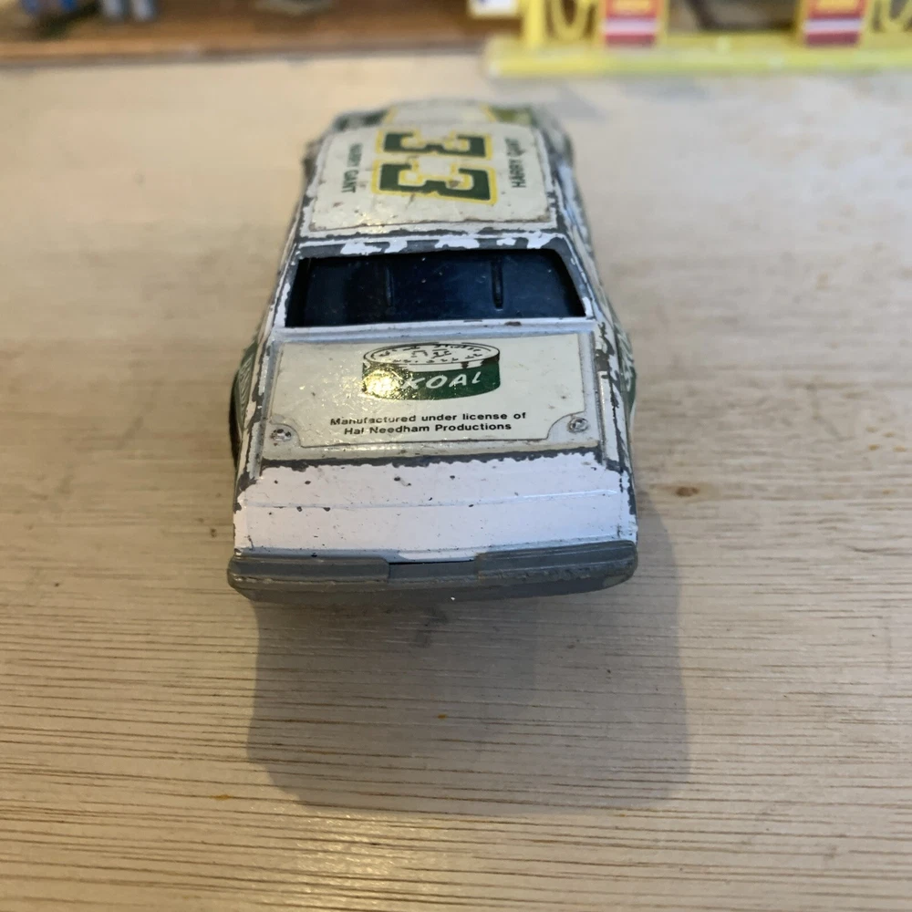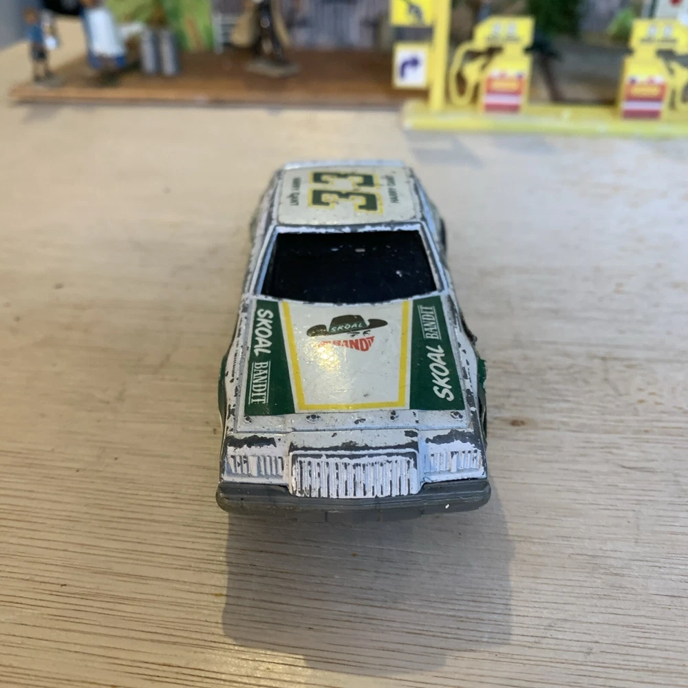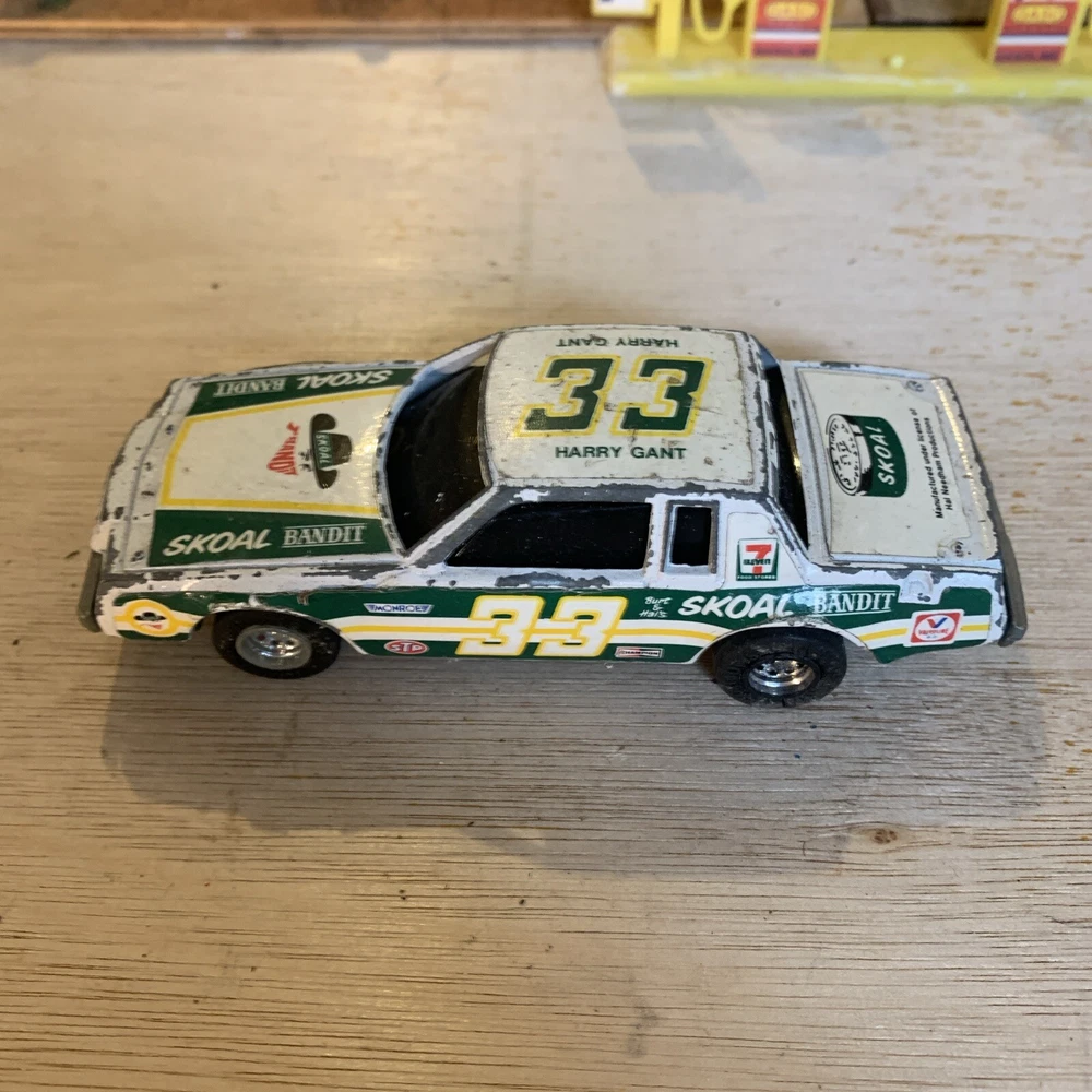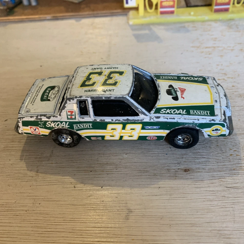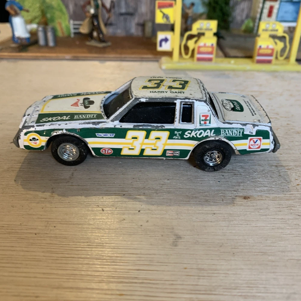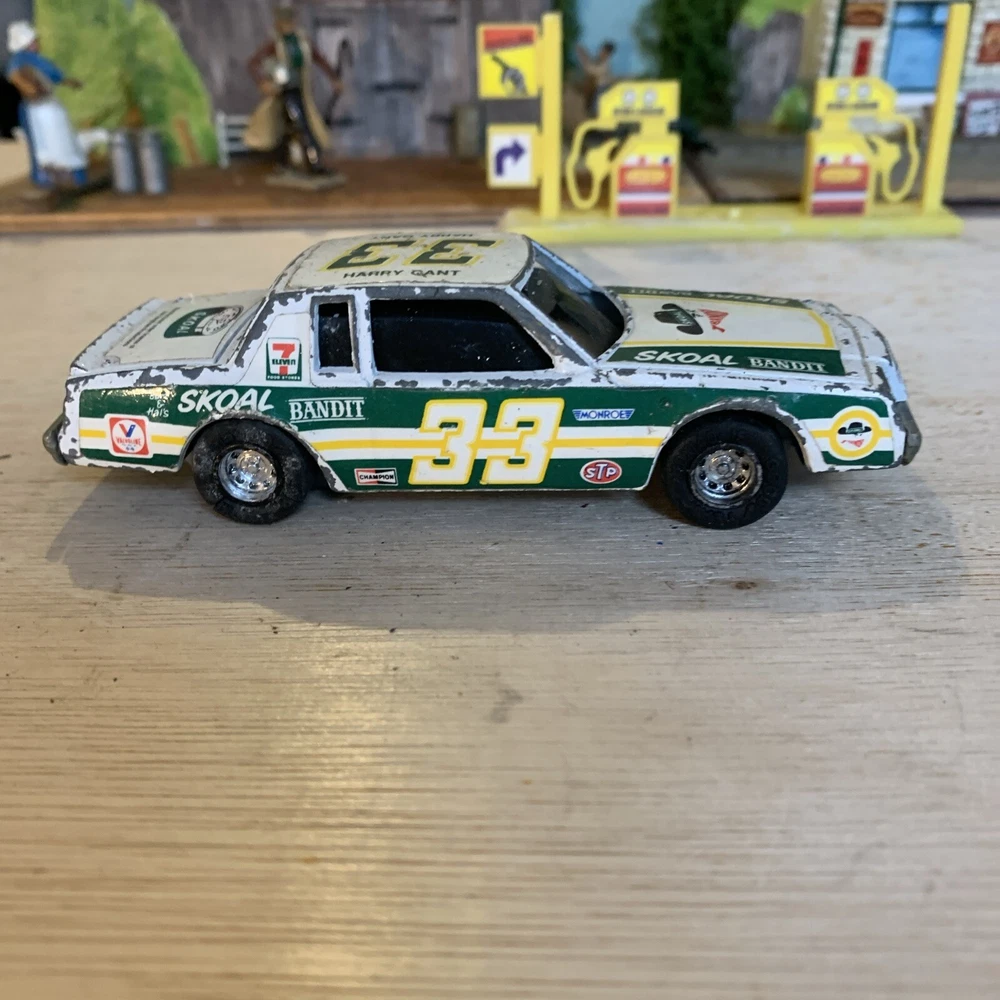 This is a rare vintage Ertl diecast model of a Buick Regal car, specifically the #33 Skoal Bandit 1982 version driven by Harry Gant. The scale of the model is 1/43 and it features a pullback function for added playability. The car is multi-coloured, capturing the authentic design of the original race car. This collectible piece is a great addition for fans of vintage vehicles or those interested in Harry Gant's racing career. Used condition see photos