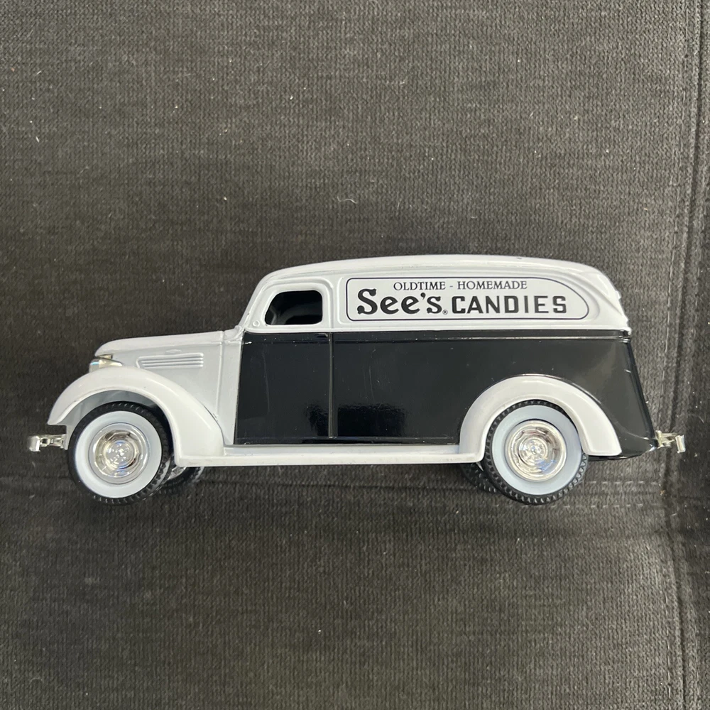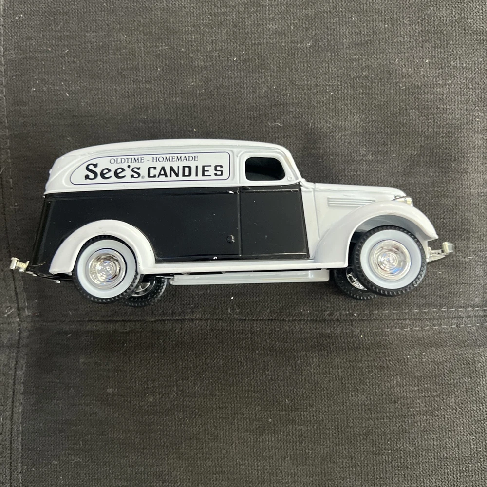 This is a vintage 1938 Chevy panel truck from the ERTL Company, Inc. featuring a colorful design of black and white candies and nuts. The die-cast panel truck is an original piece and was manufactured in the United States. It is a great addition to any collection of advertising memorabilia, especially for those interested in candy and nut themes. The truck's brand, The ERTL Company, is known for producing high-quality collectibles. This item is perfect for display in a garage or man cave and would make a great conversation starter. Don't miss out on the opportunity to own this unique piece of history. Please observe photos clearly. They are the exact item that you will receive.