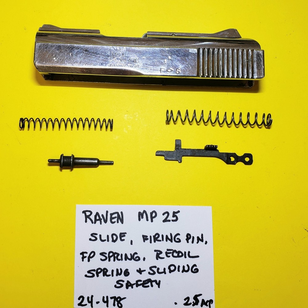 RAVEN MP25 in .25 ACP CHROME SLIDE, RECOIL SPRING, FIRING PIN, FIRING PIN SPRING & SLIDING SAFETY ITEM #24-478