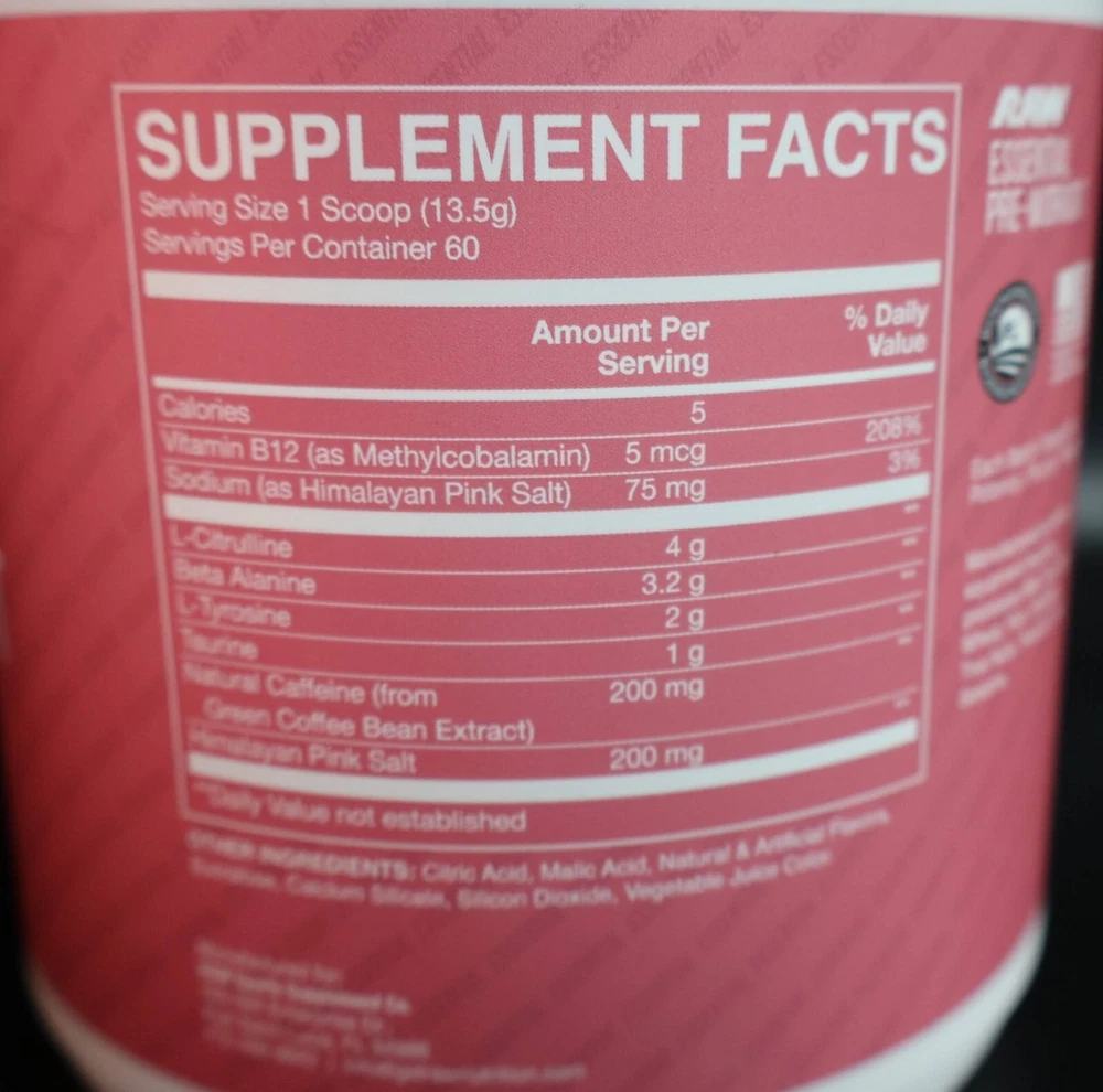 RAW Nutrition CBUM Essential Pre-Workout, Sour Watermelon, 60 Servings, EX:01/26