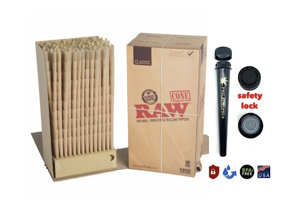 RAW cone Classic King Size Pre-Rolled Cones(100 packs)+safety lock tube