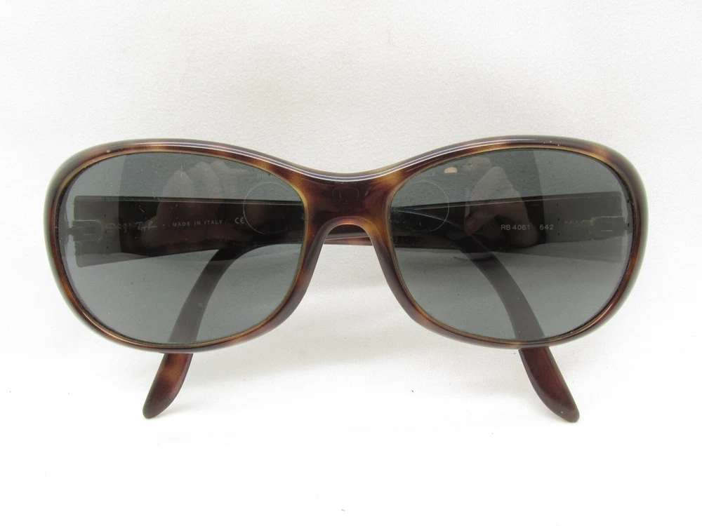 Type: Eyeglasses Country/Region of Manufacture: Italy Lens Socket Width: 52 mm Temple Length: 130 MM Seller Notes: “GOOD” Features: Full Rim Brand: Ray-Ban Frame Color: Brown Model: RB 4061 Department: Unisex Adults Frame Material: Plastic Vertical: 40 mm Style: Wrap