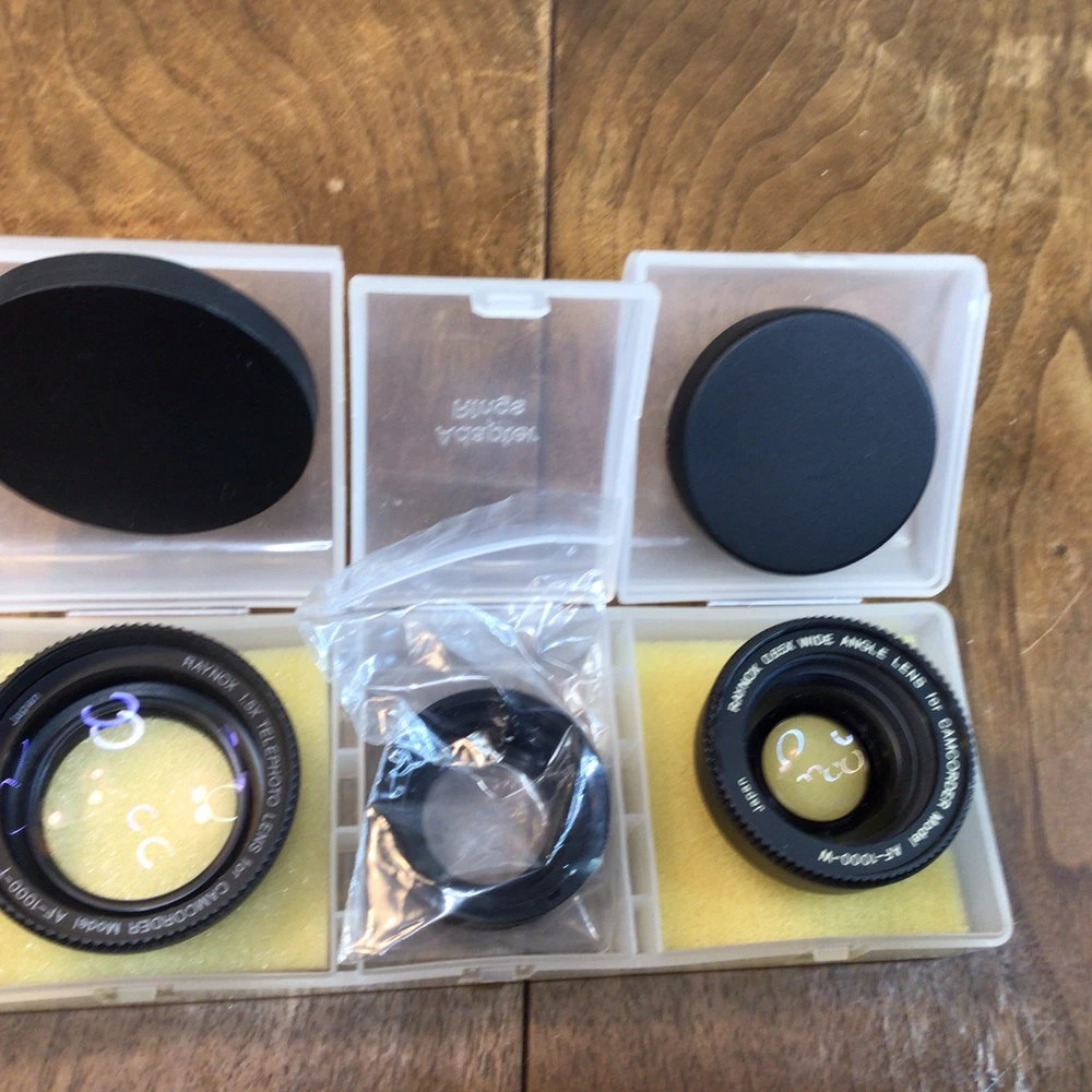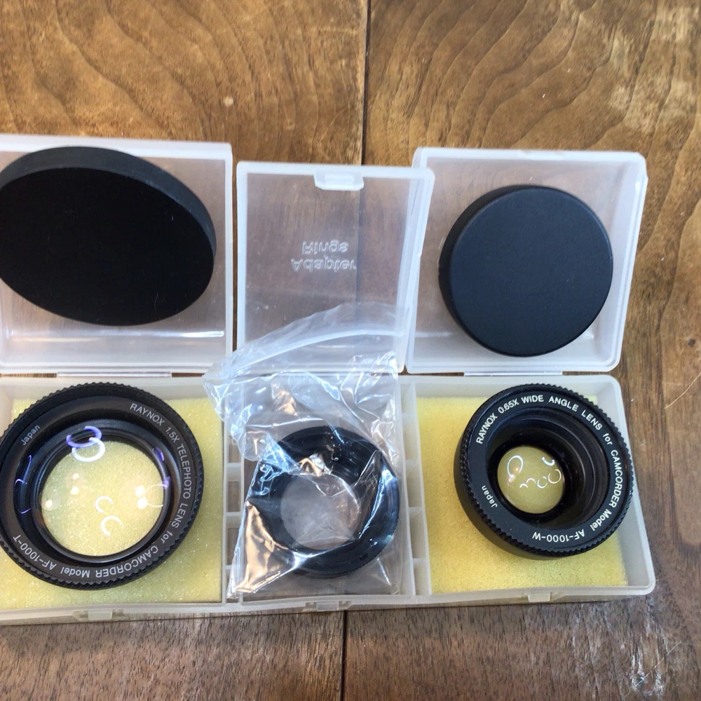The RAYNOX Camcorder Lens Set includes a .65x wide-angle lens and a 1.5x telephoto lens, designed for AF-1000-W and AF-1000-T models. The lenses offer manual focus control and are constructed with plastic exteriors. The brand Raynox is known for producing high-quality lens attachments for improved versatility in photography and videography. The set provides the ability to capture wider scenes with the wide-angle lens or zoom in closer with the telephoto lens, enhancing the creative possibilities for camcorder users. Please look at the pictures closely, as this is the item that you will receive.
