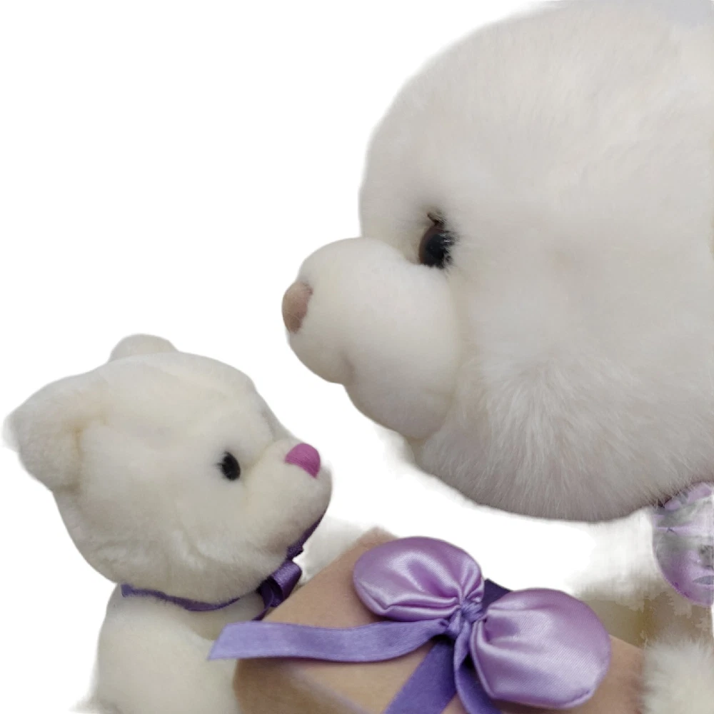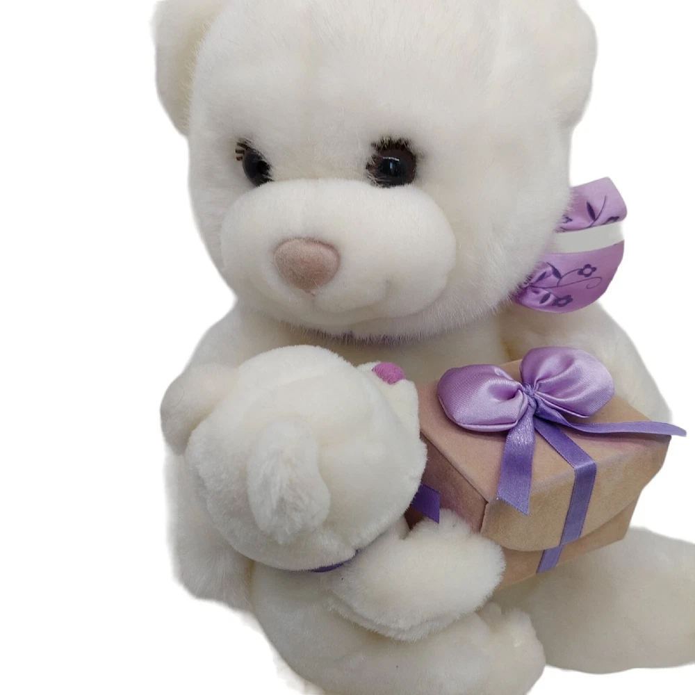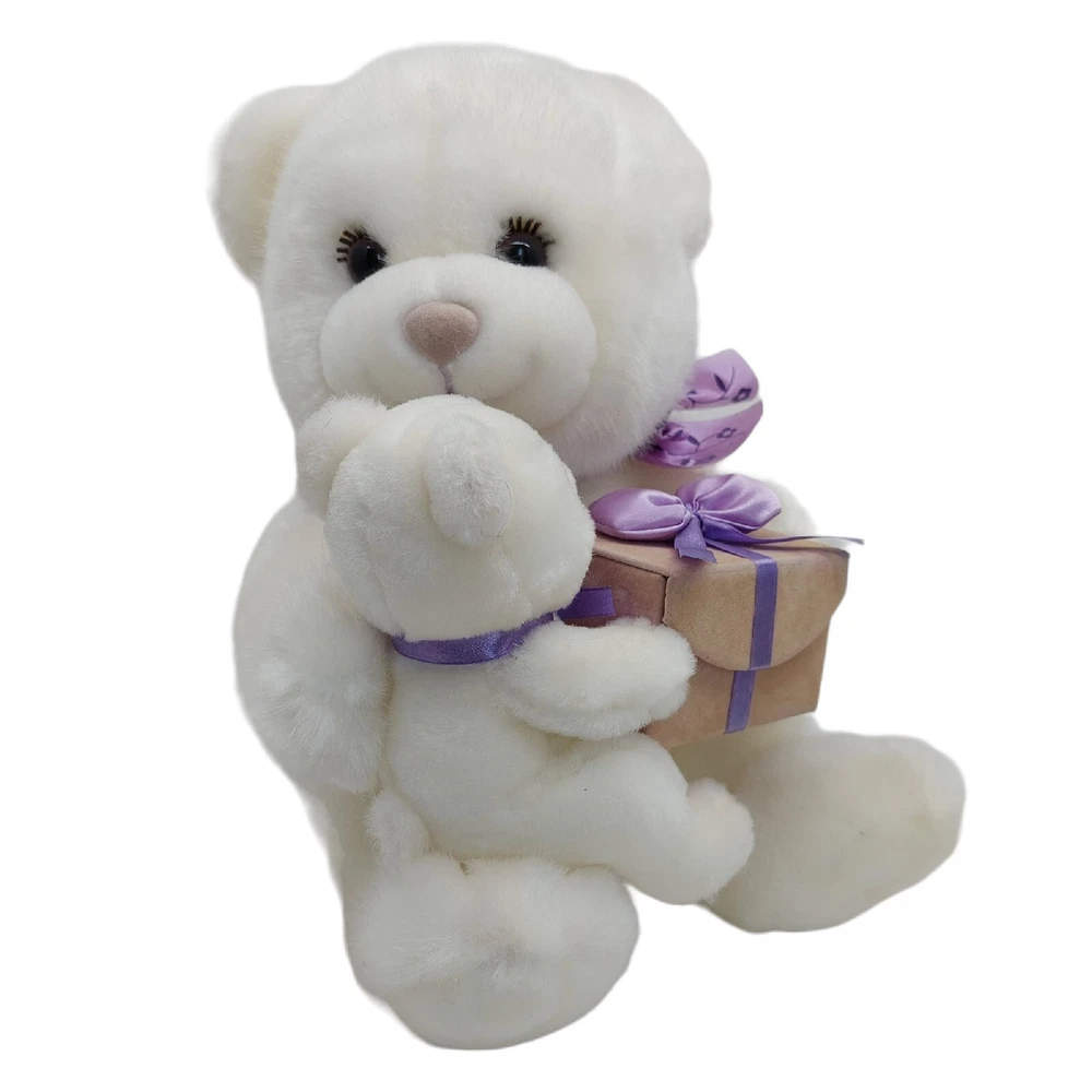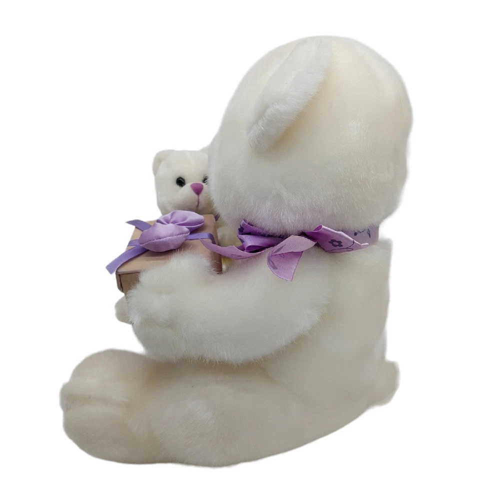 RBI Ron Banafato white Mama Polar Bear & Baby Plush Stuffed Animal Holding Box 11 Inch.