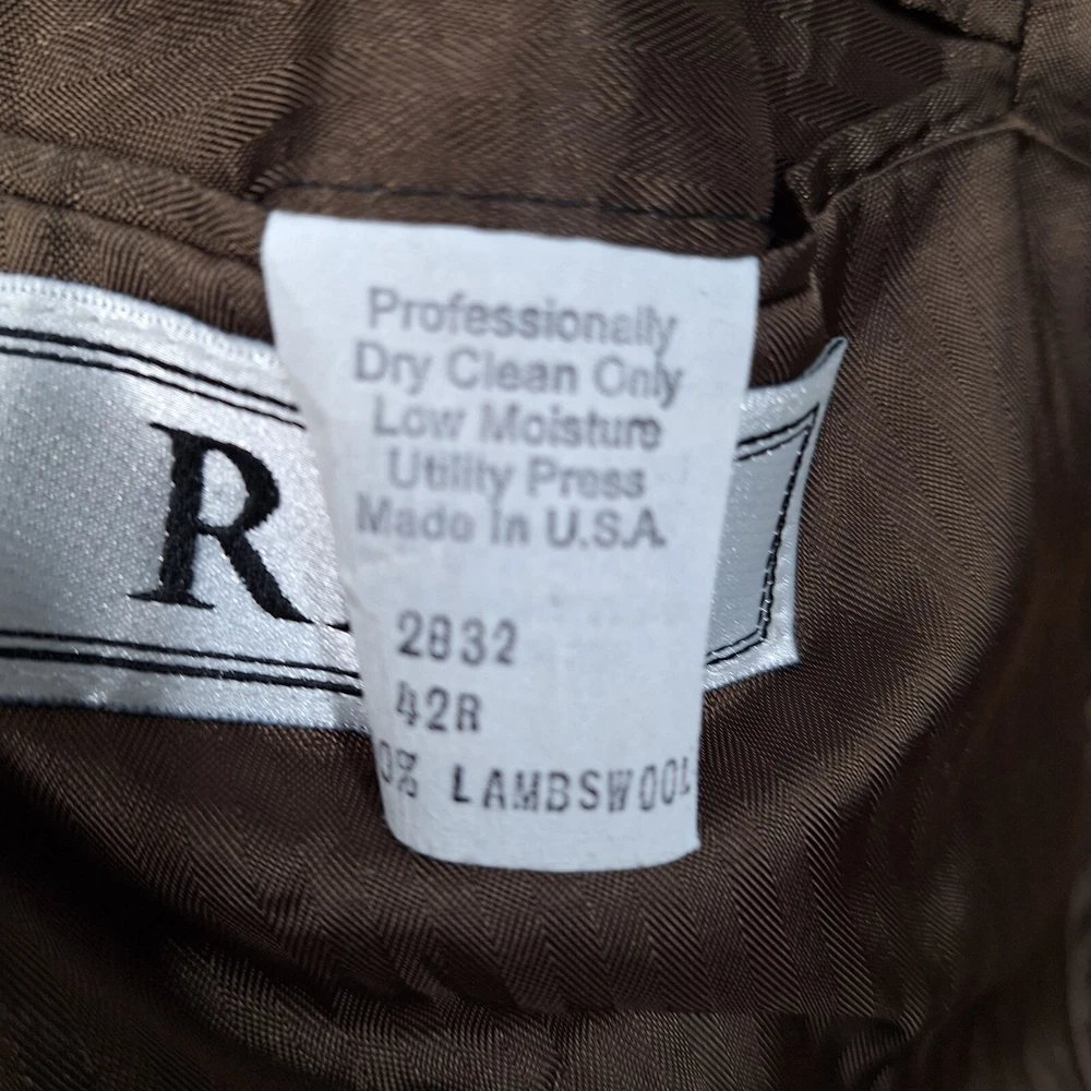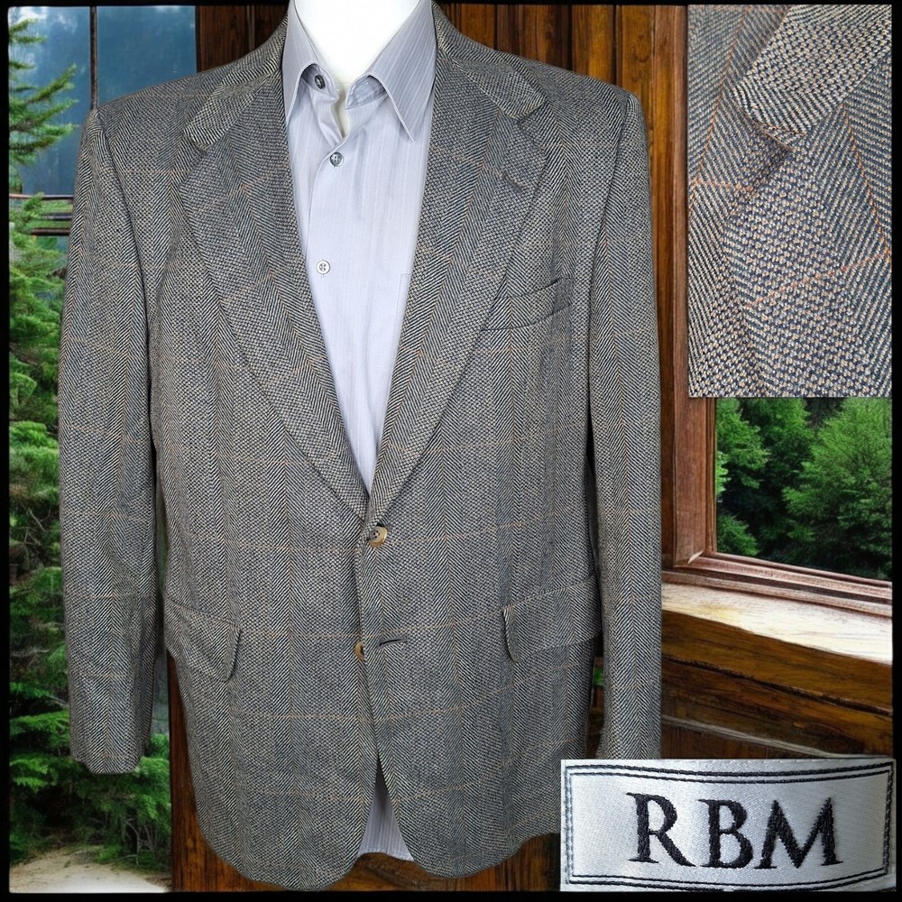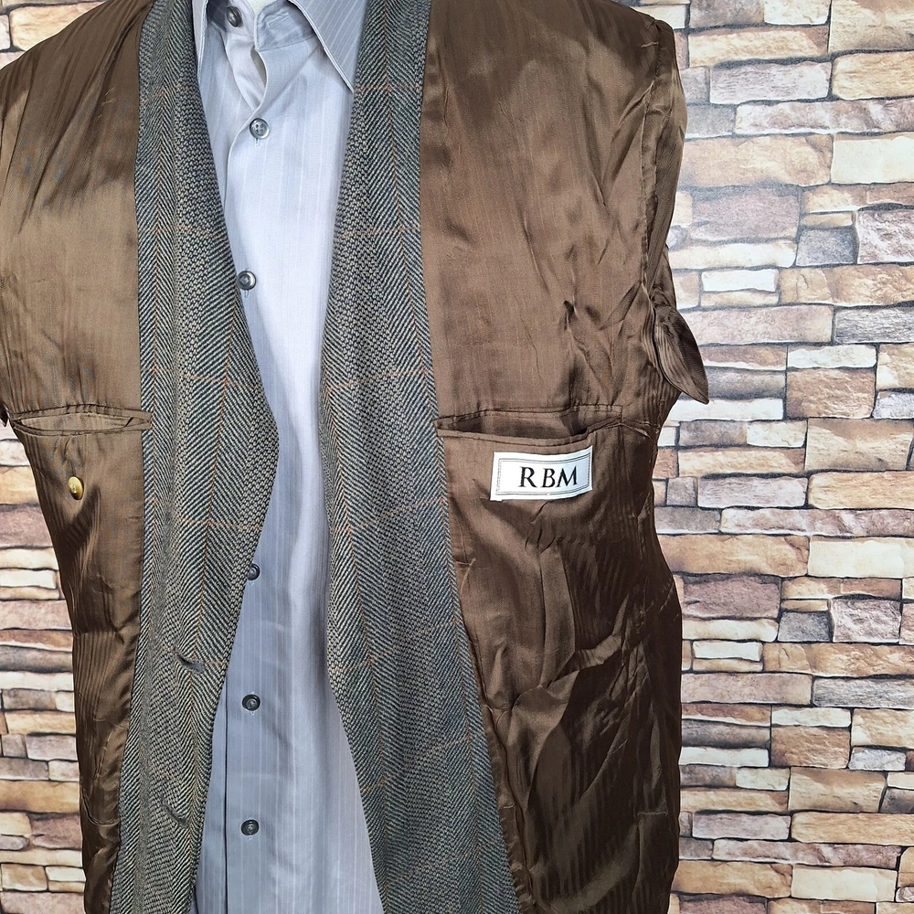 Season: Fall, Spring, Summer, Winter Fit: Regular Features: Inner Pockets UPC: Does not apply Jacket/Coat Length: Regular Handmade: No Chest Size: 42 Style: Blazer Jacket Vent Style: Single-Vented Vintage: Yes Size: 42 Department: Men Occasion: Business, Casual, Formal, Party/Cocktail, Travel, Wedding Type: Sport Coat Size Type: Regular Garment Care: Dry Clean Only Leg Style: NA Jacket Front Button Style: Two-Button Personalize: No Pattern: Plaid Color: Brown Waist Size: NA Inseam: NA Brand: RBM Jacket Lapel Style: Notch Country/Region of Manufacture: United States Jacket Sleeve Button Style: Three-Button Theme: Classic, Designer, Preppy, Wedding, Elegant, Modern Lining Material: Viscose/Rayon gtin13: Does not apply Material: Wool Jacket Cut: Single-Breasted