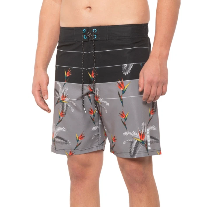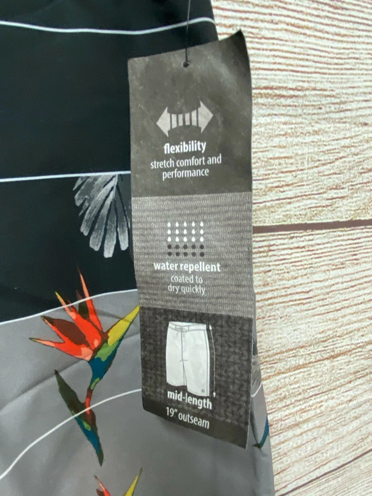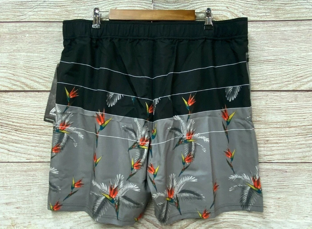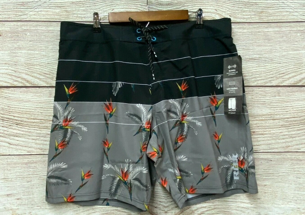 Approximate Measurements: Waist: 33-39" Stretched Rise: 11.5" Inseam: 8.5" Retails for $68 About RBX Bird of Paradise Swim Shorts - Built-In Brief (For Men) Whether you're heading to the beach or backyard pool, these RBX Bird of Paradise swim shorts keep you comfortably covered in fast-drying, stretch-woven fabric with classic style. Lightweight, fast-drying woven fabric Partial elastic waistband Boardshort lacing Side zip pocket Mesh inner brief Made in China ShipSaver