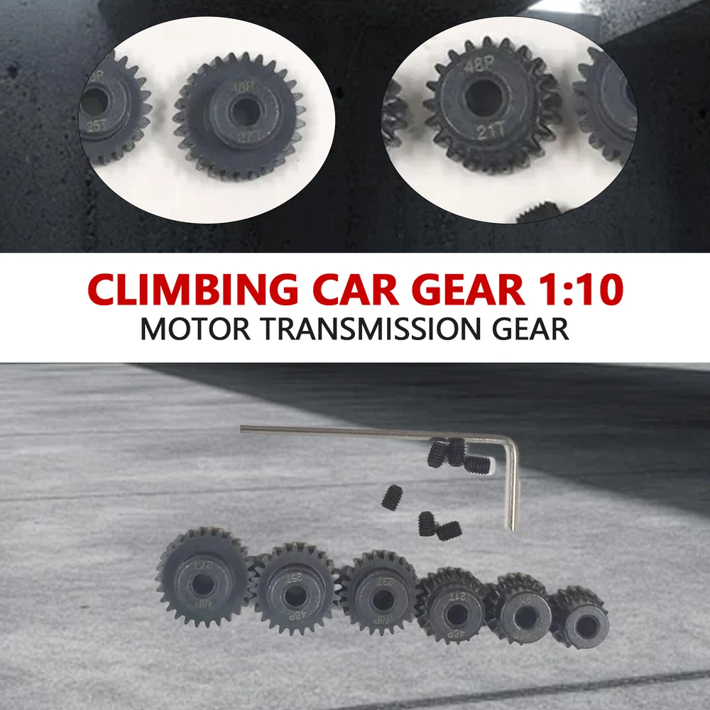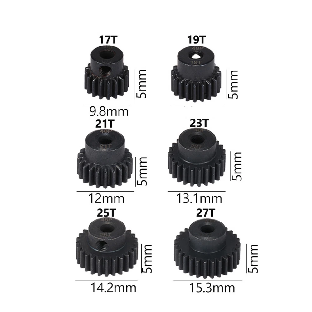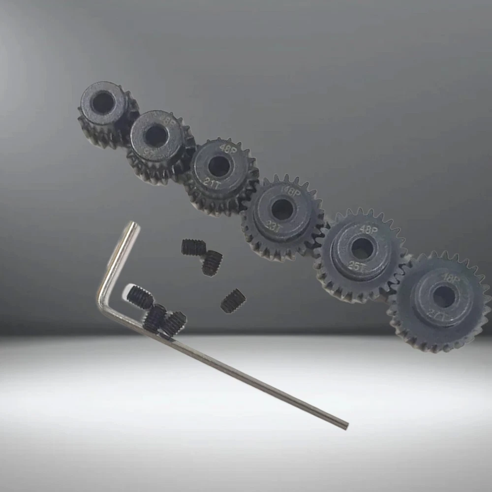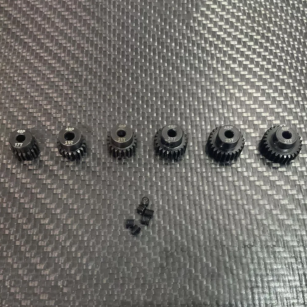 RC 48P Pinion Gear Set 17T 19T 21T 23T 25T 27 For 1/10 Slash Rustler 2WD This Is 48P Pinion Gear Set (17T 19T 21T 23T 25T 27T) . Those Gear Fits Most 1/10 Car & Truck Use 48 Pitch Only) Fits 3.175mm Shaft Size , 6 X Pinion Gear With Screws , Thanks Boss spur gear Module: 48P Aperture: 3.175mm hole Number of teeth: 17T+19T+21T+23T+25T+27T Material: 45# steel Tolerance: positive tolerance, +0.03mm M3 fixing screw hole, with M3 machine screw (with one M3 screw) Simple and convenient installation and replacement, long service life Gear surface iron oxide protective film (blackening treatment) Gear surface anti-rust treatment Applicable to 1/10 RC model car 5.0mm shaft brushless and brushed motor