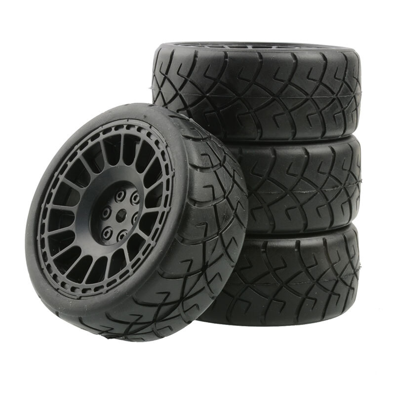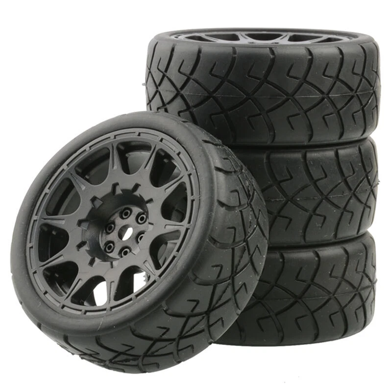 RC Car Rubber Tires & Wheels Rims 12mm Hex Hub for WLtoys 144001 and 1/18 1/16 1/10 Car Tyre(4-Pack) Description: 64mm outer diameter 26mm width rc replacement tire fit for 1/18, 1/16, 1/10 rc car & for Wltoys 1/14 144001 rc cars. Made of high quality rubber and inner sponge. Durable and non-slip tire patterns. Provide a completely visual upgrade for your RC Car. Large, deep lugs and super soft tyre provide exceptional traction in rock, mud, and dirt. Good adhesion performance, corrosion resistance, damping property and crush-resistant. Specification: Tire Outer Diameter: 64mm Tire Width: 26mm Weel Hub: 12mm / 0.47inch Package Includes: 4 Pieces RC Car Tires NOTICE: The wheels and tires are not glued together and must be glued before use. Please carefully check the tire size before purchase, whether it is the same as your model tire size, and confirm it again before payment, so as not to return the refund, thank you, wish you a happy shopping.