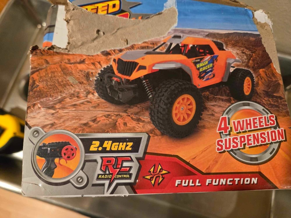 RC MACTCO TOOLS Speed Rider - new in box. Box is rough but the car is new. This street riders are fast, fun, and rugged. Features 2.4 GHz full function radio control with a high-speed motor, heavy-duty four-wheel drive suspension, and all-terrain tires. Start it up as soon as you buy it because the batteries are included. Ready, set, go! These assorted street riders are fast, fun, and rugged. Features 2.4 GHz full function radio control with a high-speed motor, heavy-duty four-wheel drive suspension, and all-terrain tires. Start it up as soon as you buy it because the batteries are included. .