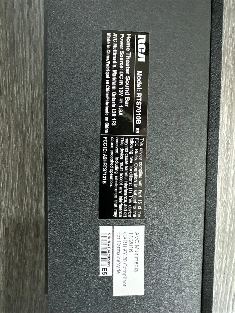 RCA RTS7010B 37" Home Theater Sound Bar- Black, No Cord Or Remote.