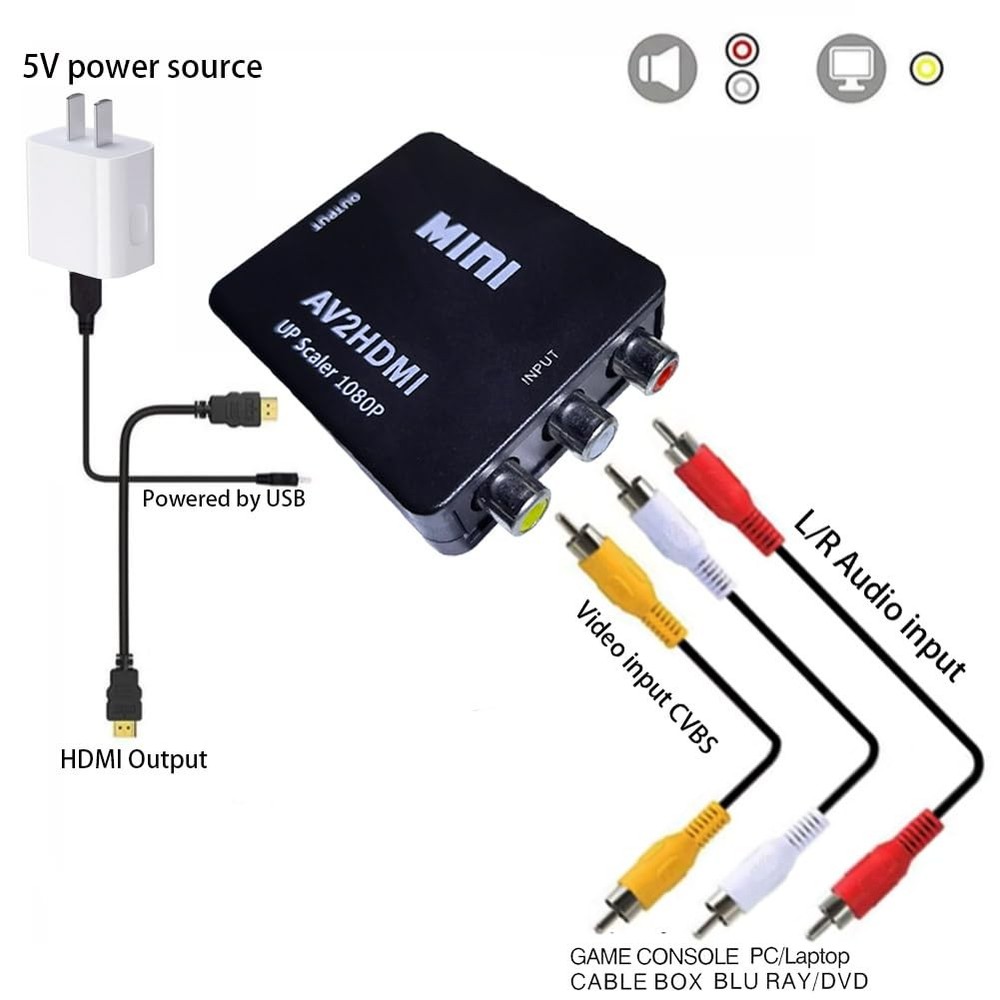 This RCA to HDMI converter works like a charm! It effortlessly upgraded my old VCR and Wii to HD quality with crisp 1080p output. The included cables and adapter made setup a breeze—just plug and play. Super handy for breathing new life into vintage devices without losing quality. The compact design is a plus, and it delivers exactly as promised—RCA to HDMI only, no reverse. Great value for the price, especially with all the extras in the package. Highly recommend for anyone with older tech needing a modern connection!